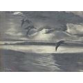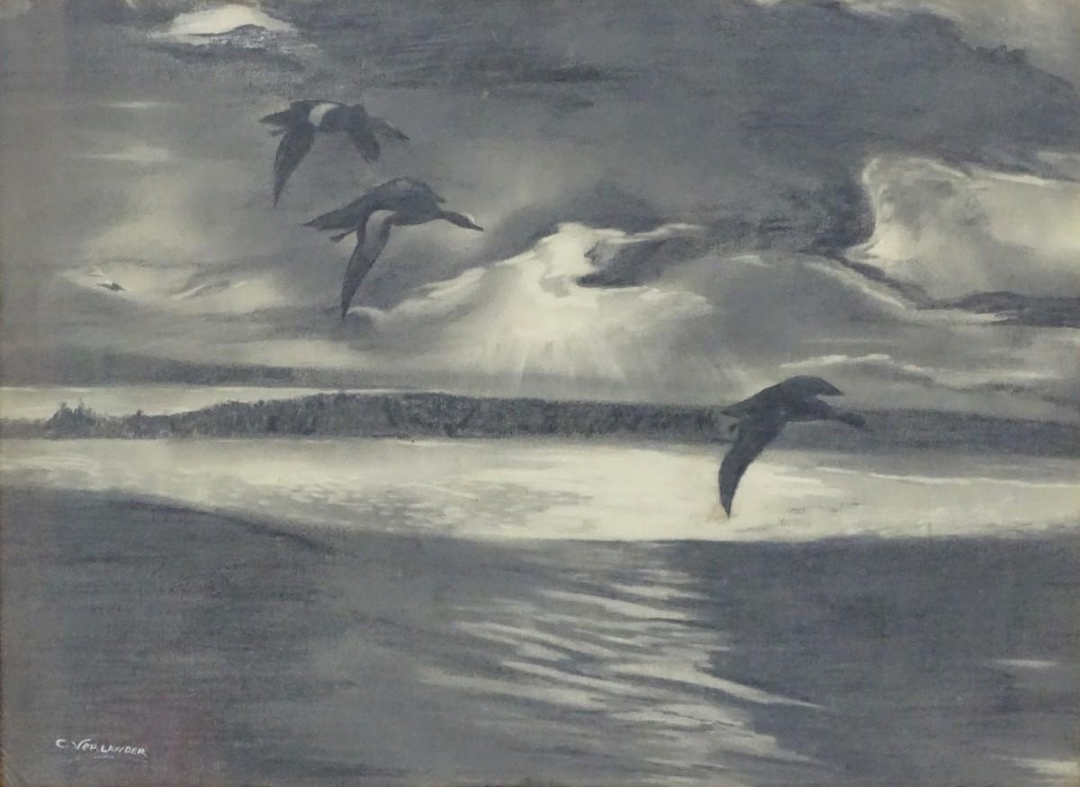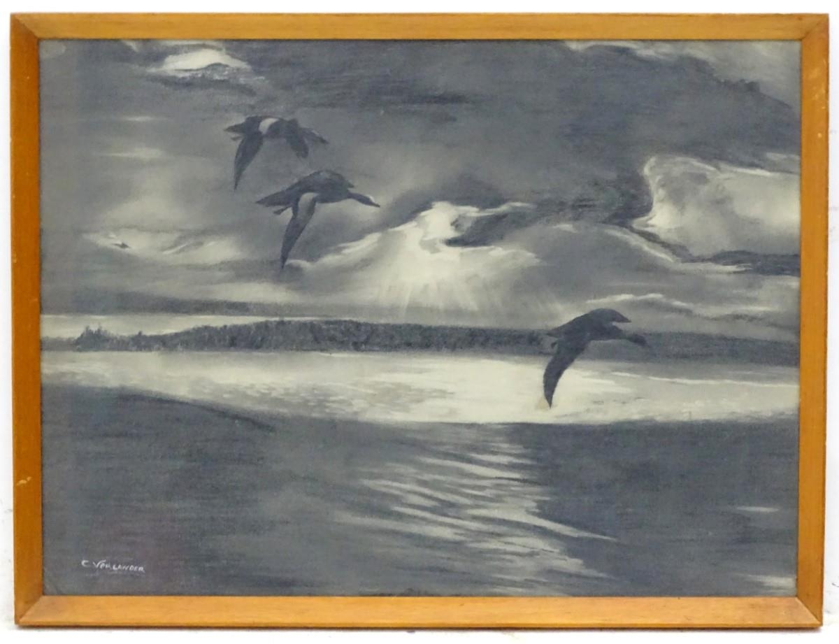 C. Verlander, XX, Pencil, Ducks in flight in a wetlands landscape. Signed lower left. 15 1/2 x 20 1/2''