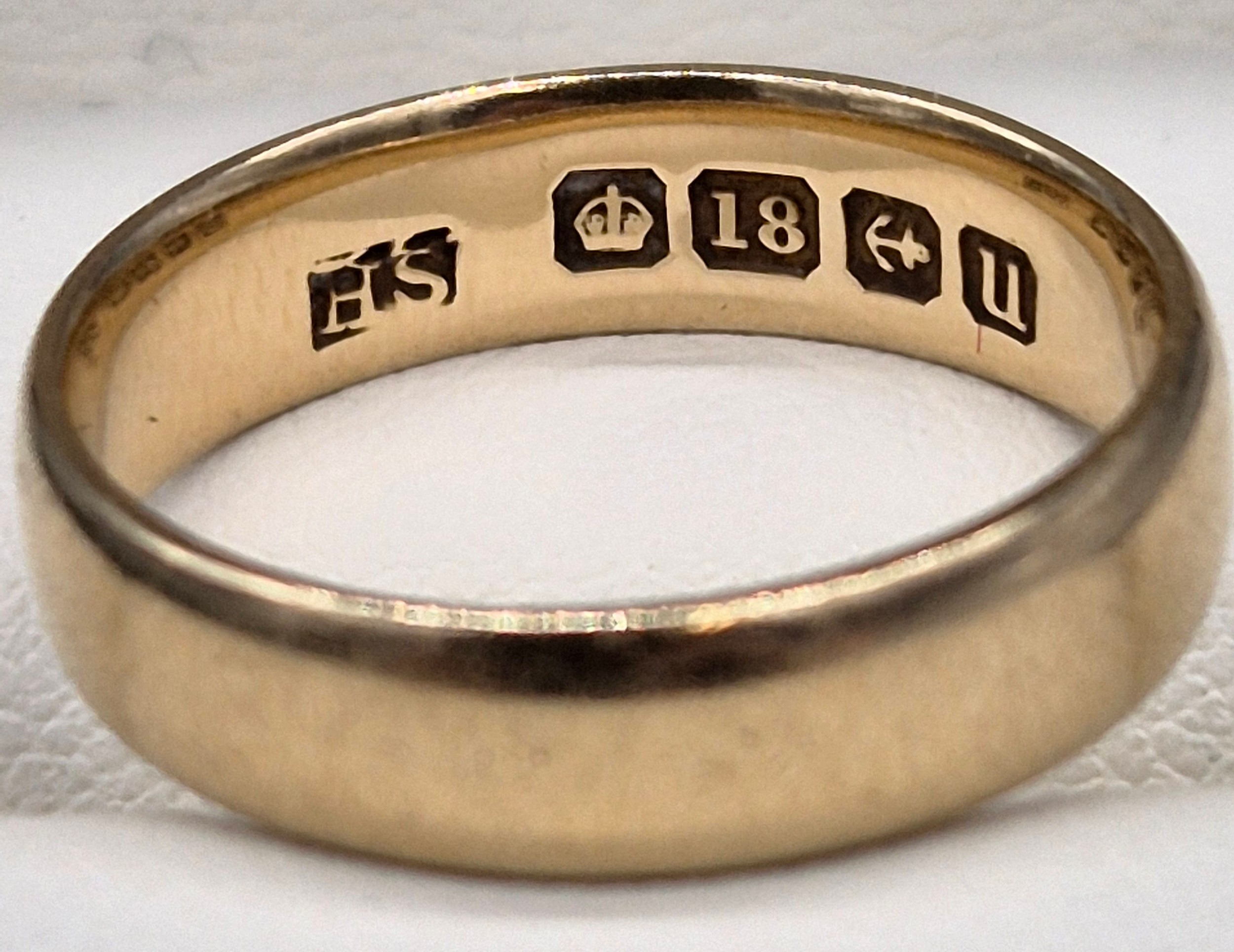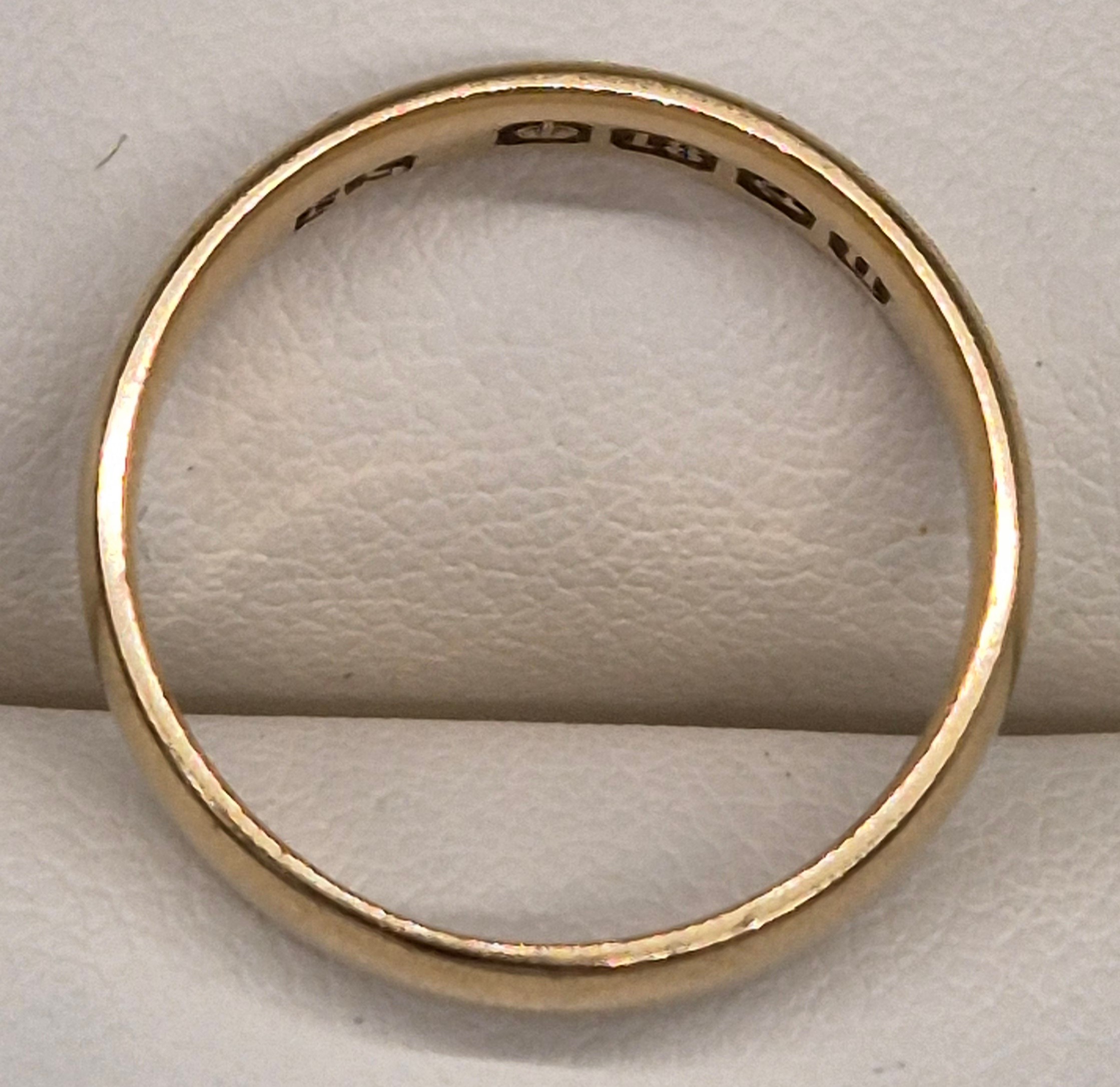 Sheffield & Birmingham 18ct yellow gold wedding band ring. [Ring size K] [3.85Grams]