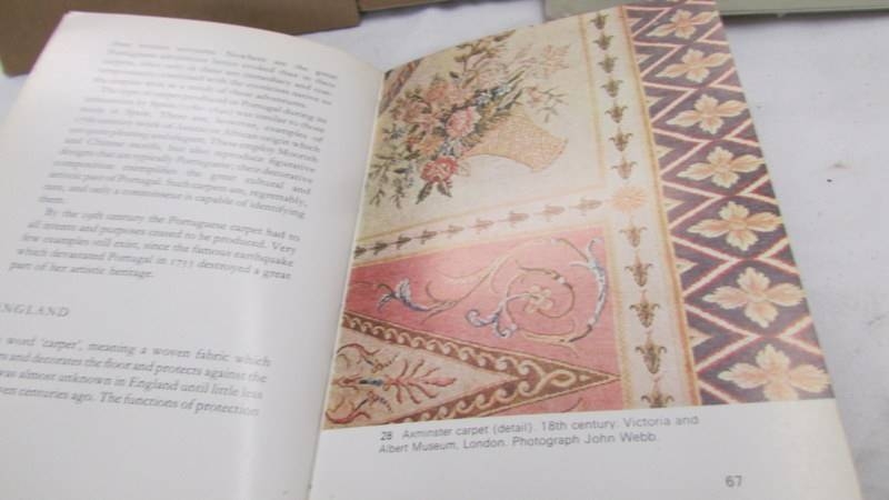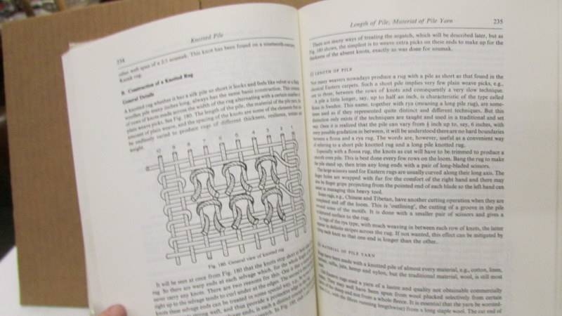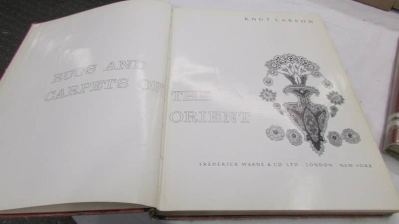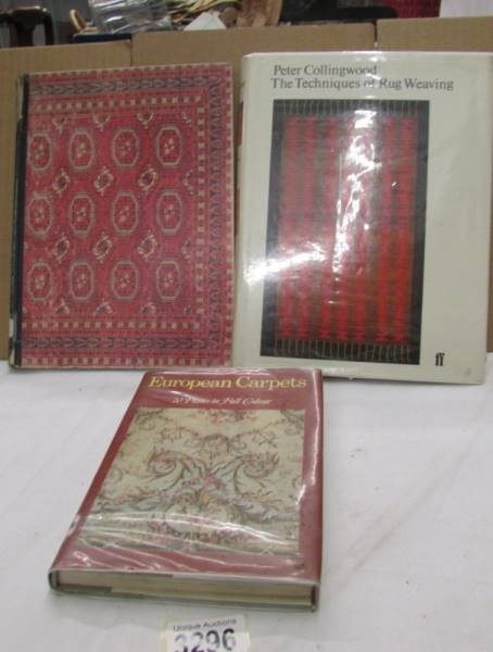 3 books entitles 'European Carpets'. 'Rugs & Carpets of the Orient' and 'Techniques of Rug Weaving'.