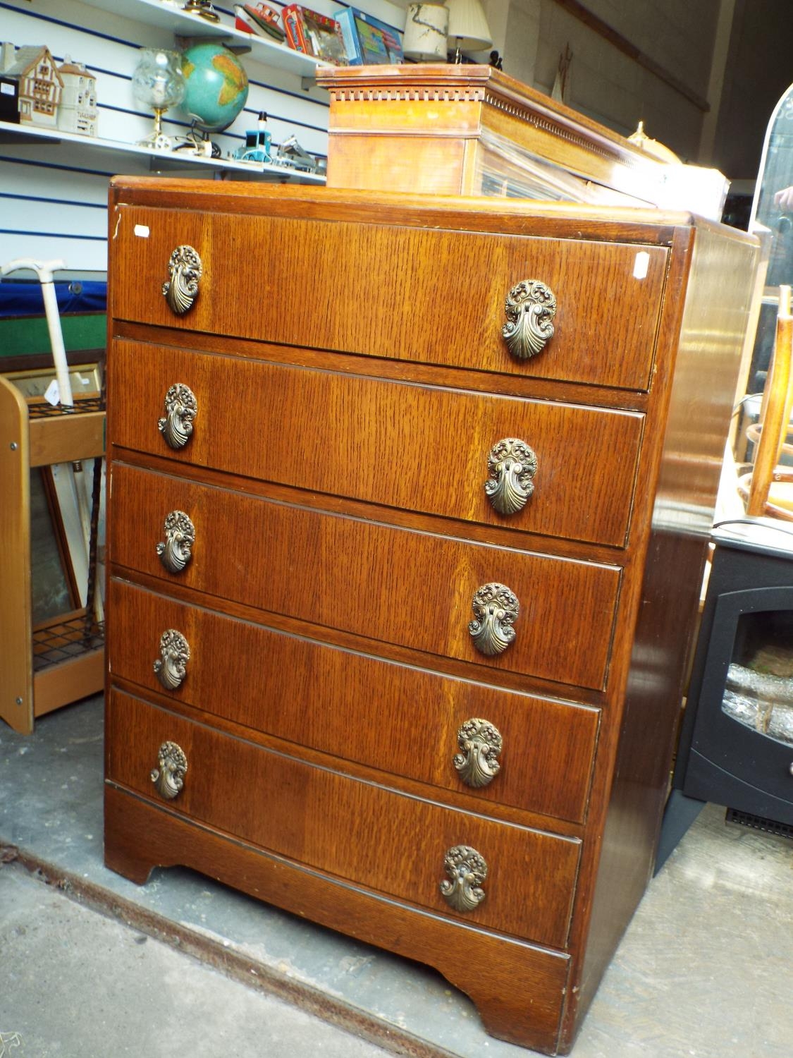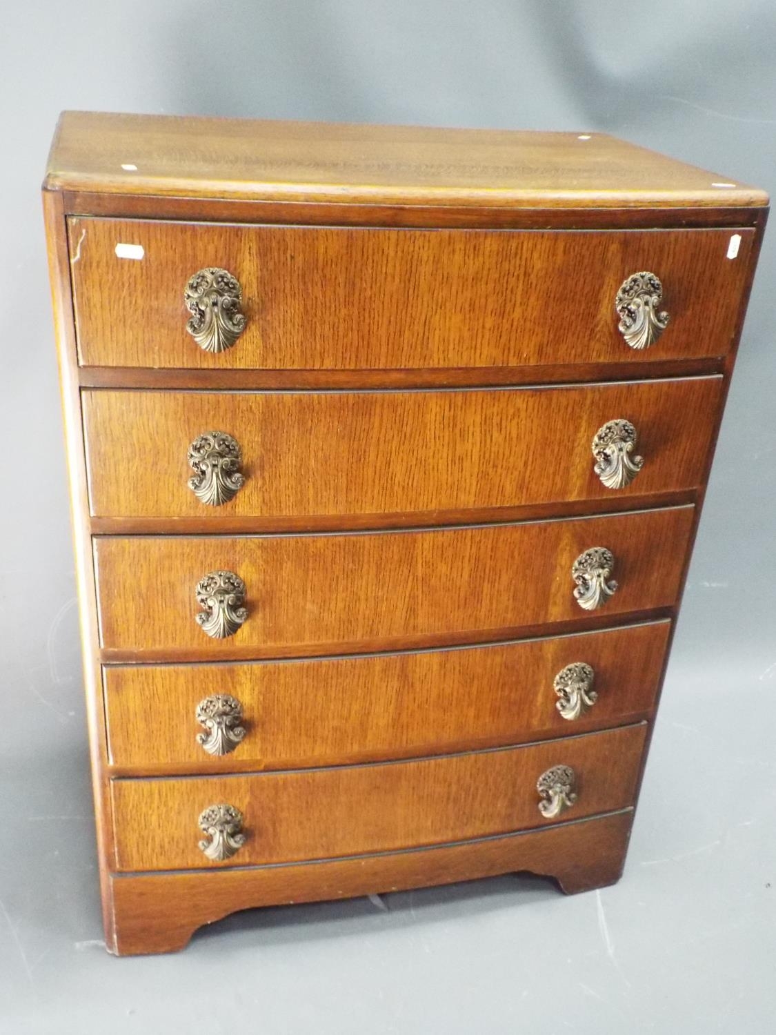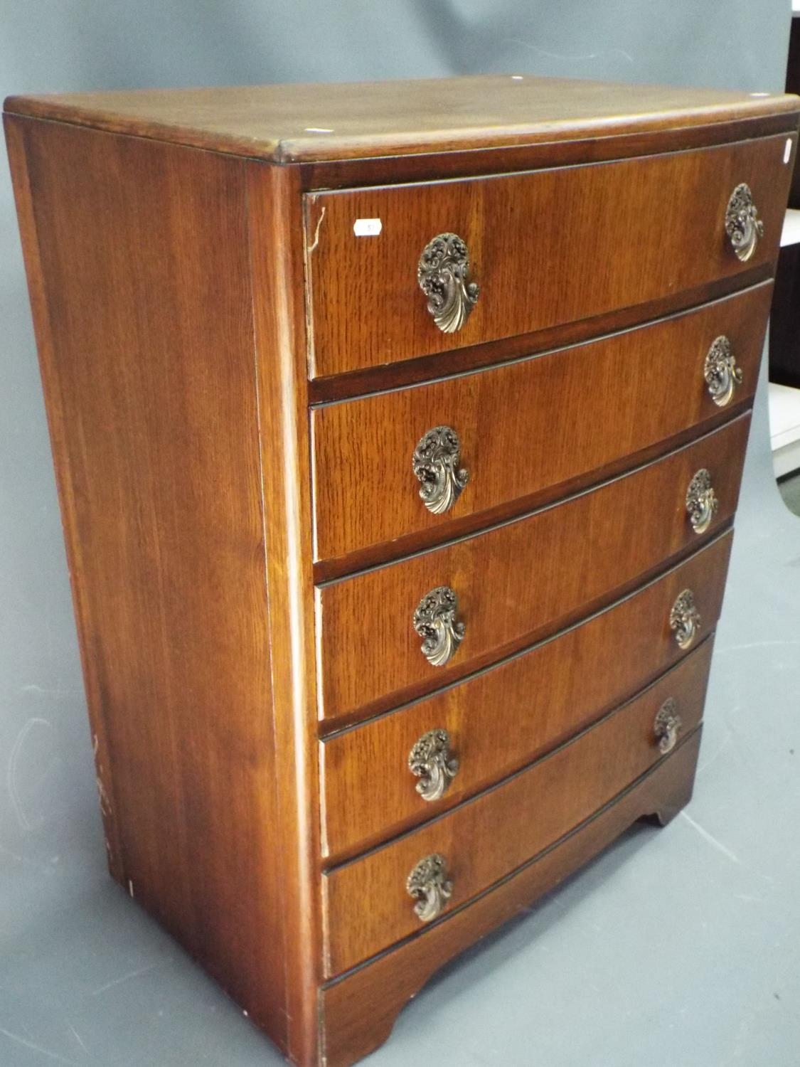1960's five drawer chest by BE furniture. H:40 x W:30 x D:19 inches, slight convex front.