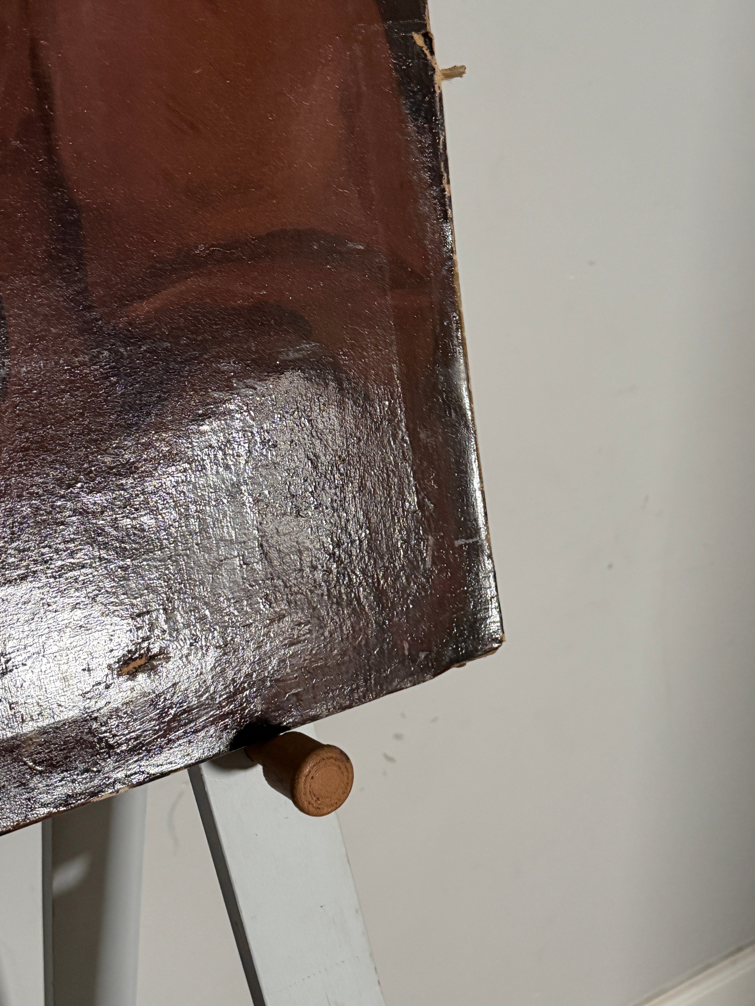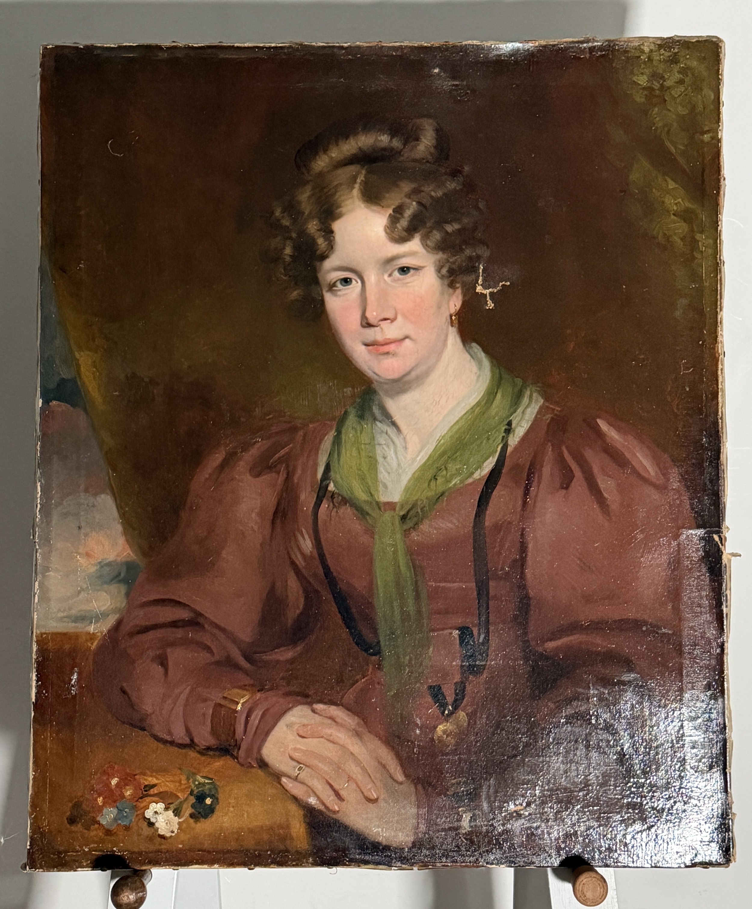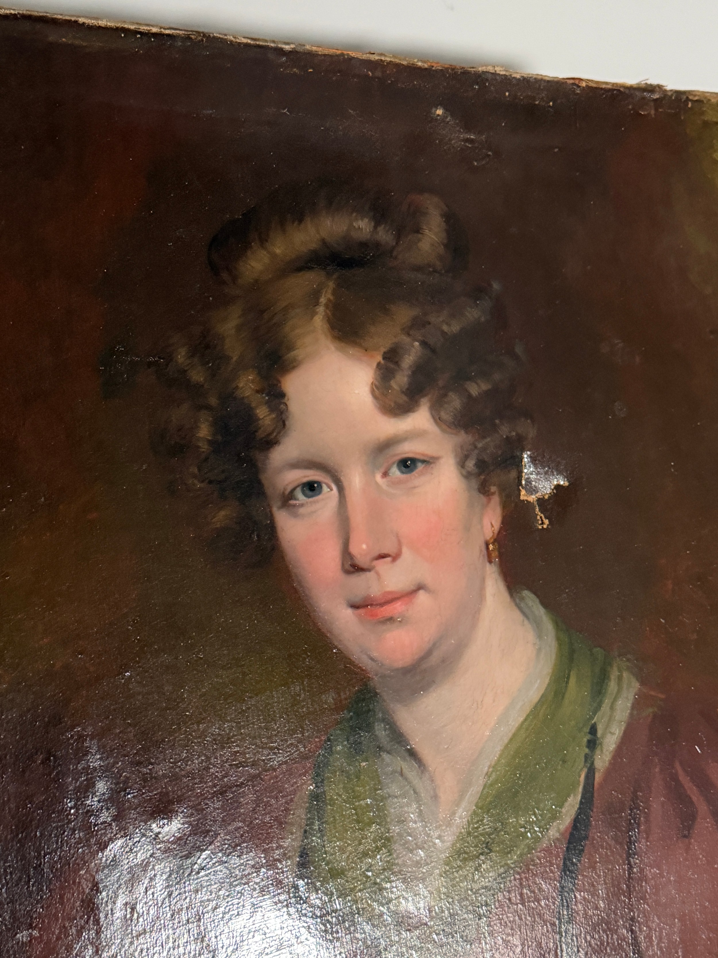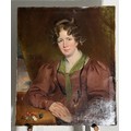 Late 19th century School, oil on canvas, portrait of a Lady, damages and restored, 76 cm x 63 cm, unframed.