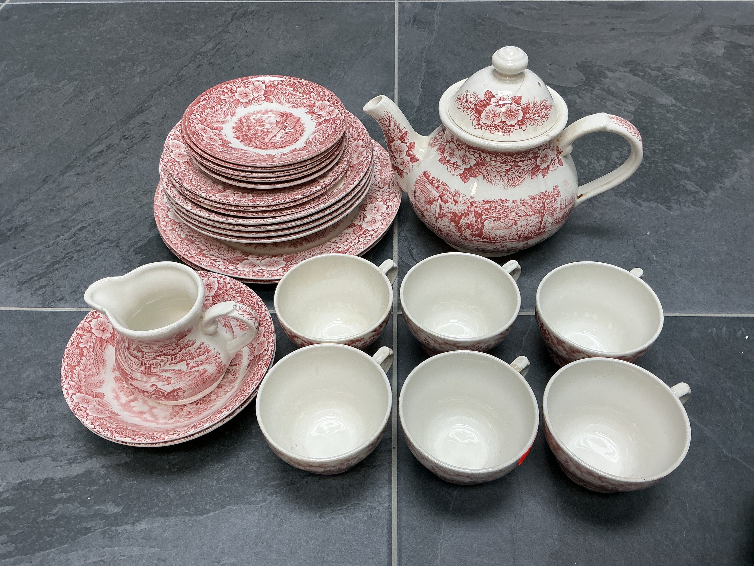 A Twenty-Four Piece Broadhurst Red and White Constable Series Part Tea/Dinner Service. As Found