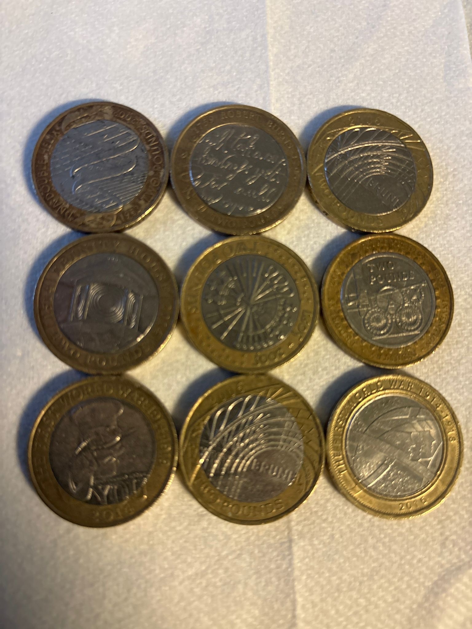 UK £2 Coin Collection – 9 Mixed Commemorative Coins (as pictured)