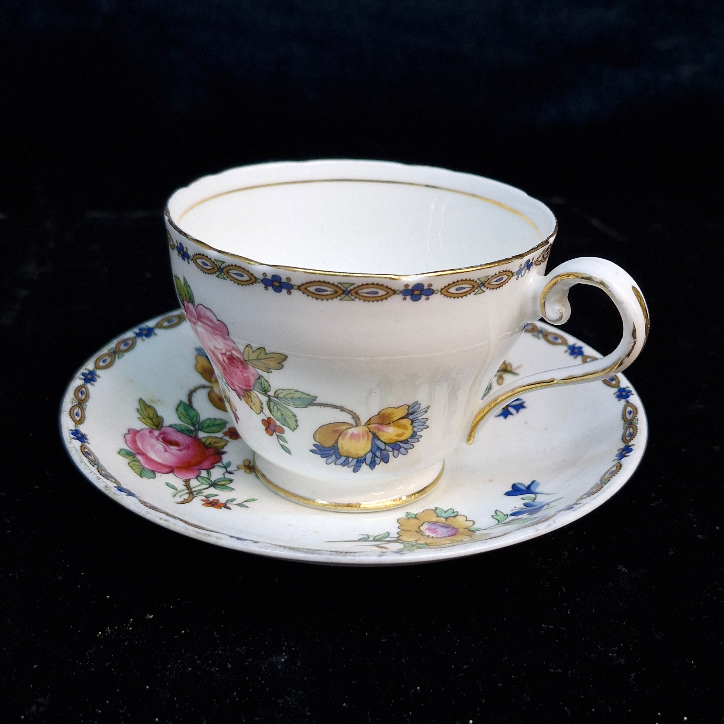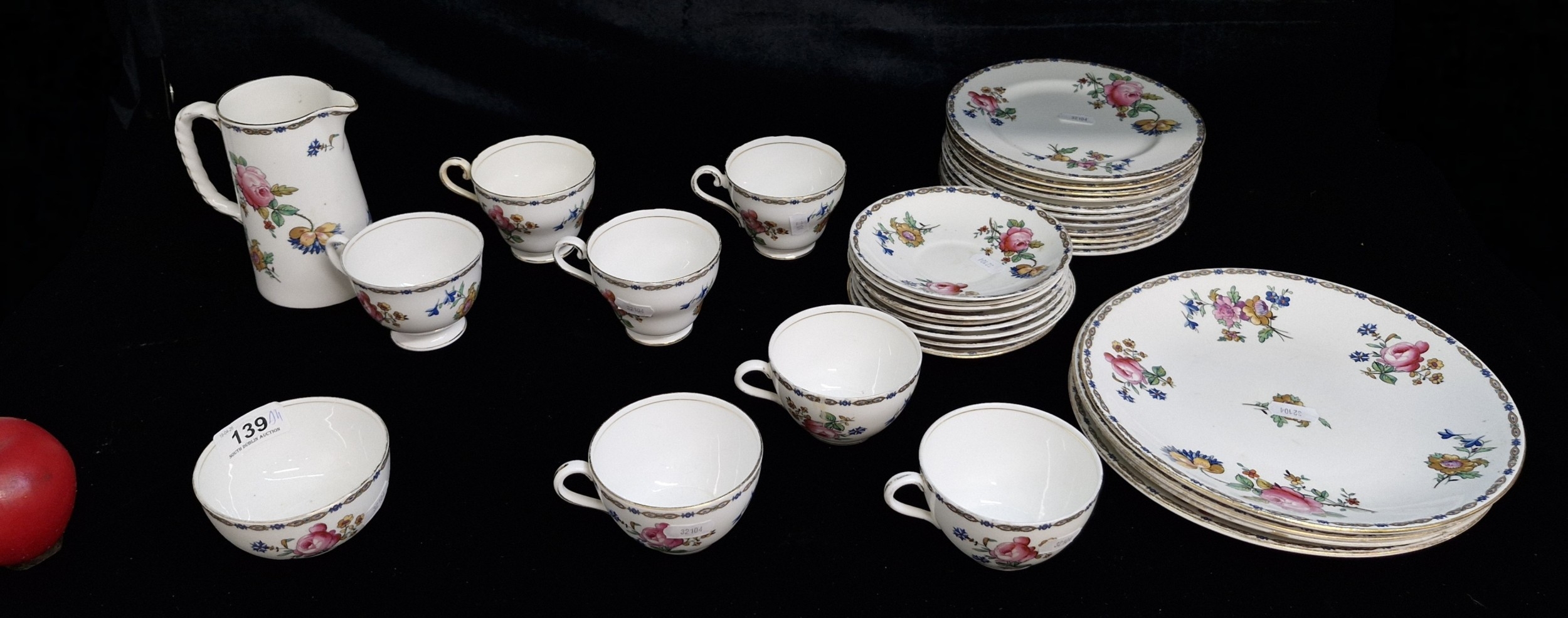 A large collection of Aynsley Syracuse floral patterned China. Lot includes a sugar bowl, sandwich plates, dinner plates, saucers, cups and a jug. All in good condition.