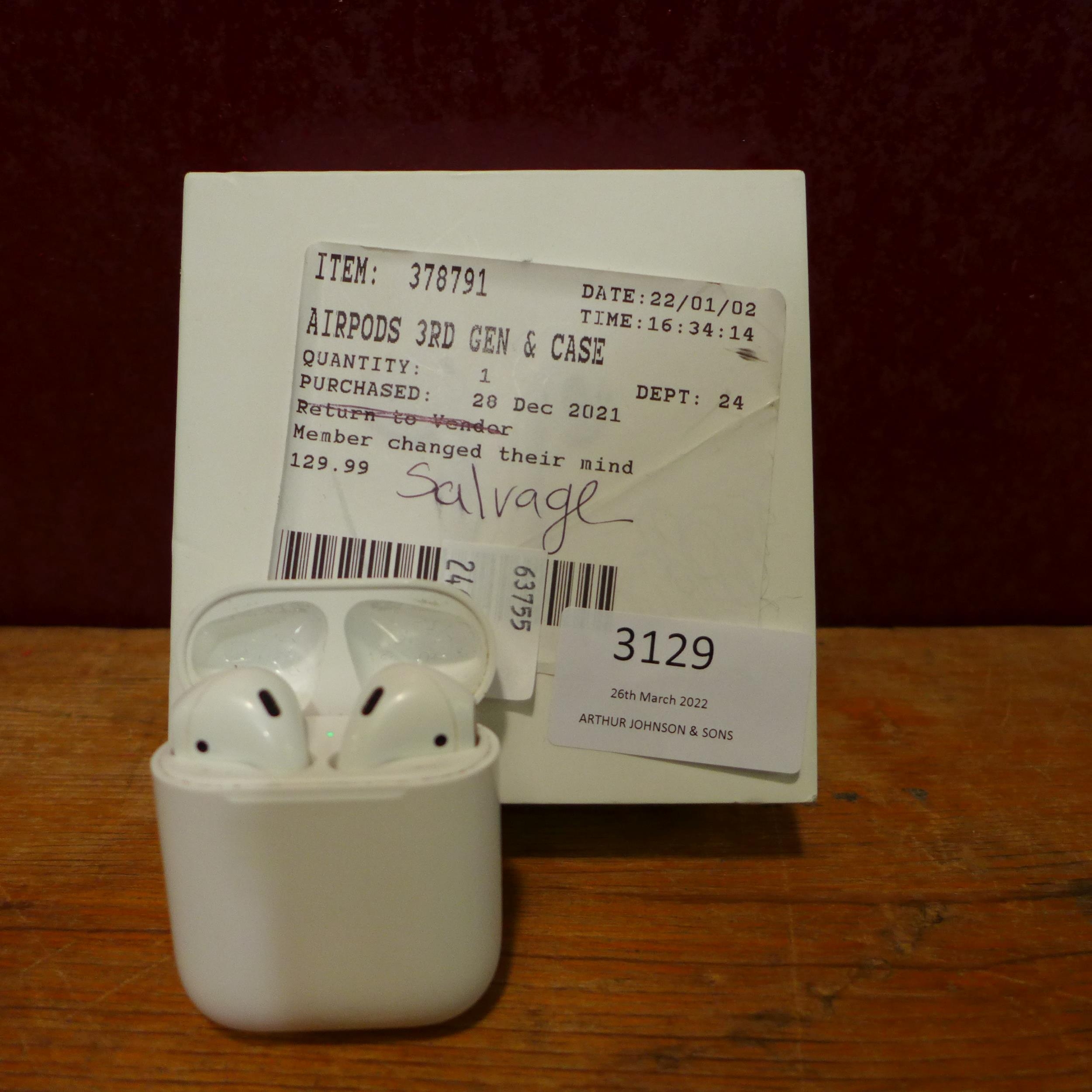Airpods 3Rd Gen & Case - Mme73Zm/A , Original Rrp £129.99 + Vat (247-644) * This lot is subject to vat
