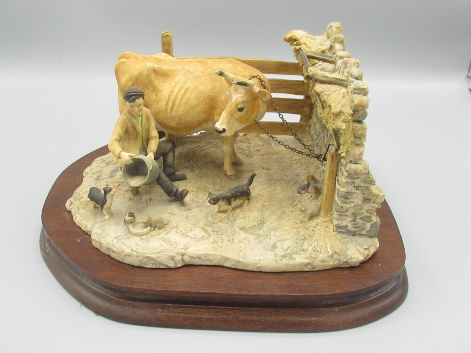 Border Fine Arts Figure Group 'Milking at Peter Trenholms' by Ray Ayres, from James Herriot series, on wooden base