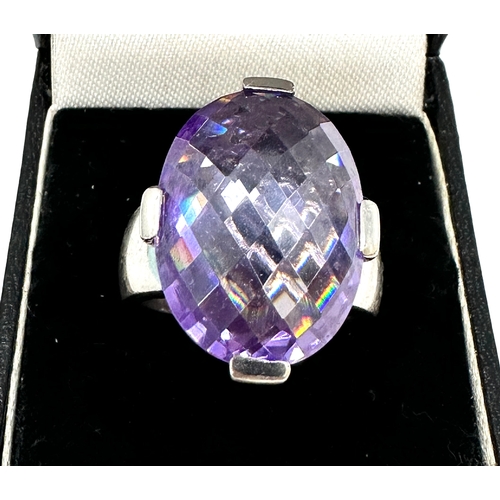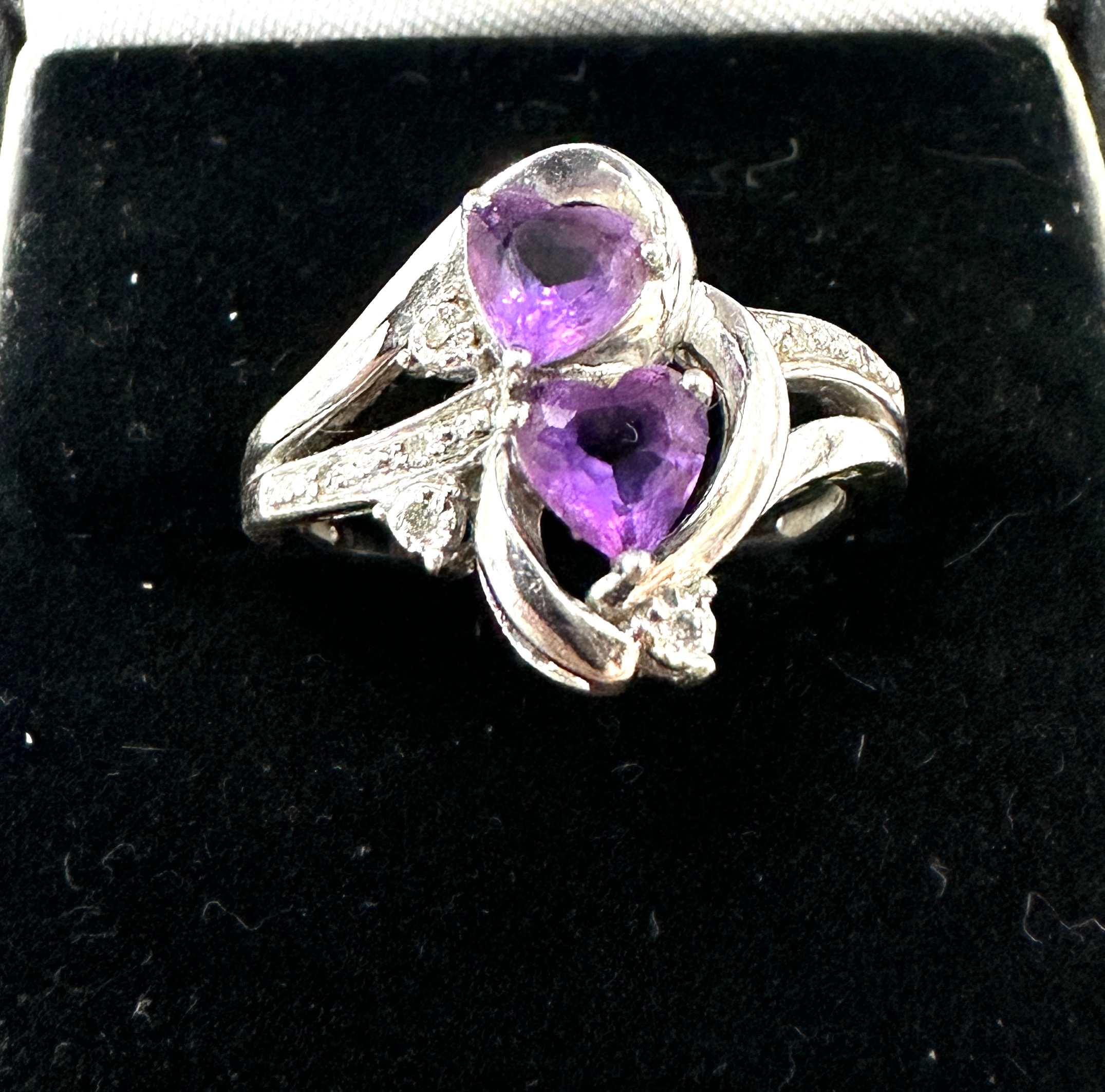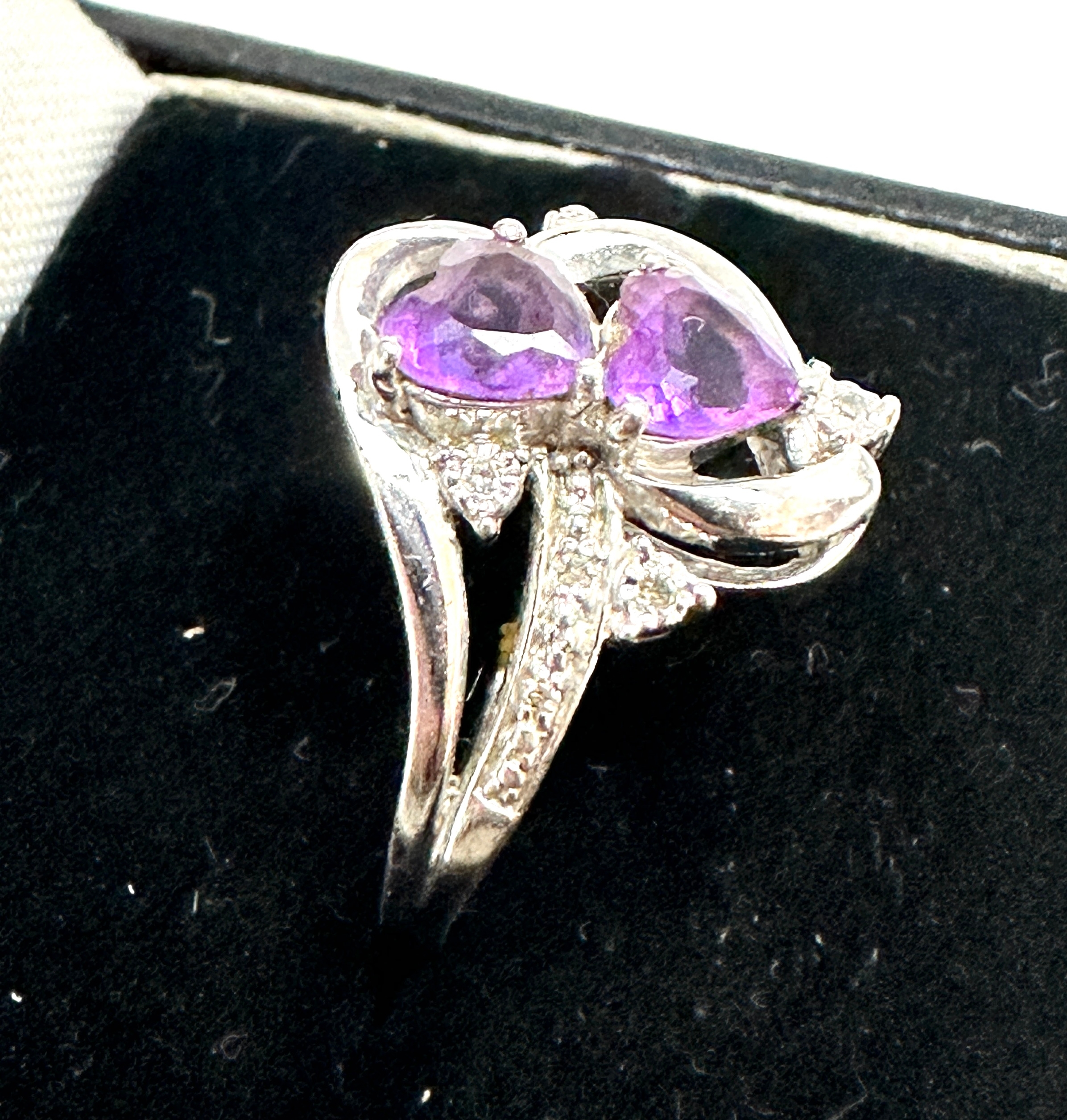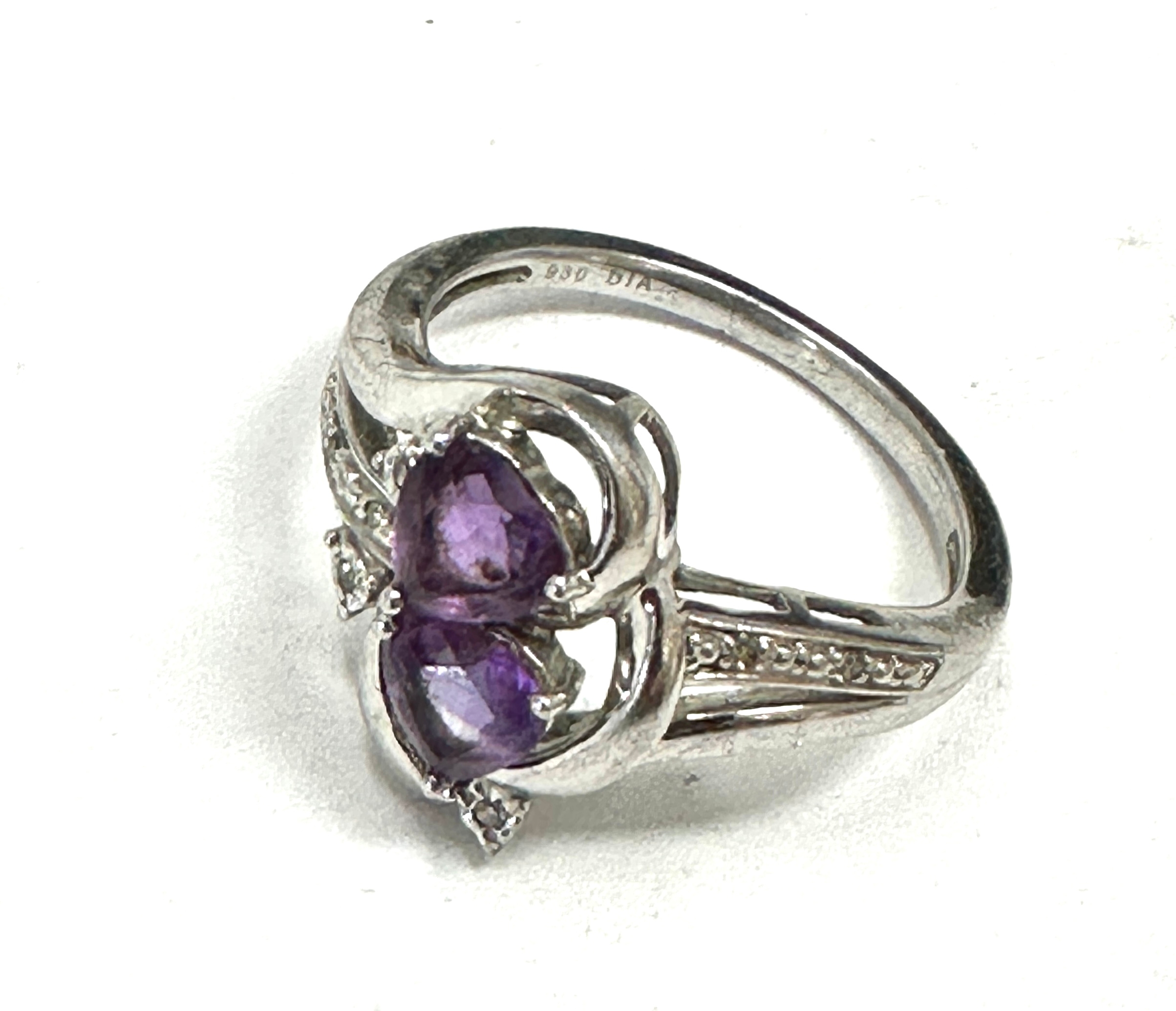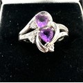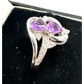 Silver amethyst & diamond ring