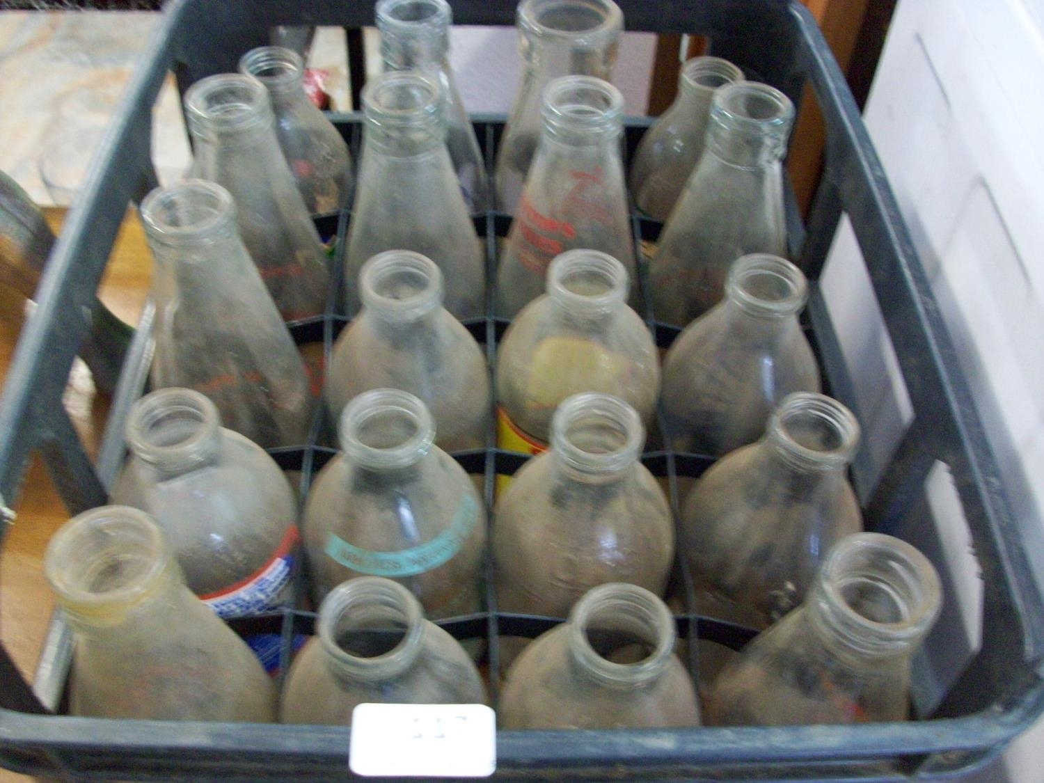 20 Printed Milk Bottles With Crate Dairyana (some very rare)