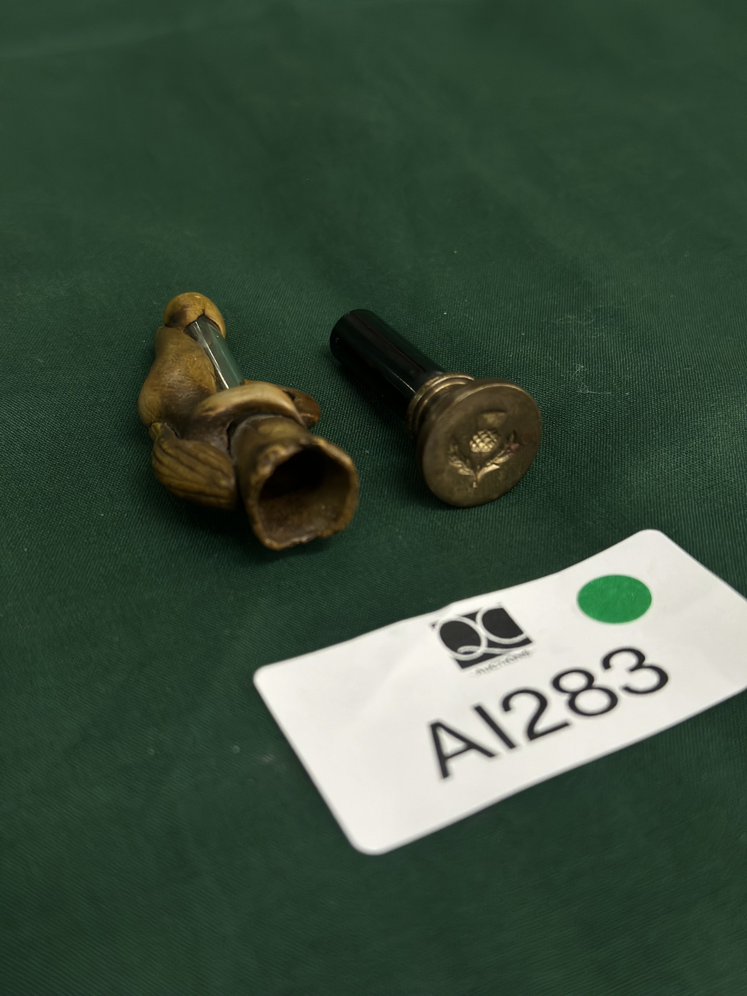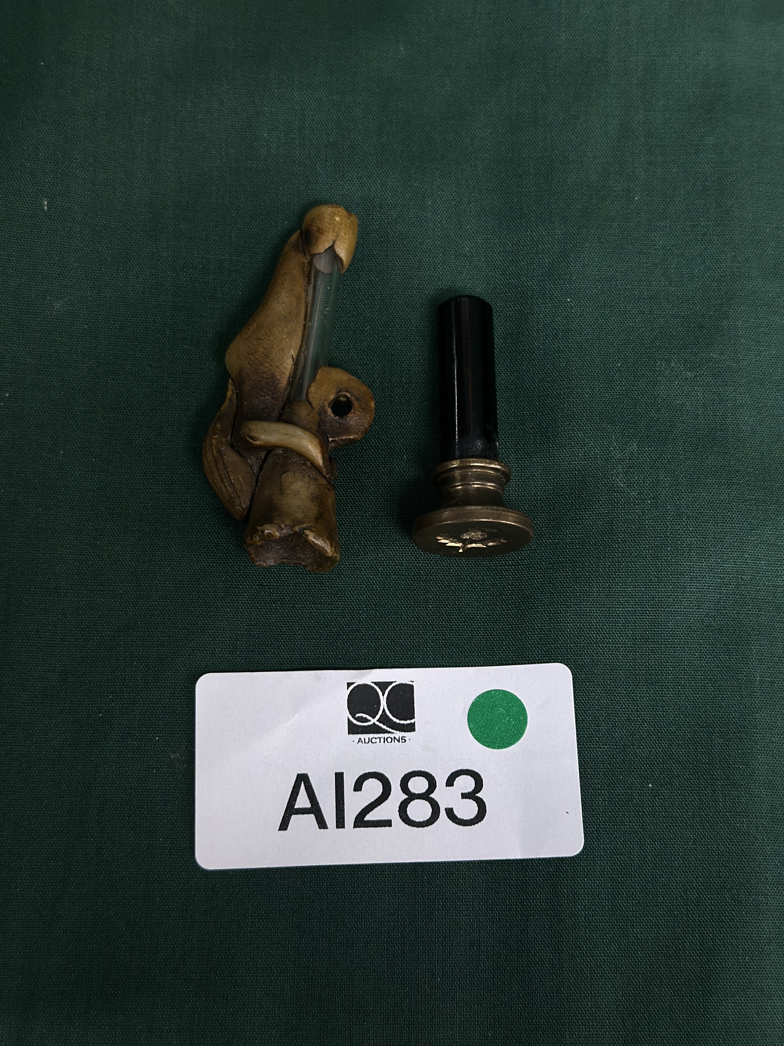 2 items to include a wax seal and a cherrot holder in the shape of a ladies figure