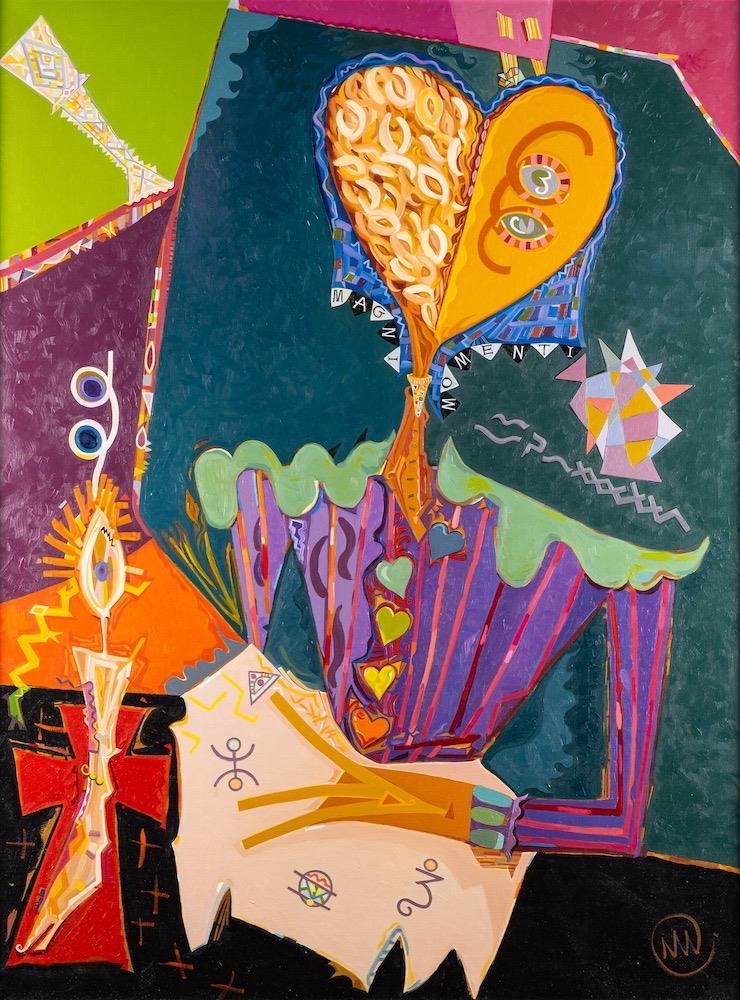 Marjana Wjasnova (Contemporary School) Aenigma monogrammed lower right and bearing further written title label oil on linen 120 x 89cm