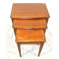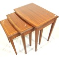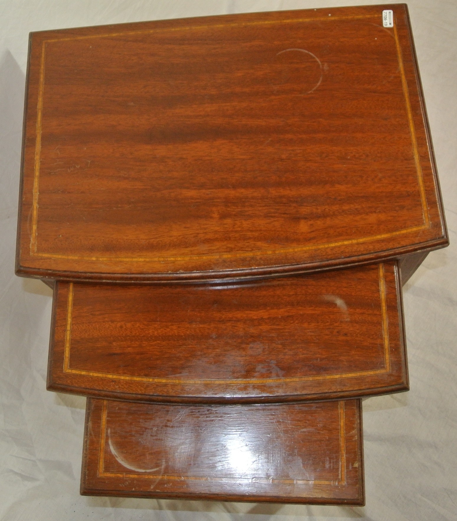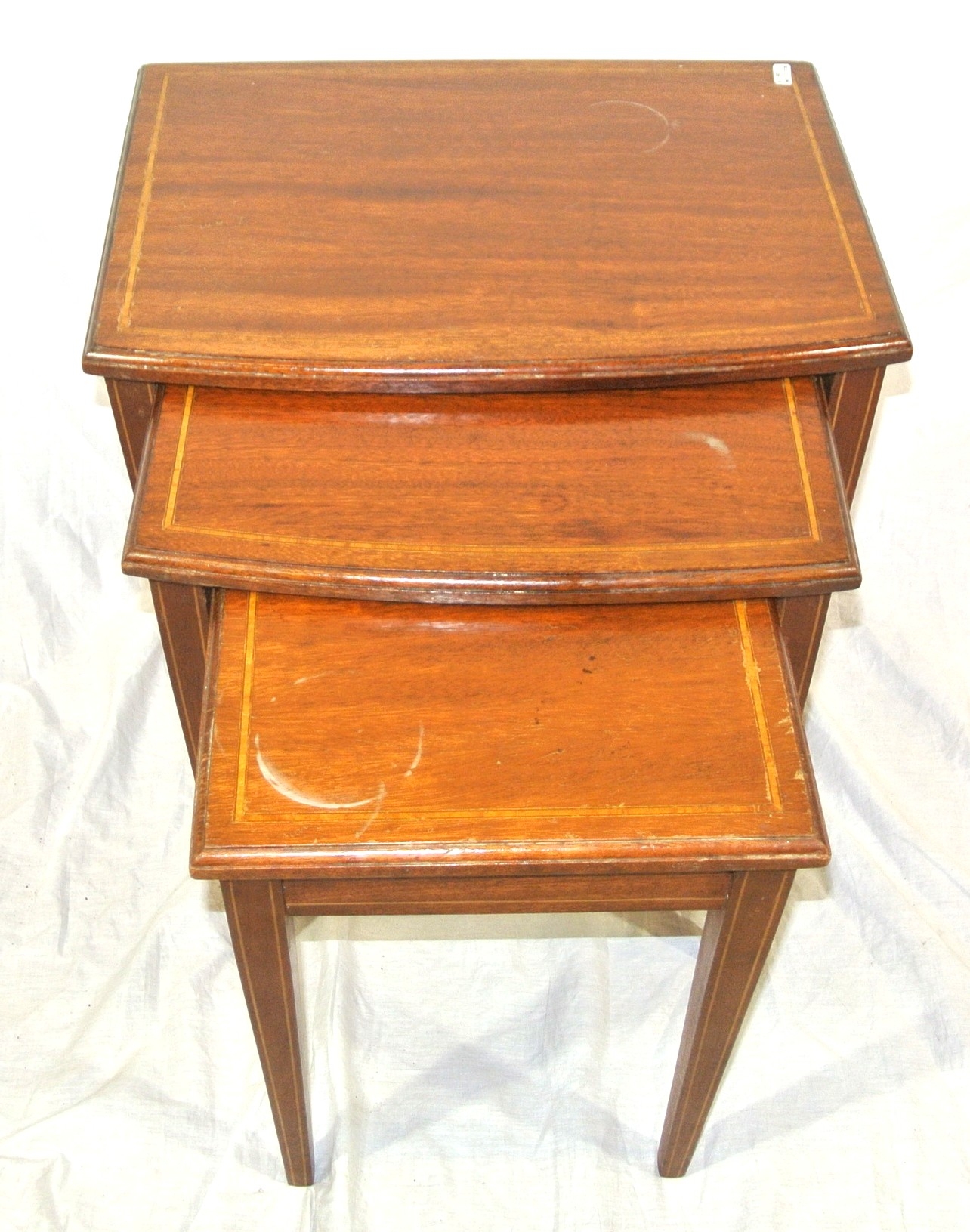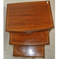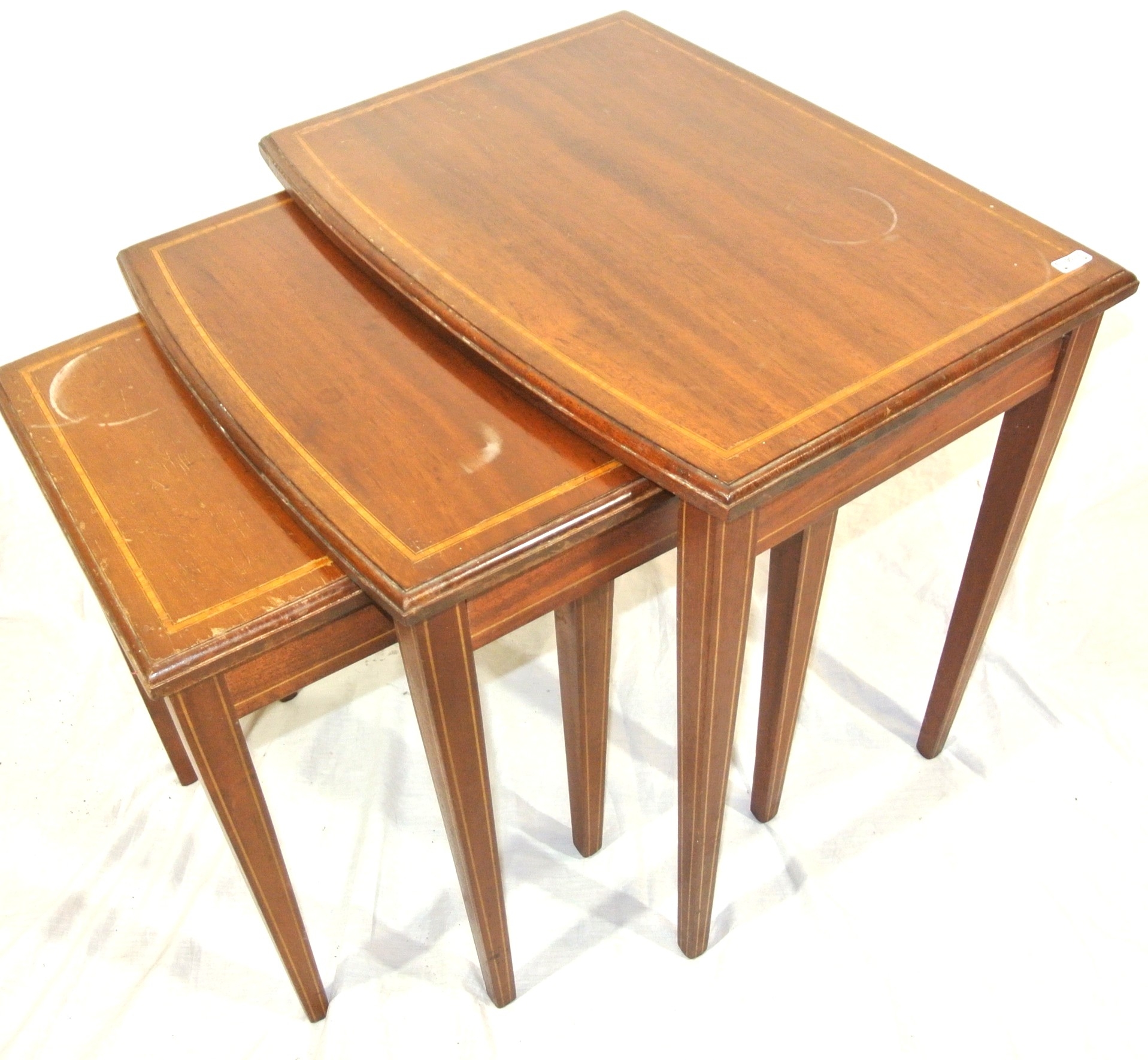 Nest of 3 inlaid mahogany bow fronted graduating tables with inlaid square tapering legs