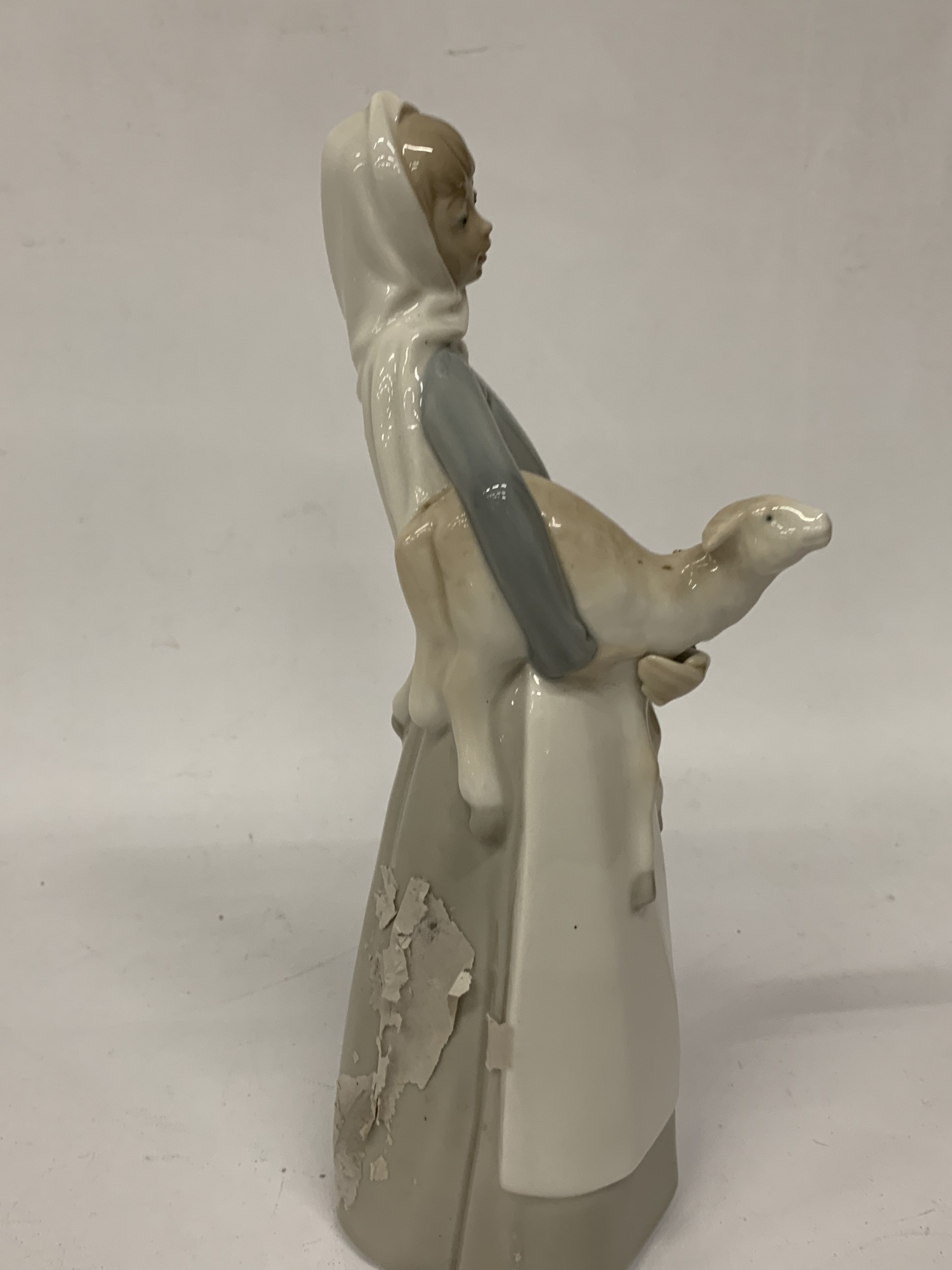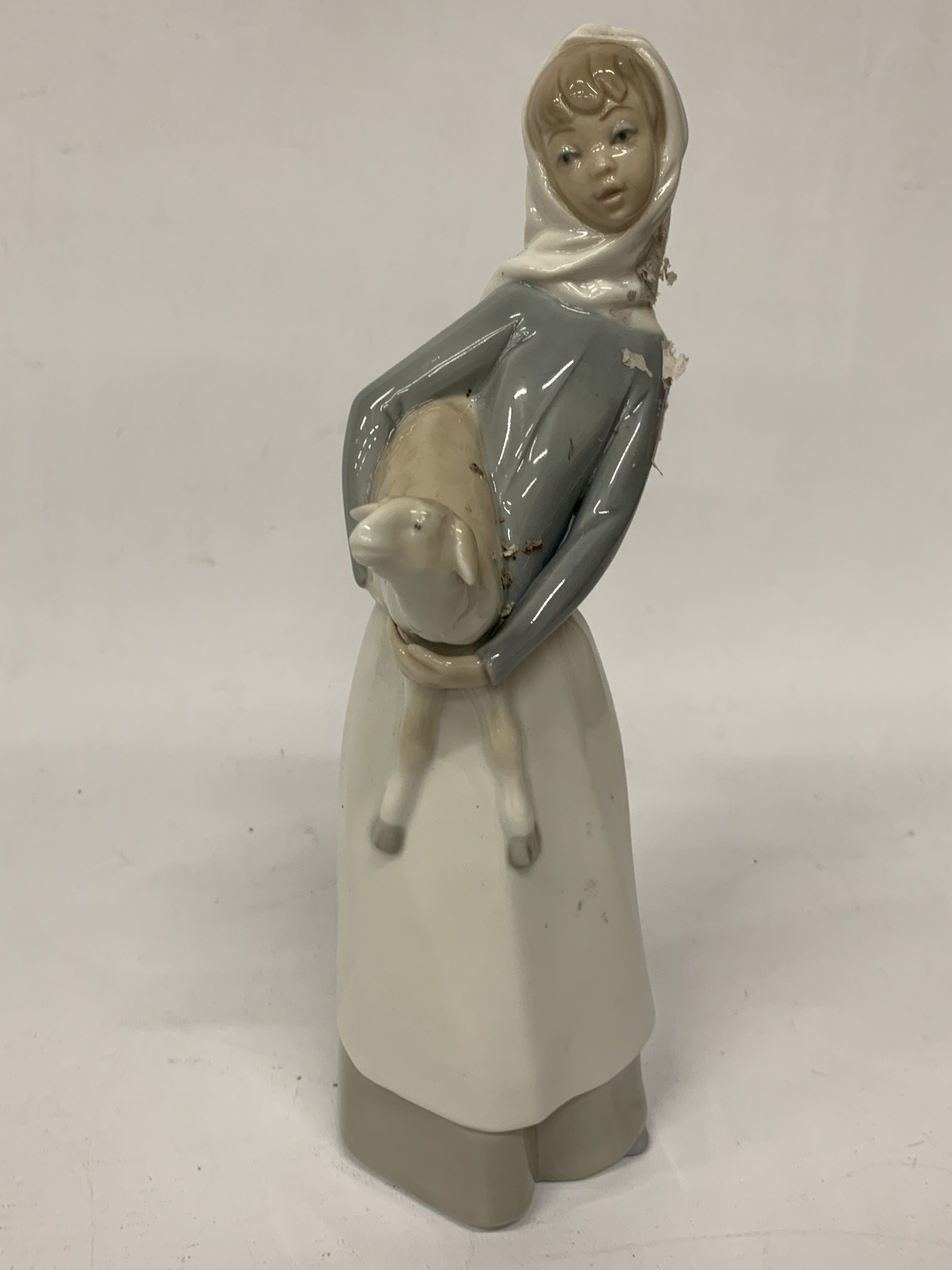 A LLADRO FIGURE OF A GIRL HOLDING A LAMB