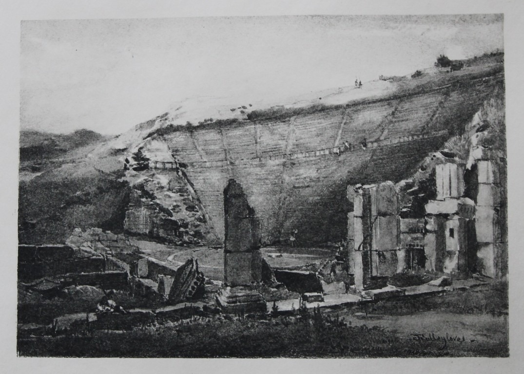 John Fulleylove 1897 - Etching of Theatre at Epidaurus. This superb etching is from Pictures of Classic Greek Landscapes and Architecture by John Fulleylove RI. Published by JM Dent & Co, London 1897.