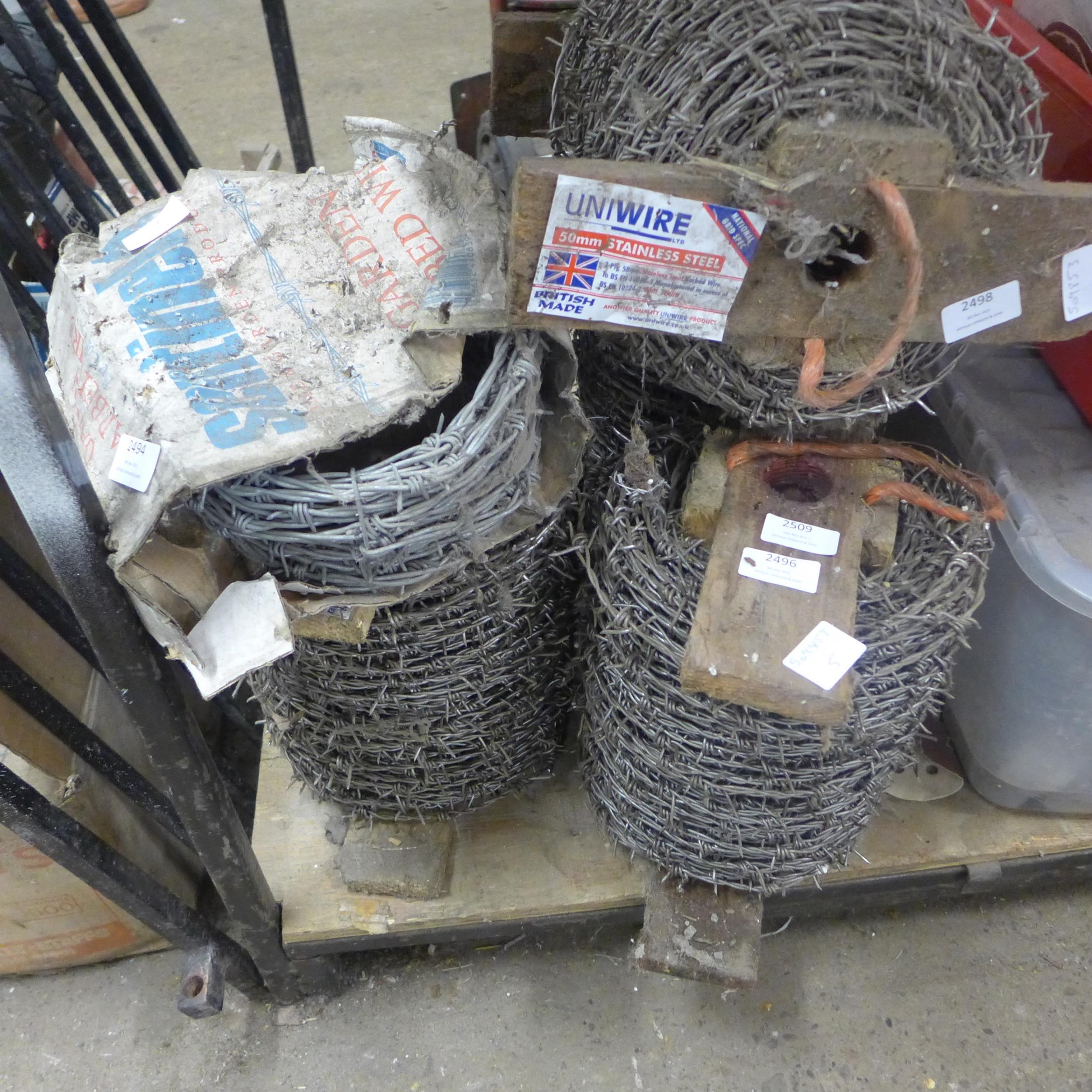 5 rolls of Uniwire galvanised barbed wire & 1 other retails at around £30 per roll