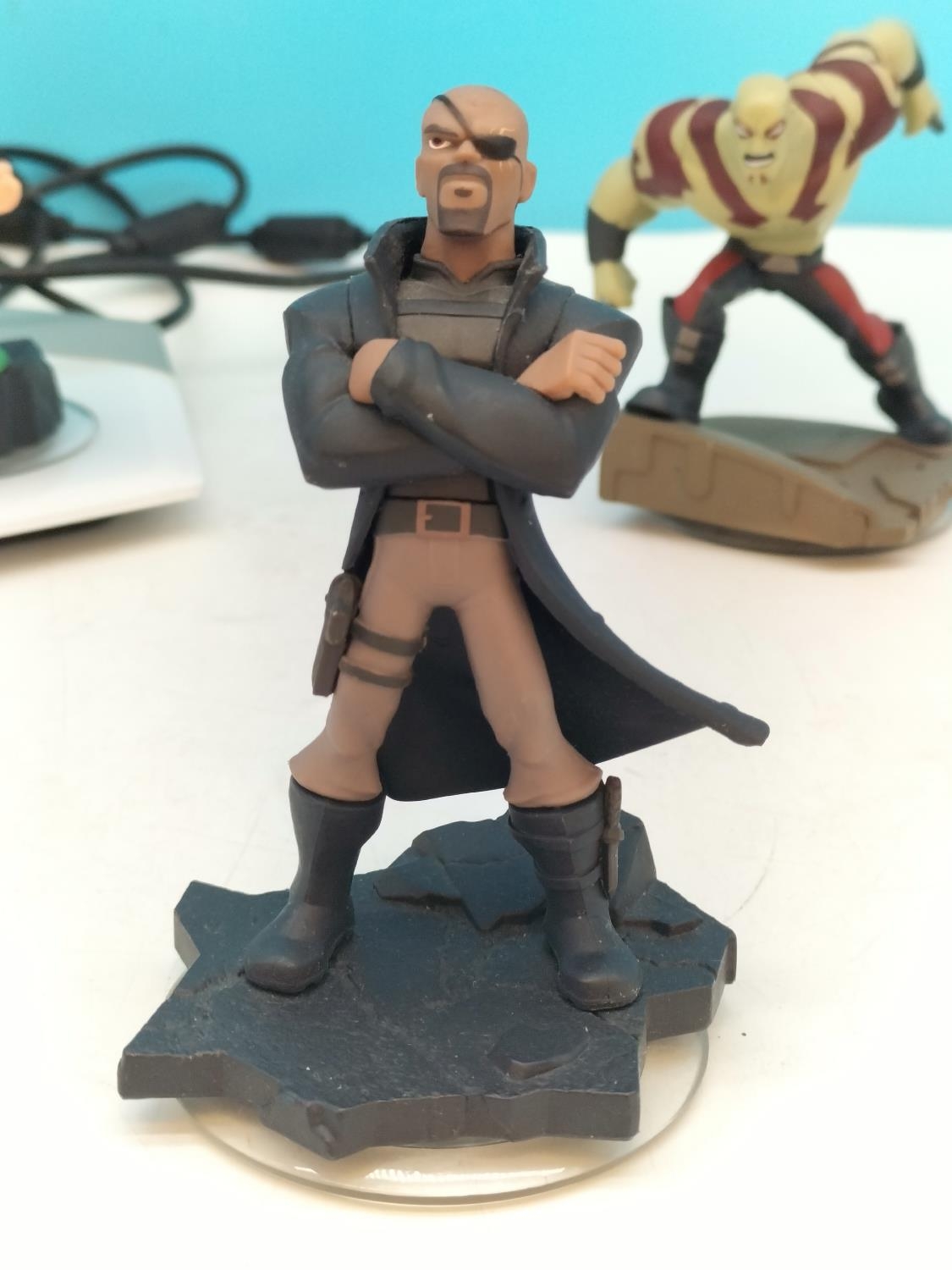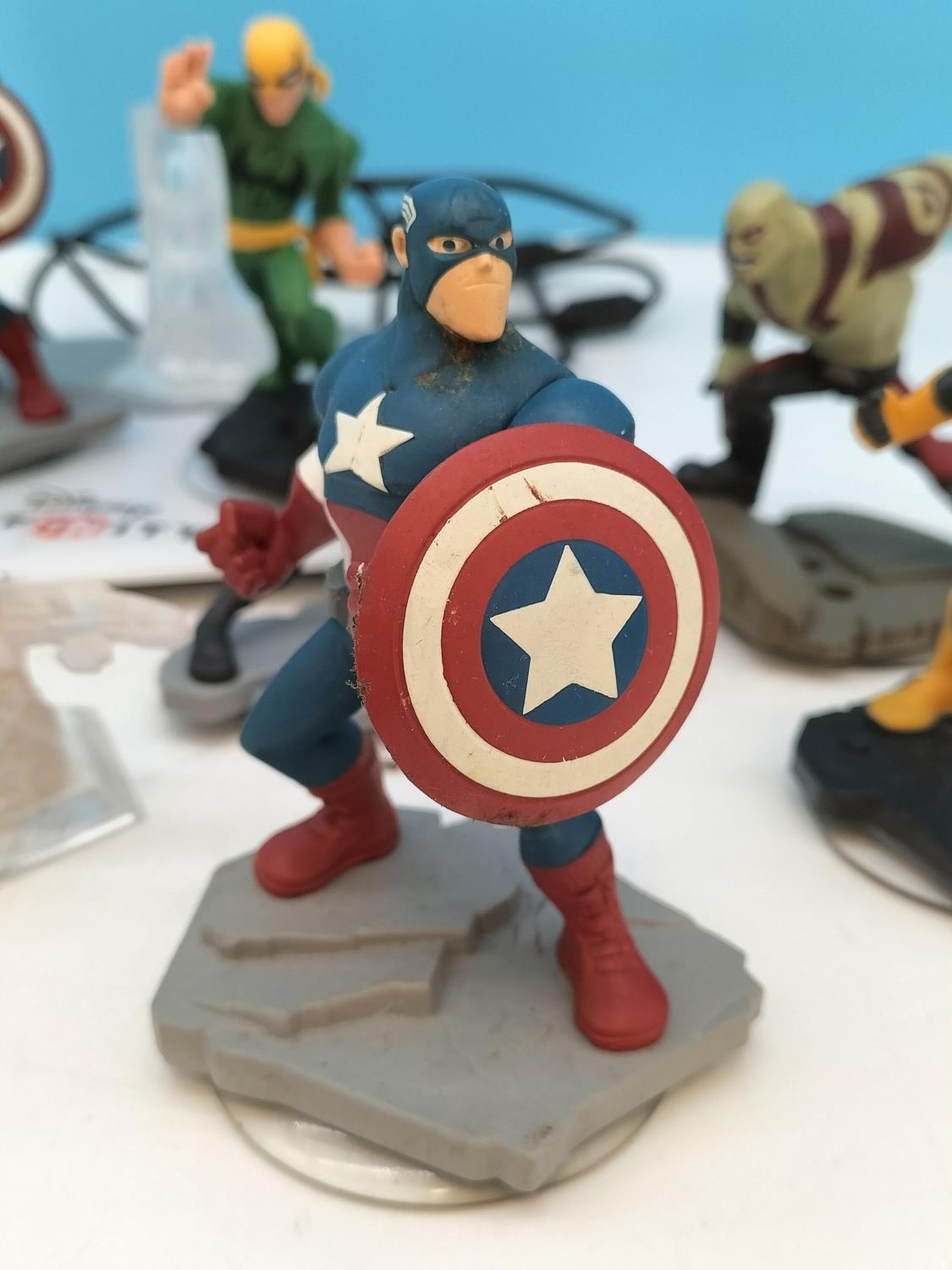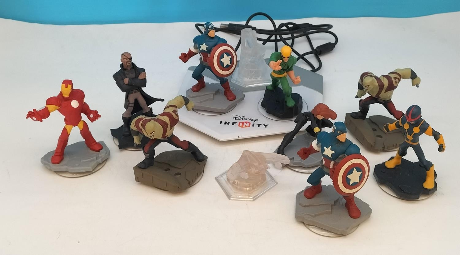 Disney Infinity Marvel Super Heroes Figures (9) to include Captain America (2), Iron Man, Nova, Iron Fist, Black Widow, Drax (2), Nick Fury plus Power Crystals and Power Portal.
