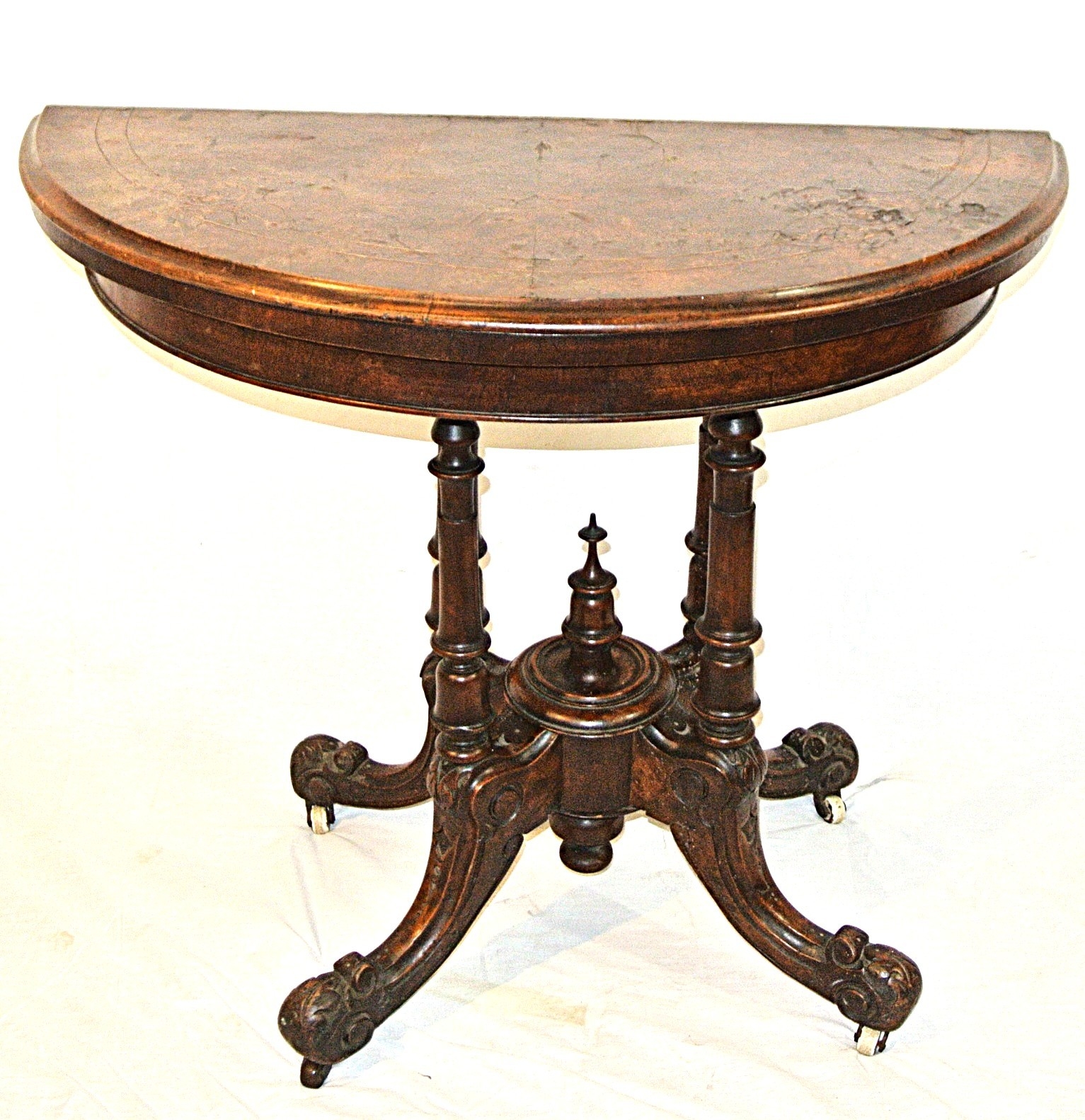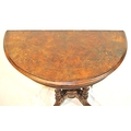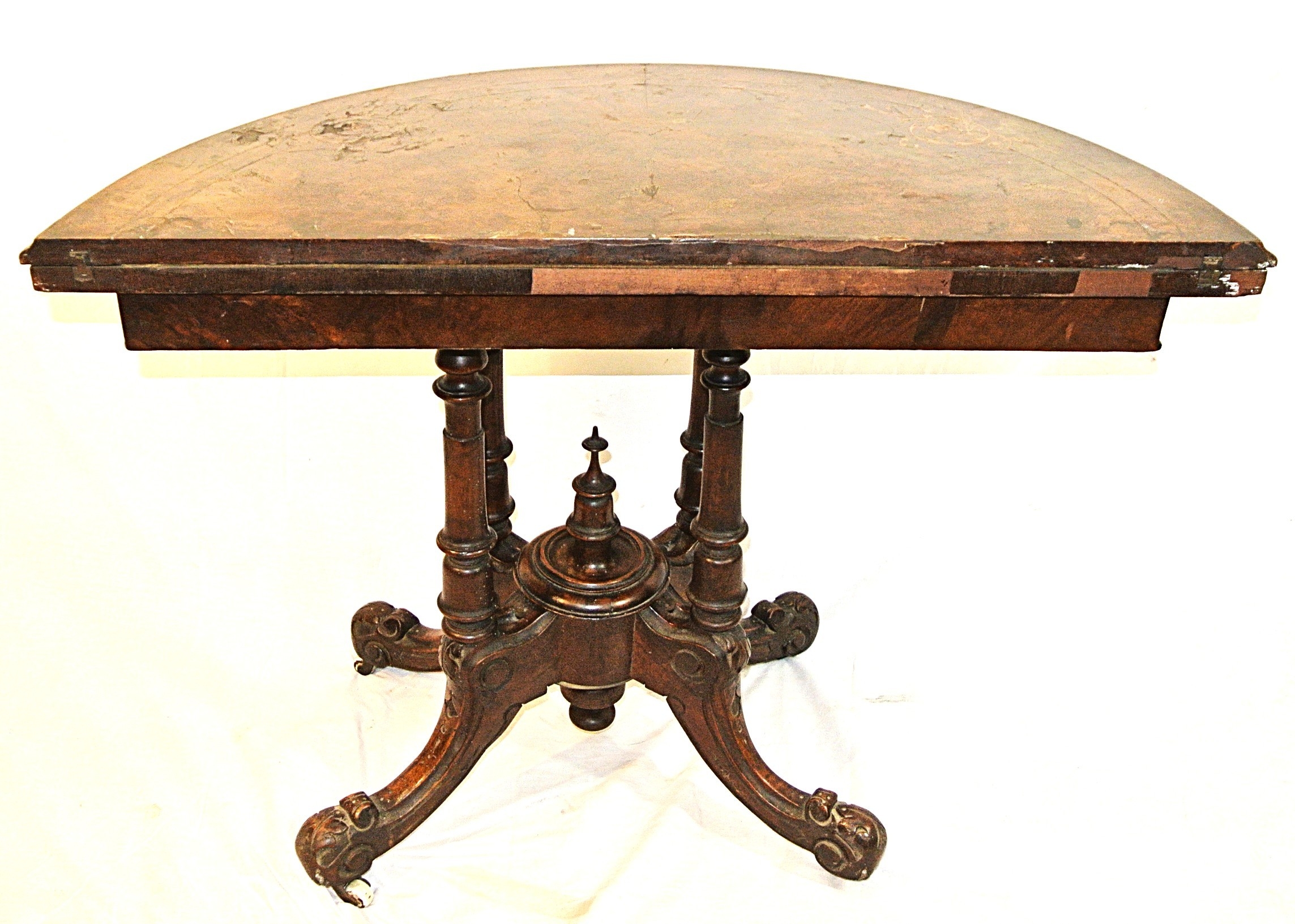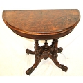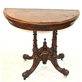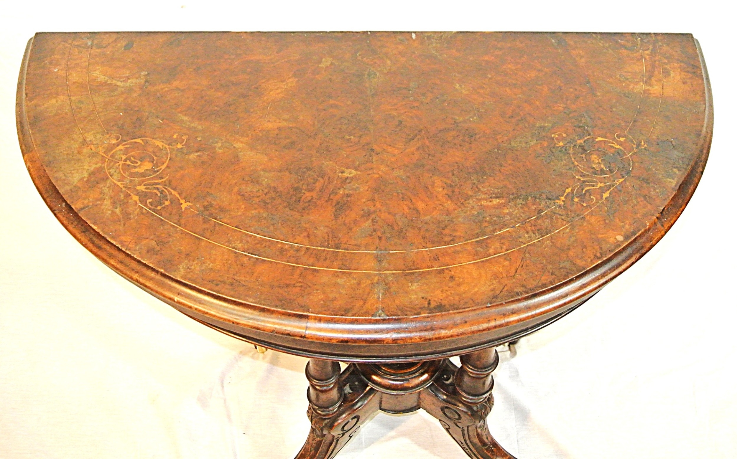 Victorian inlaid walnut demi-lune card table with swivel fol...