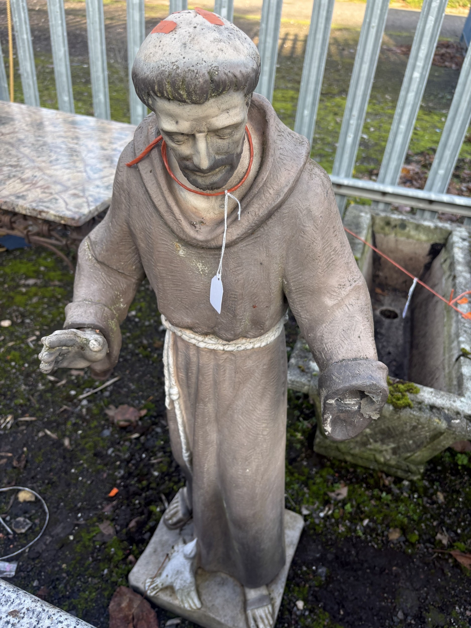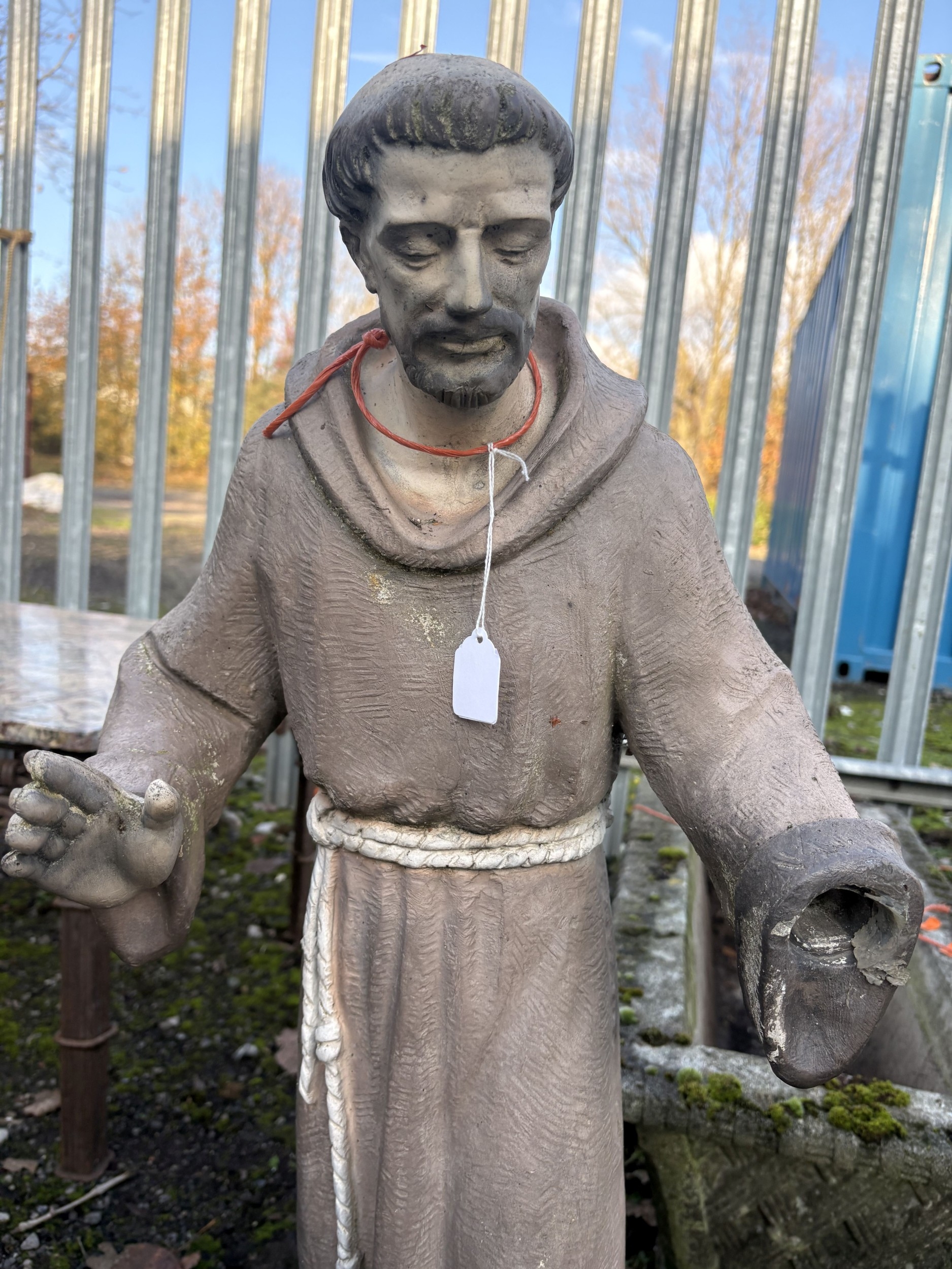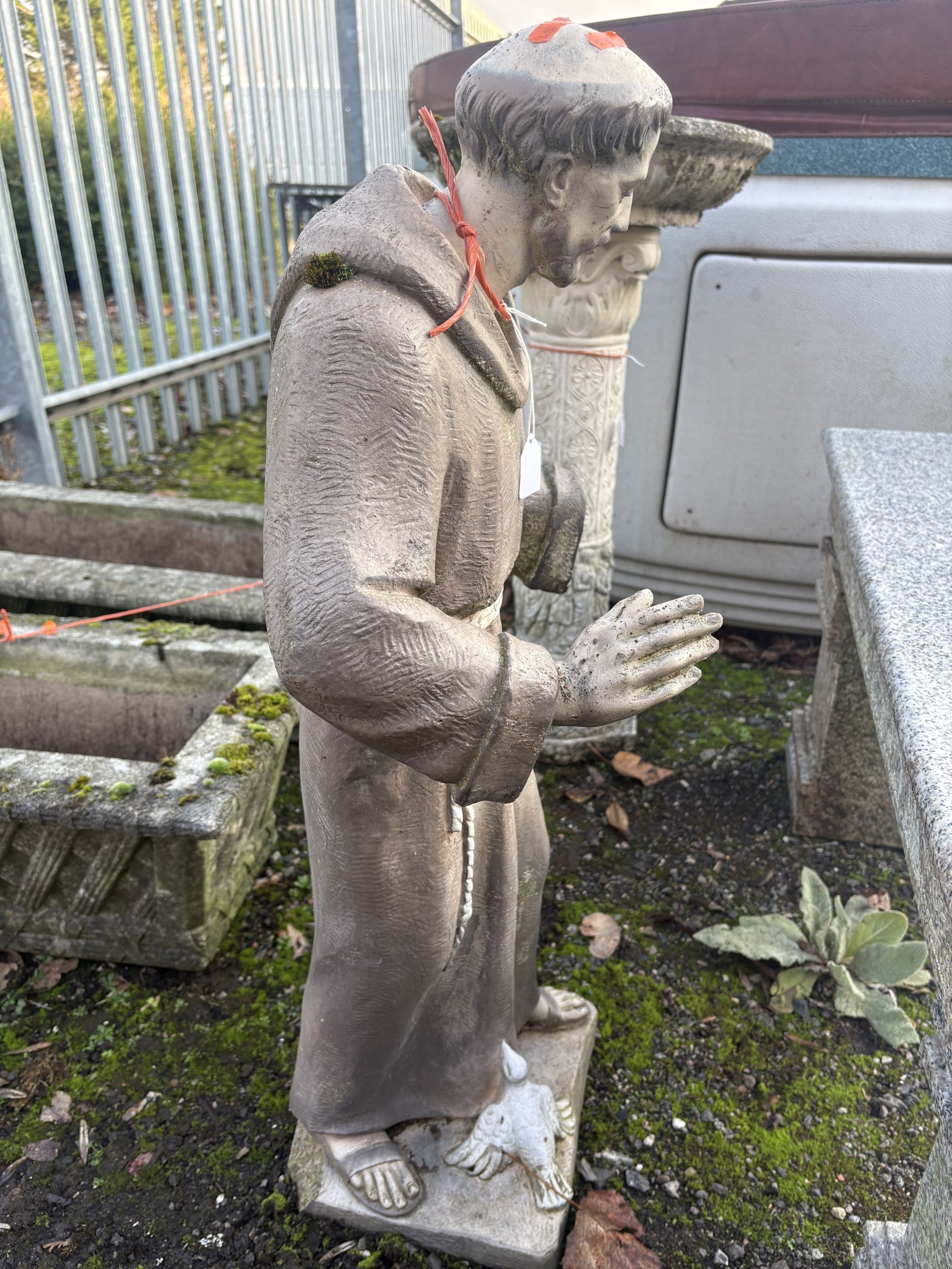 A PAINTED CONCRETE STATUE OF THE ST FRANCIS OF ASSISI, height 83cm, condition report: missing left hand, weathered finish