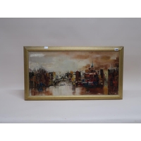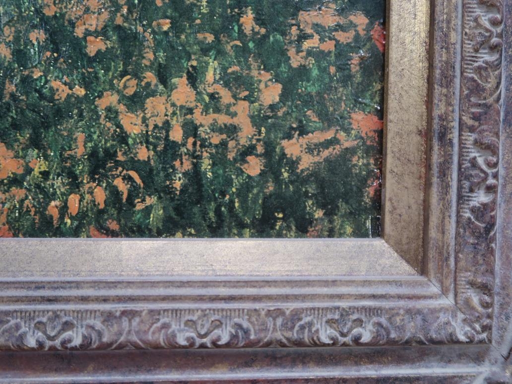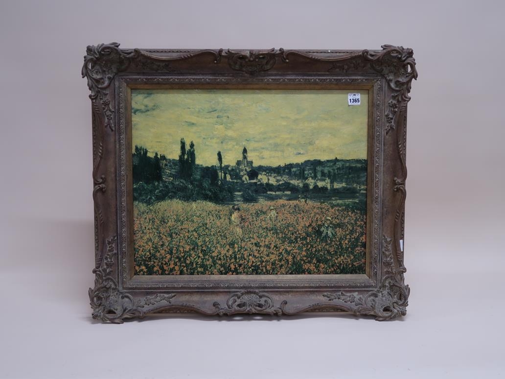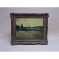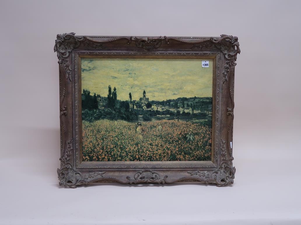 OELOGRAPH - FRENCH LANDSCAPE WITH POPPY FIELD AND TOWN, FRAMED 48CM X 60CM