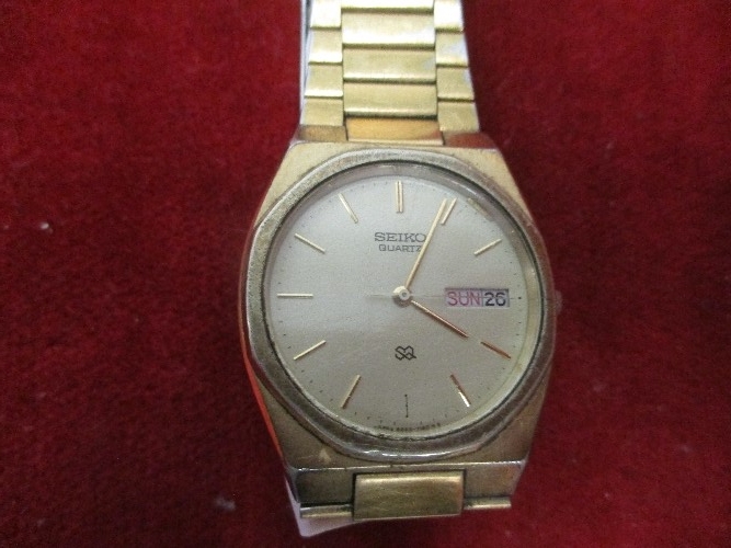 SEIKO GENTS WATCH WITH DAY/DATE, SEIKO STRAP No160075 GOLD PLATED
