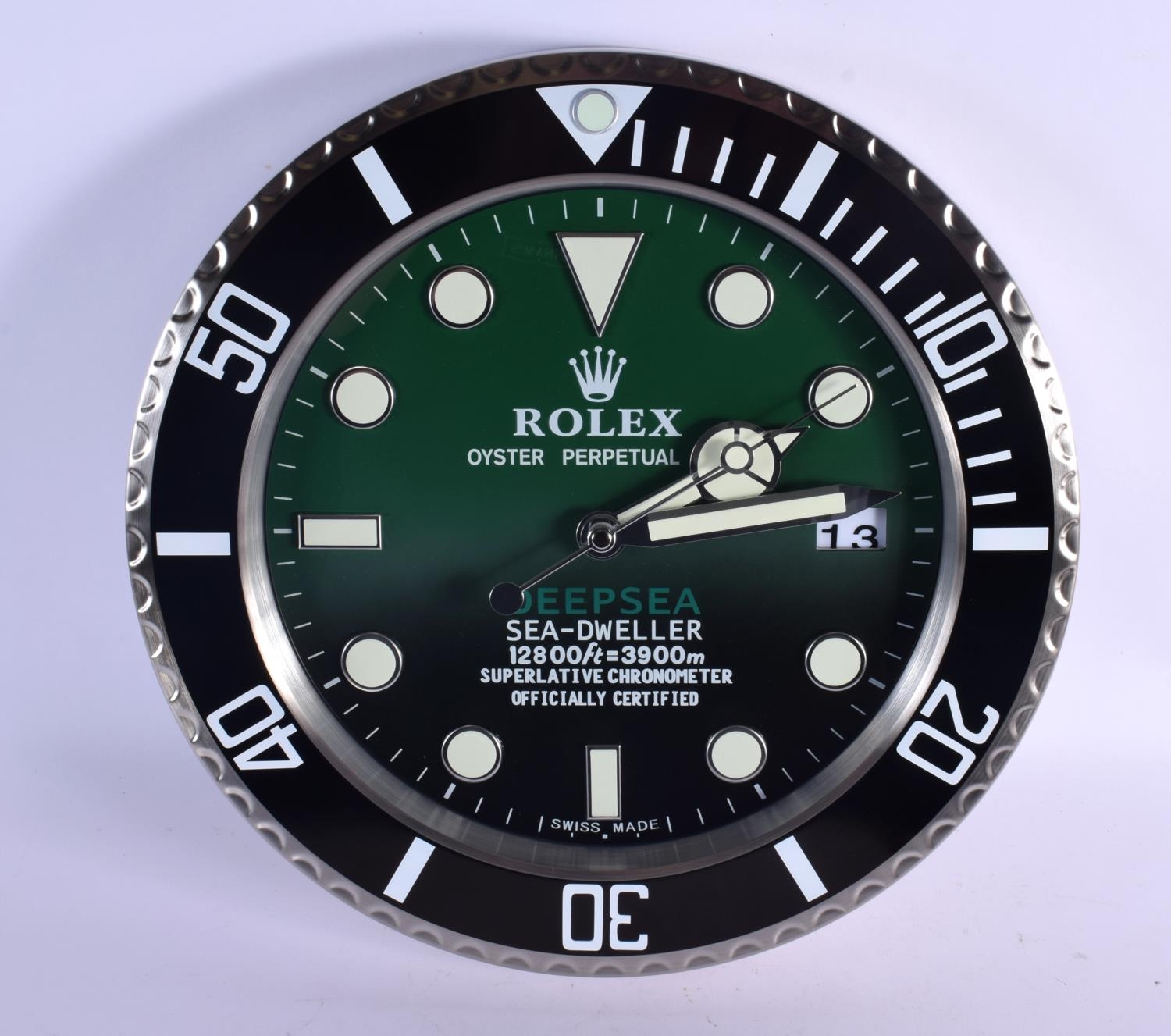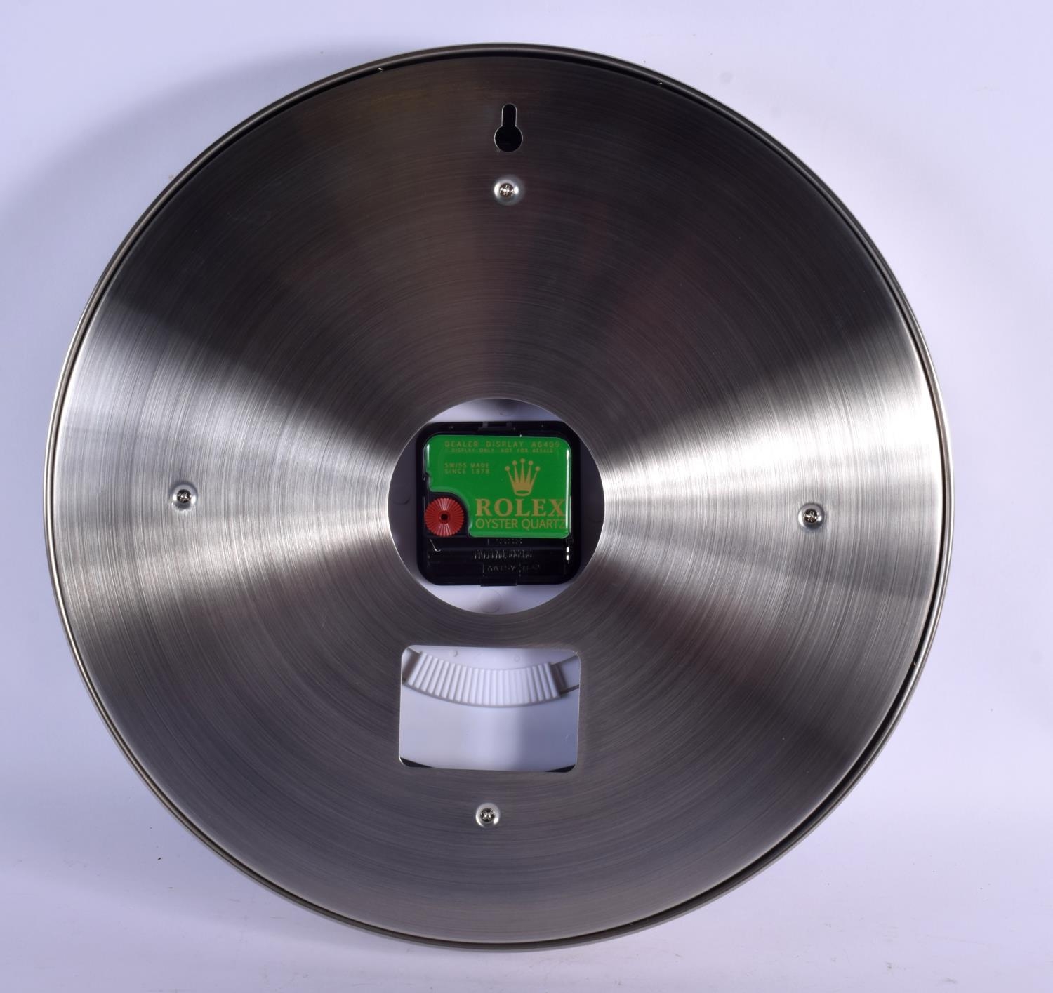 A ROLEX SHOP DISPLAY ADVERTISING WALL CLOCK. 33 cm diameter.