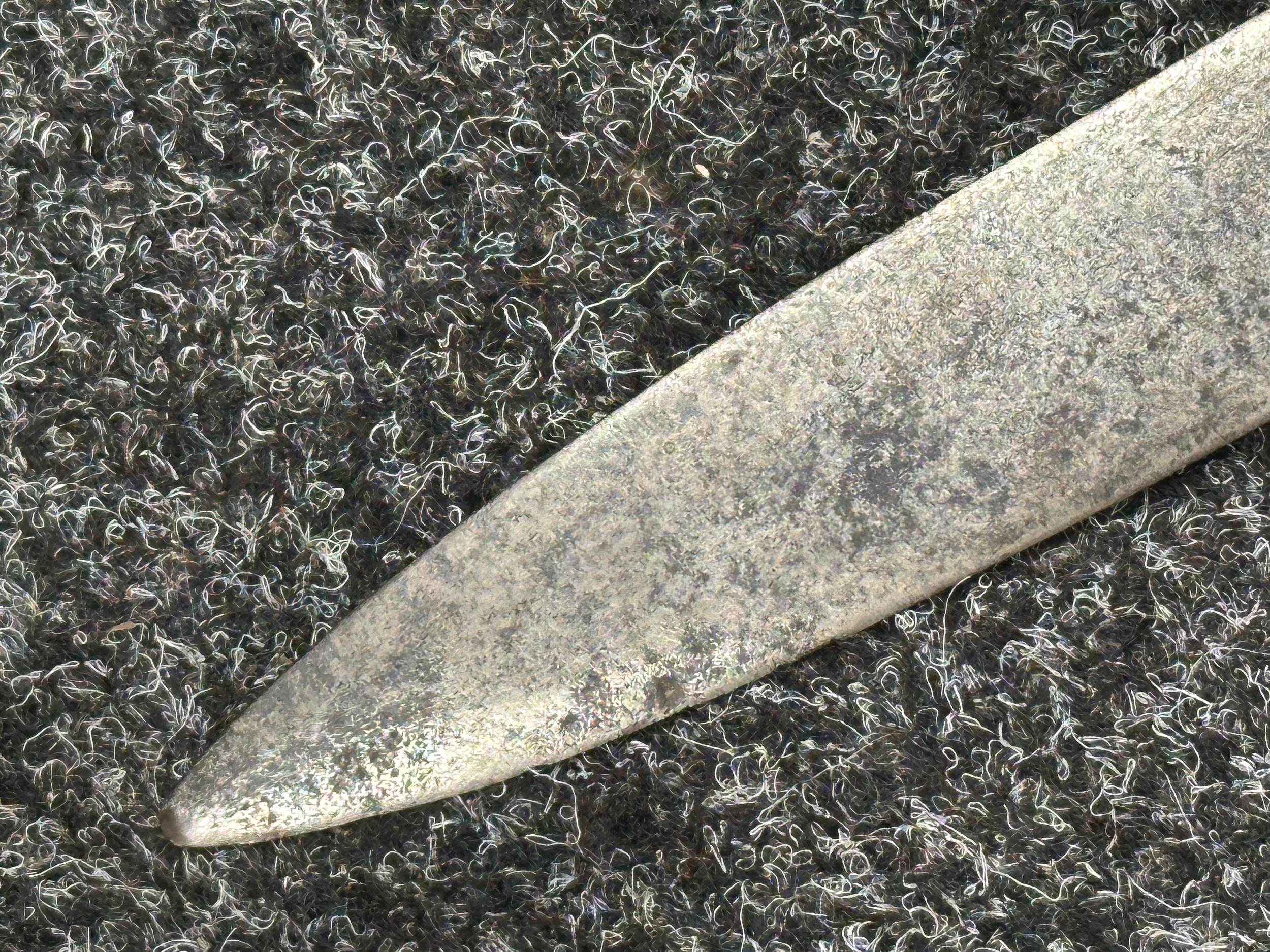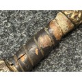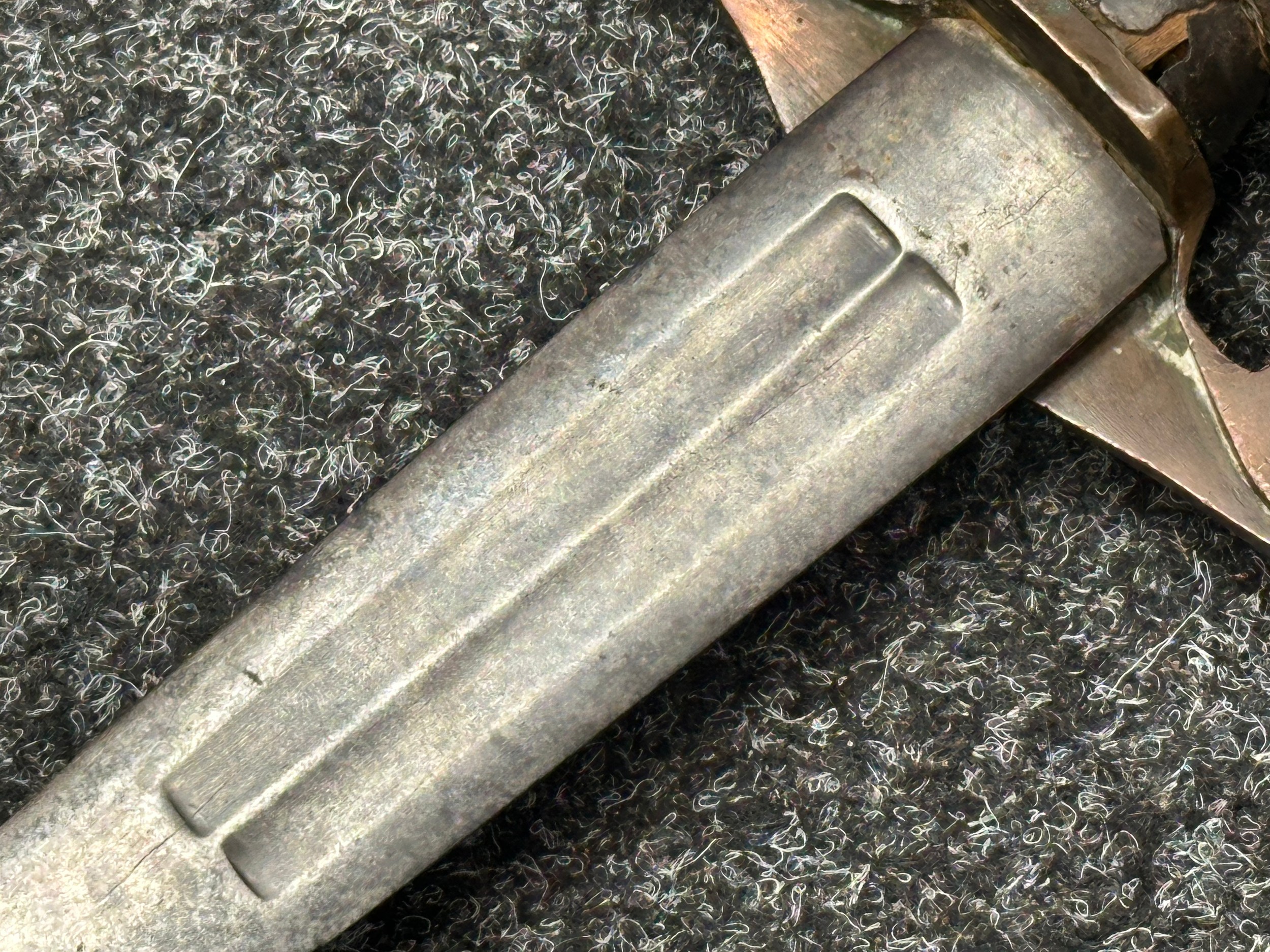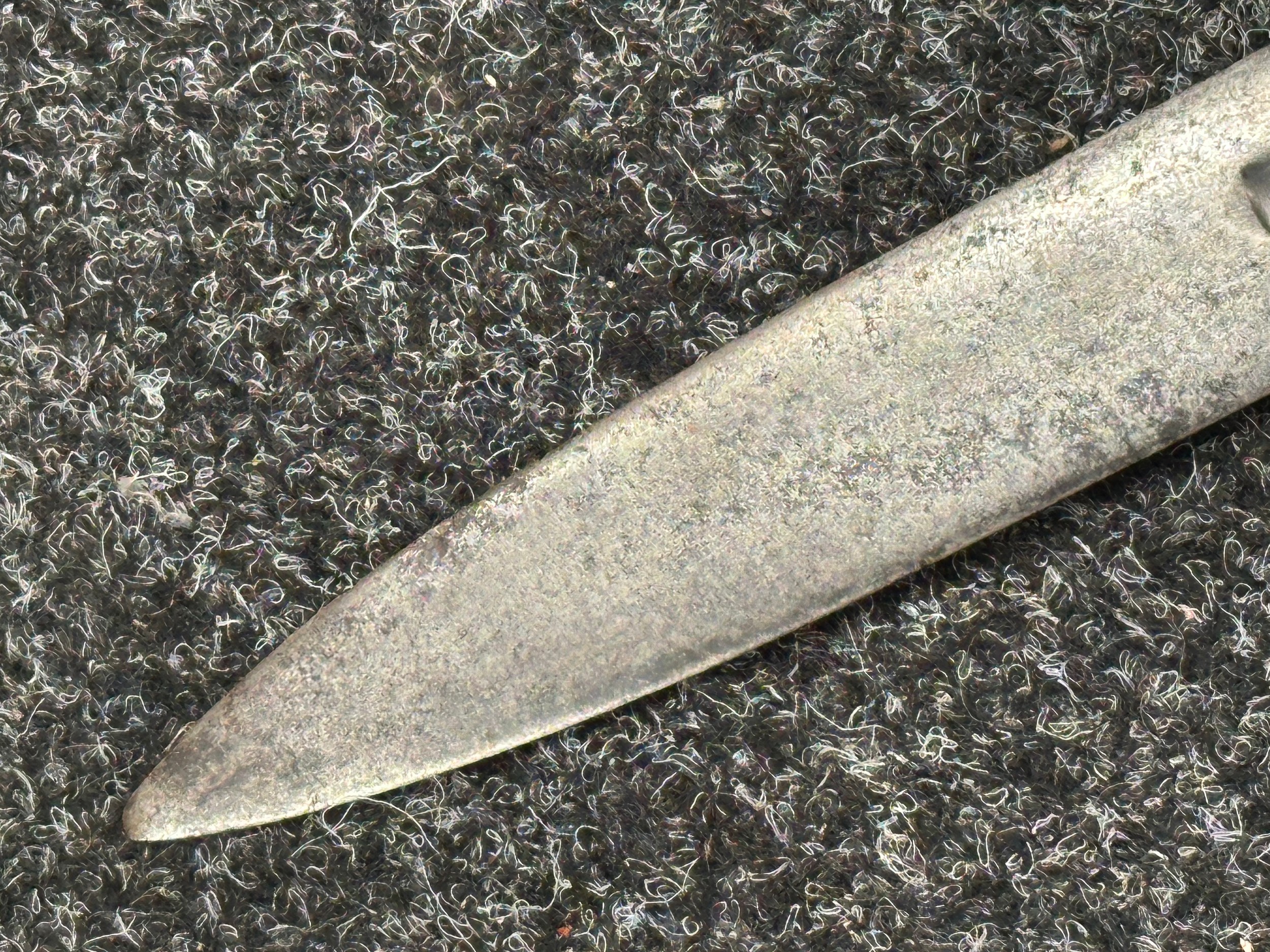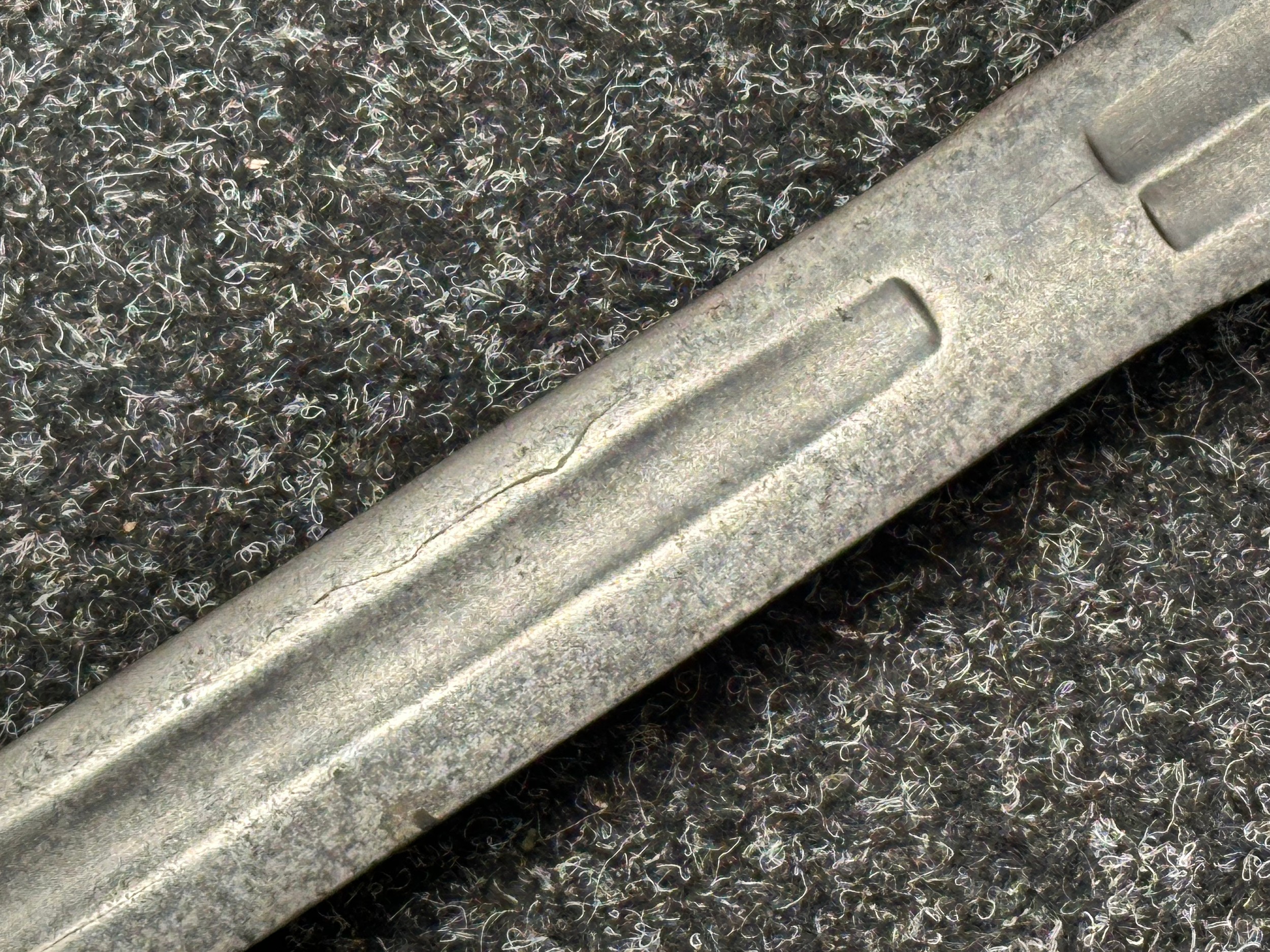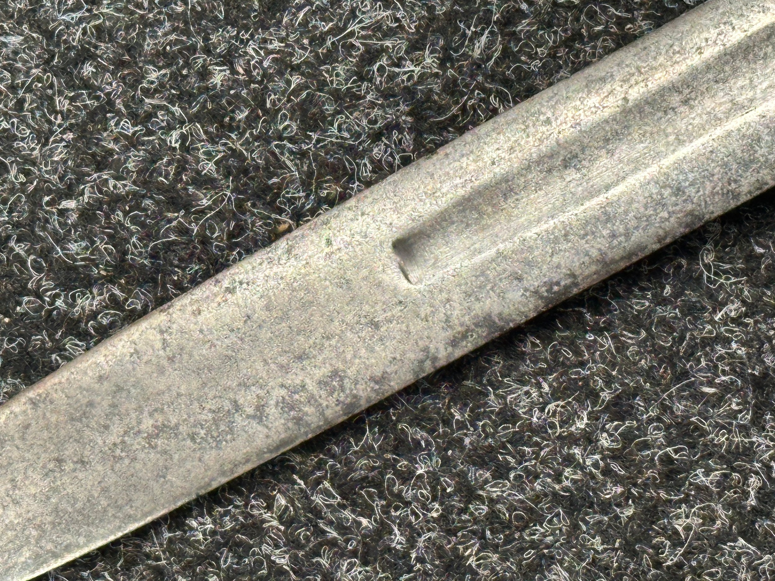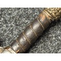There are some damages to the grip, particularly along the leather, the guard is somewhat loose, some pitting and old rusting to the blade, but commensurate with age