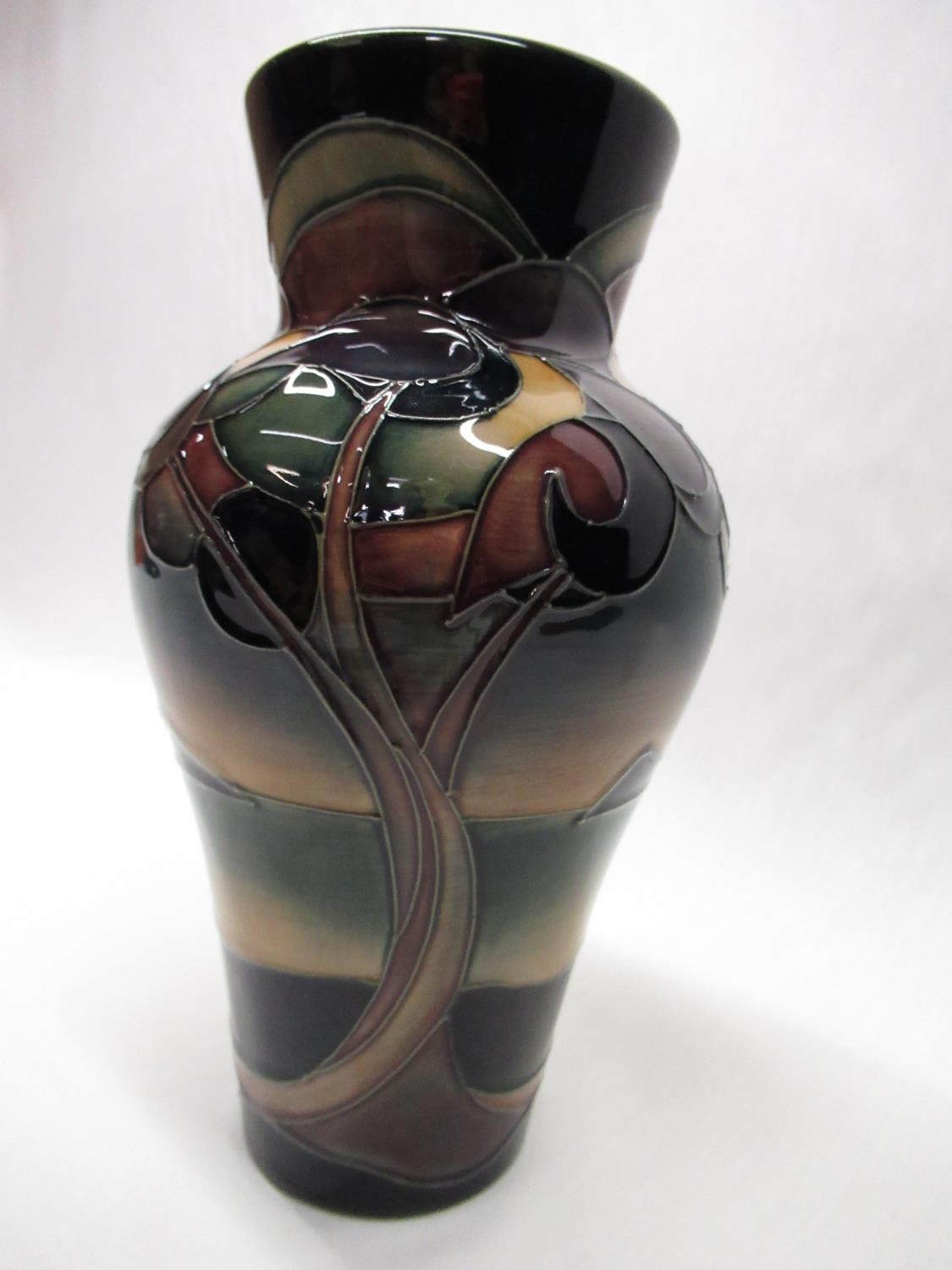 Moorcroft baluster Art Deco style vase decorated ith styalised trees in a landscape, impressed marks and painted marks to base, H20cm