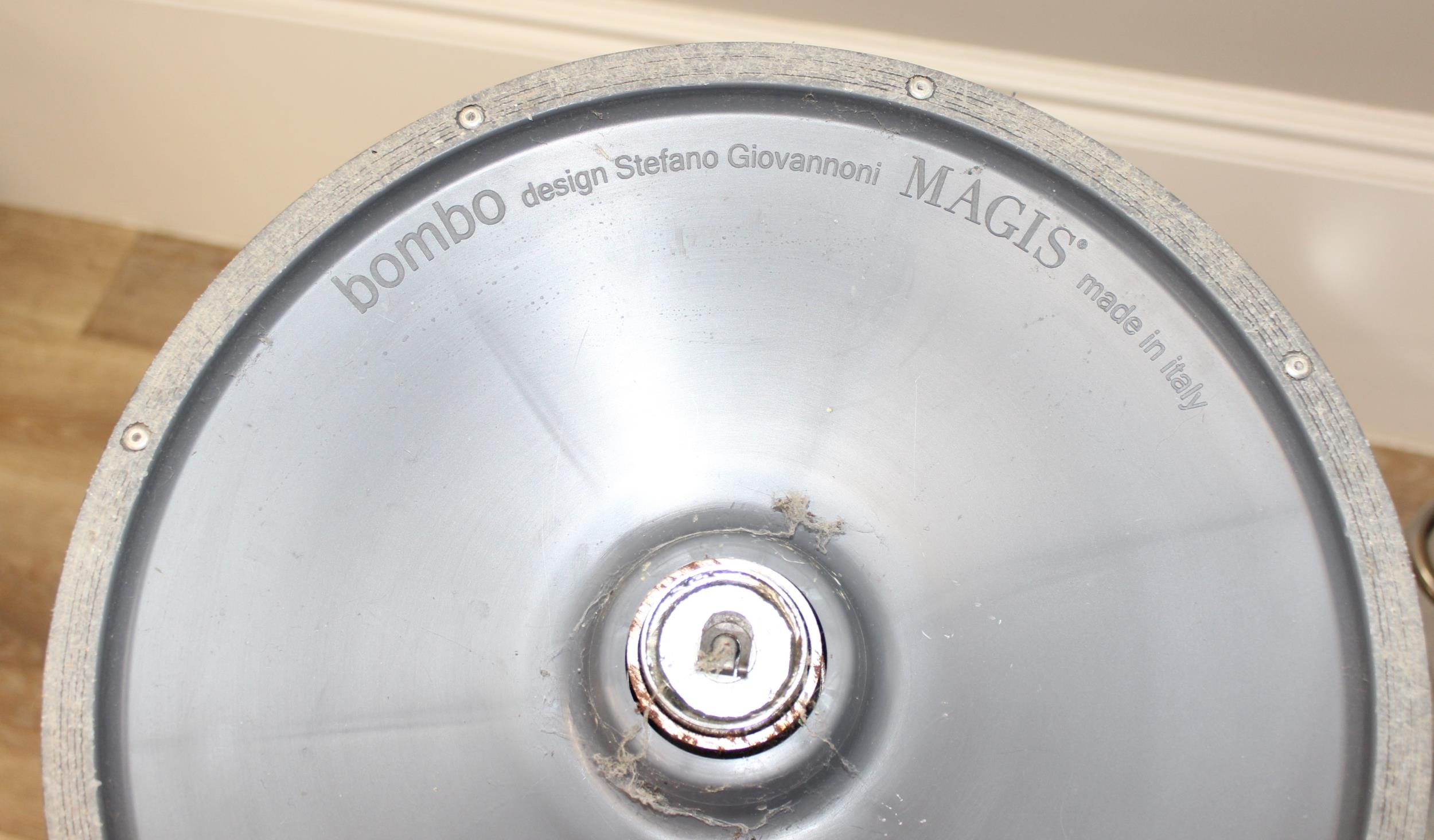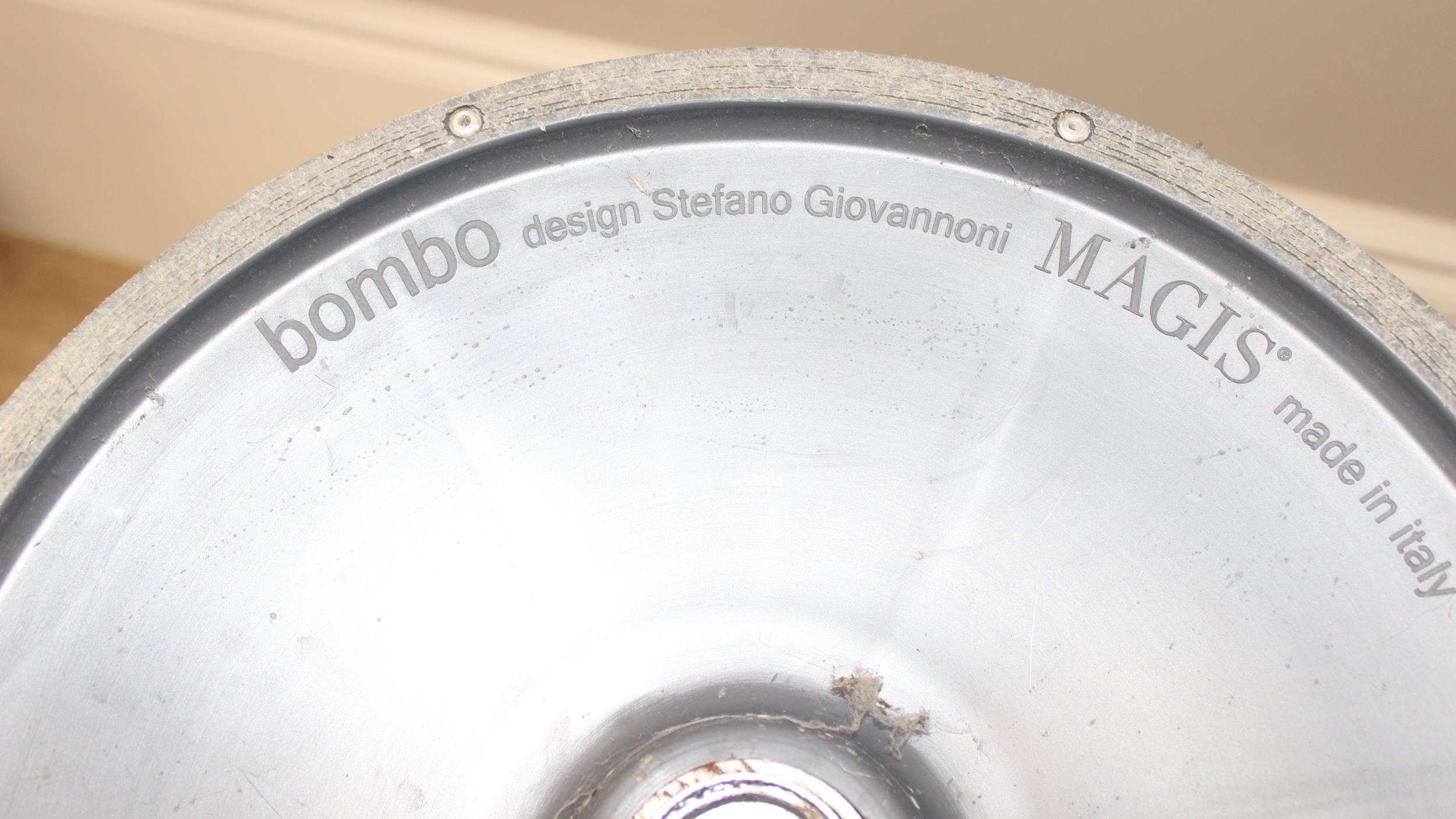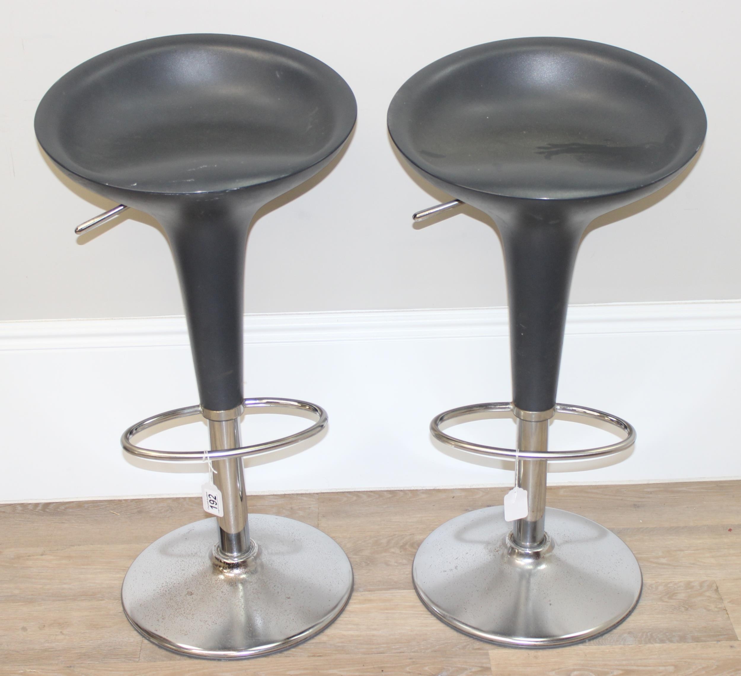 A pair of dark grey and chrome Bombo Barstools designed by Stefano Giovannoni for Magis of Italy, various marks to base, 83cm tall but height adjustable