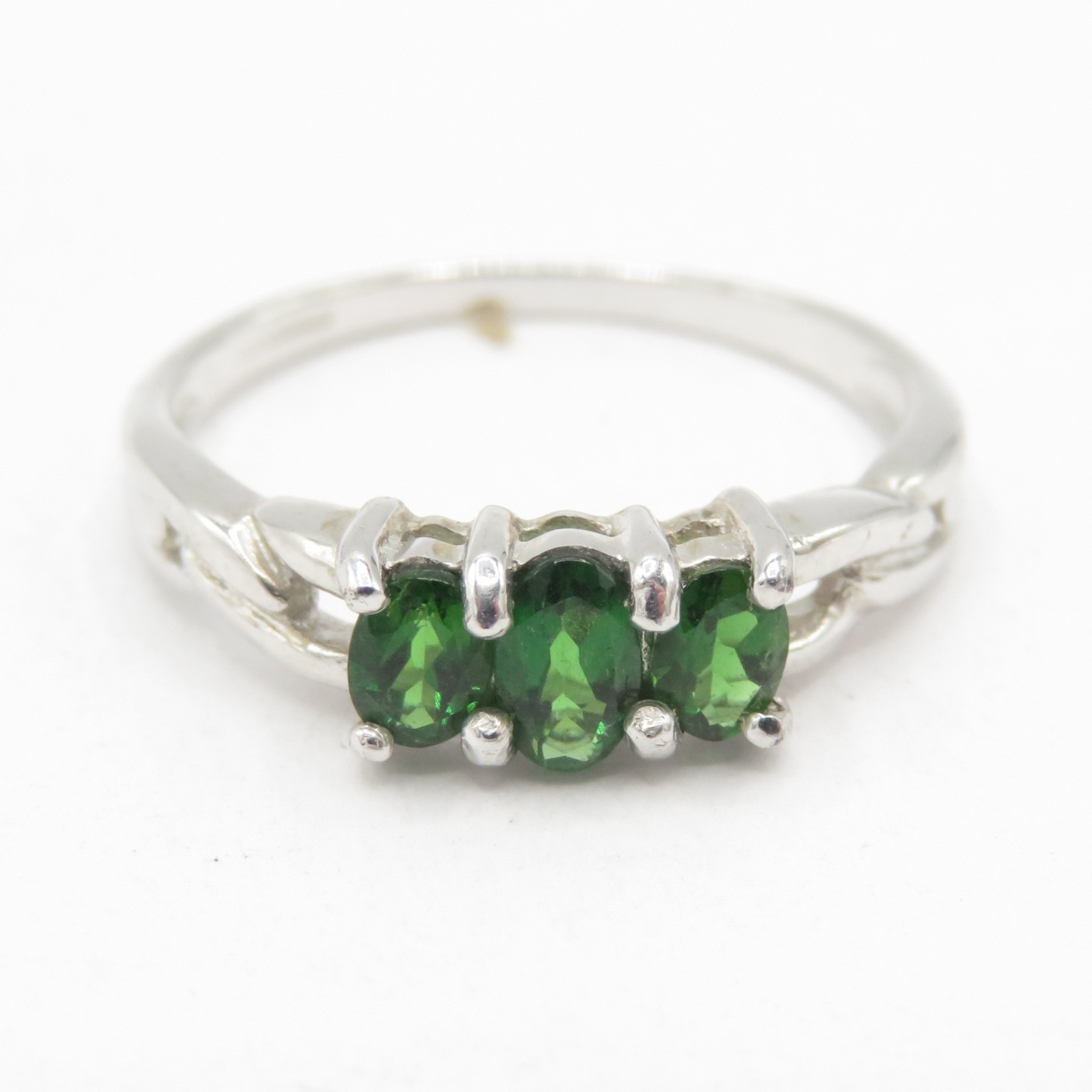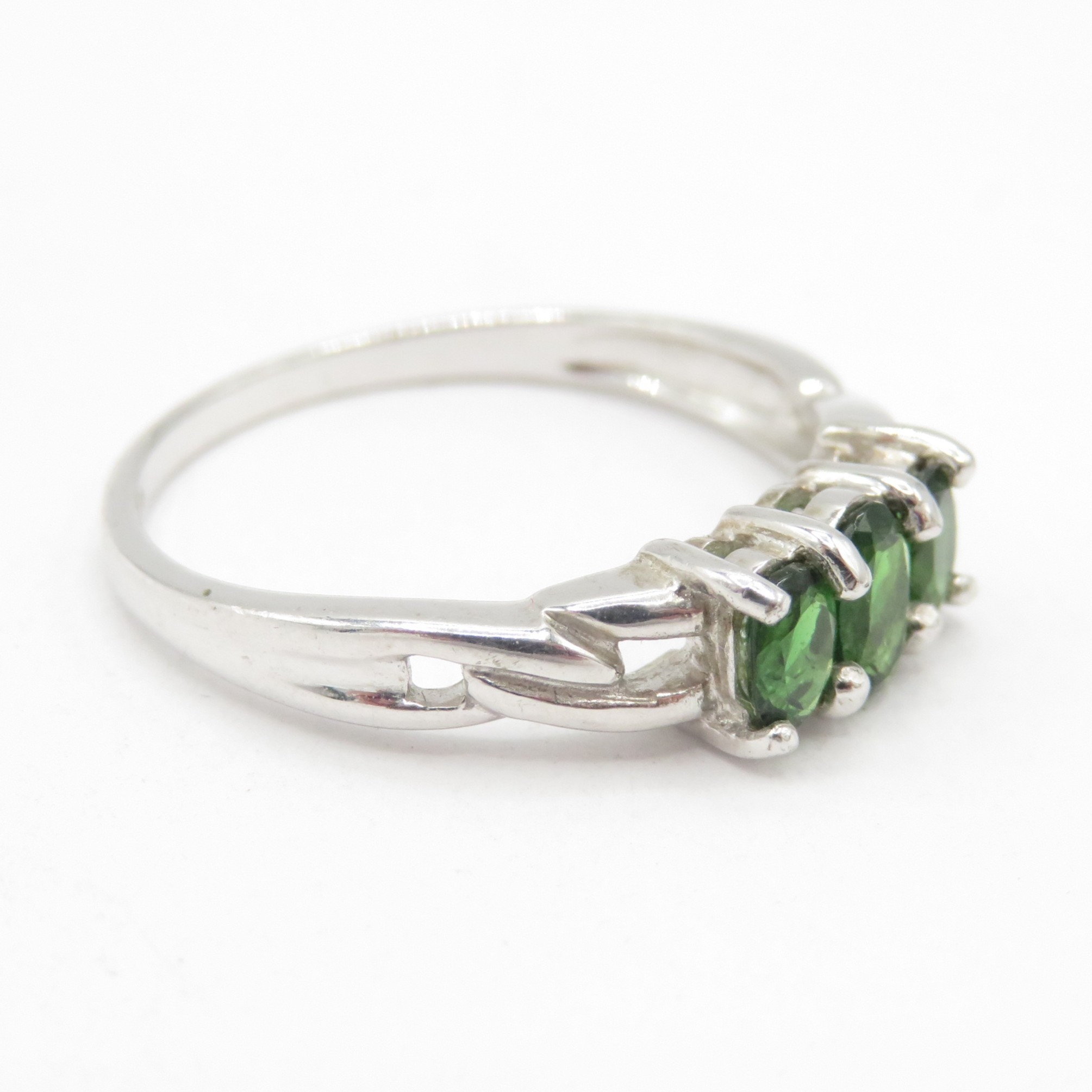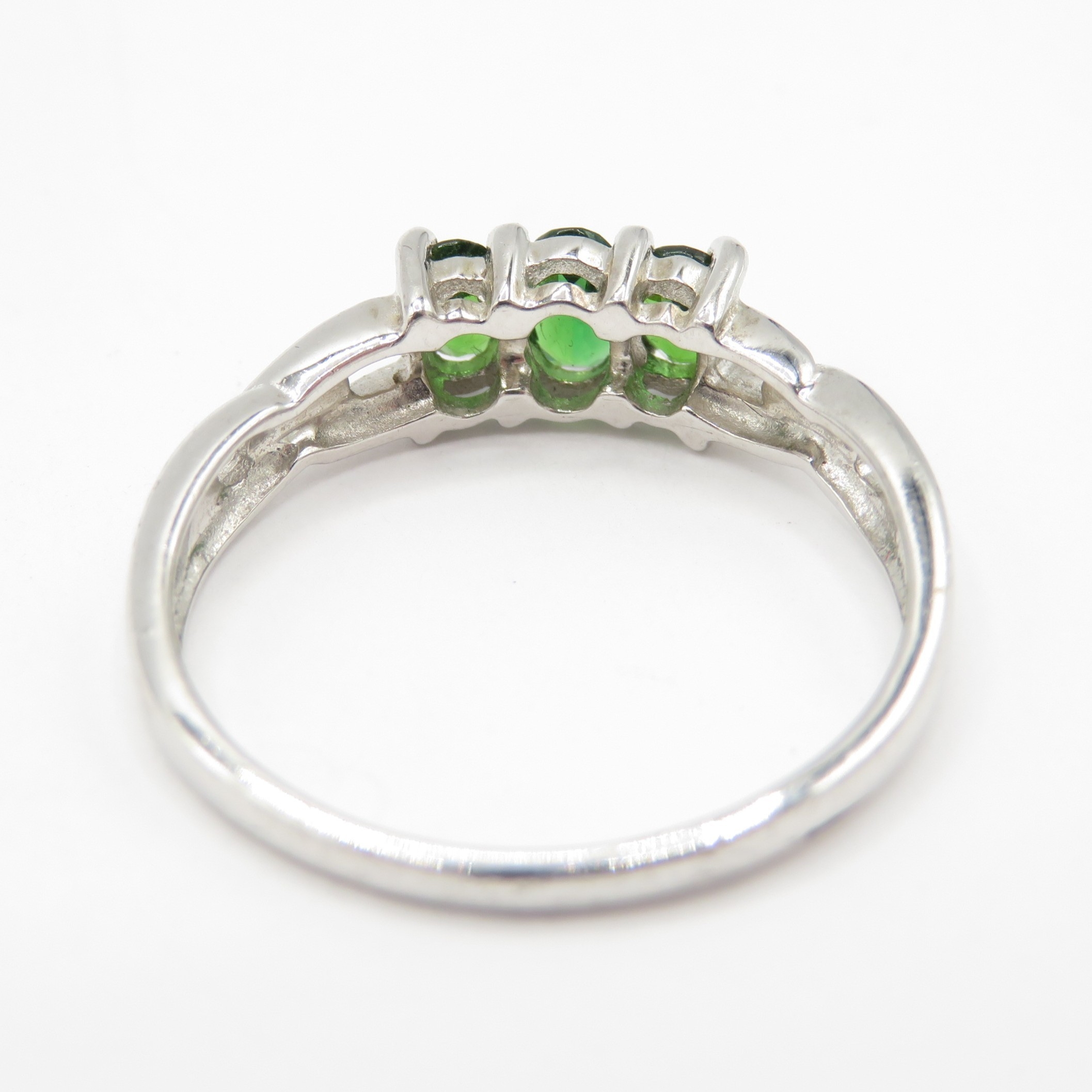 9ct white gold three stone diopside knot ring (2.3g) Size O