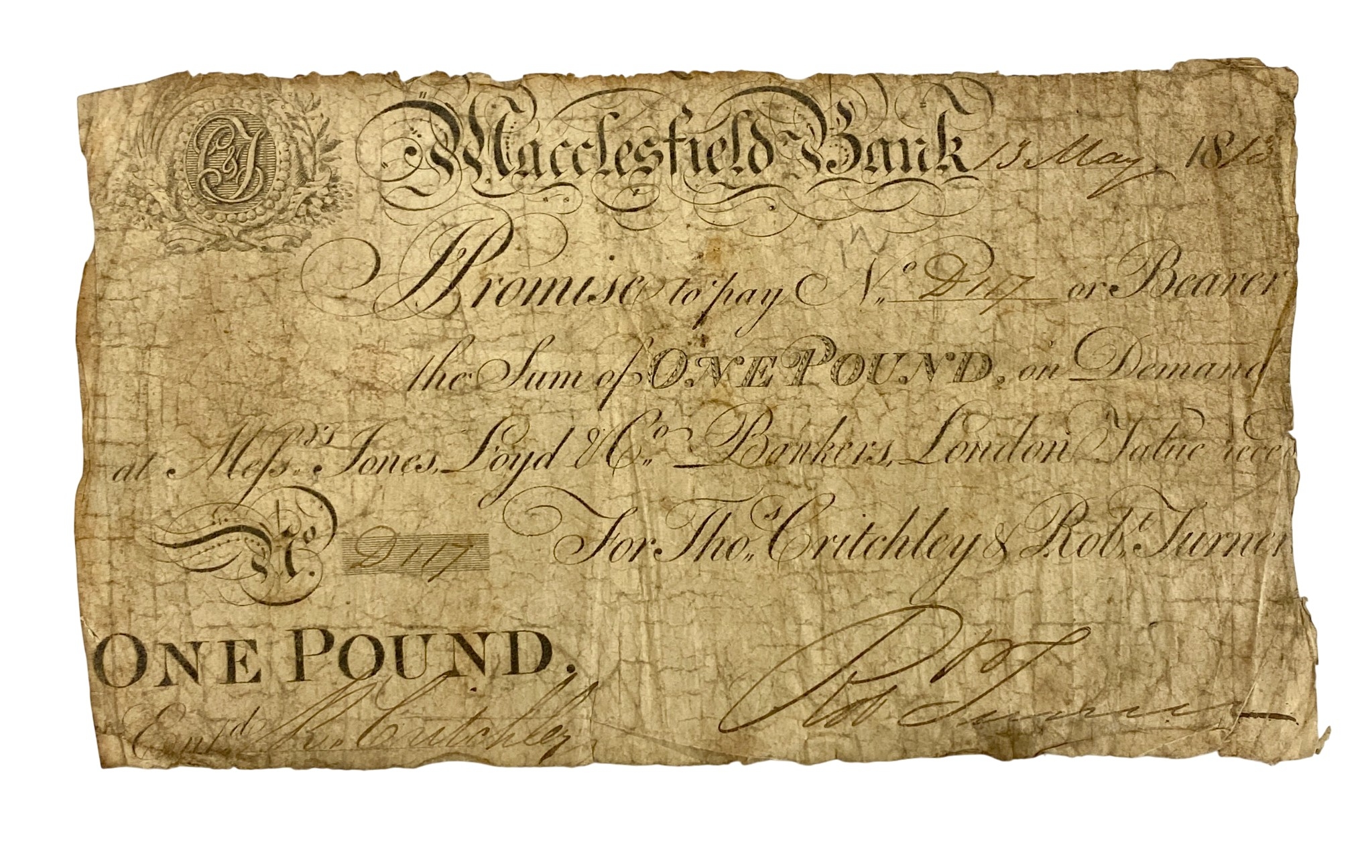 Macclesfield Bank White £5 Note Dated 13th May 1813.