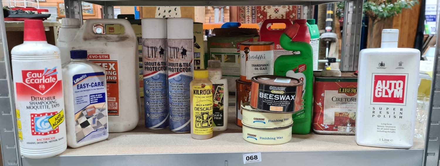 Full Shelf of products Beeswax, finishing wax, Auto Glym, tile and grout protector and etc Some new and some slight use