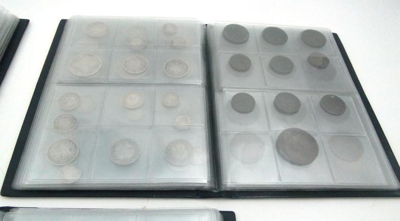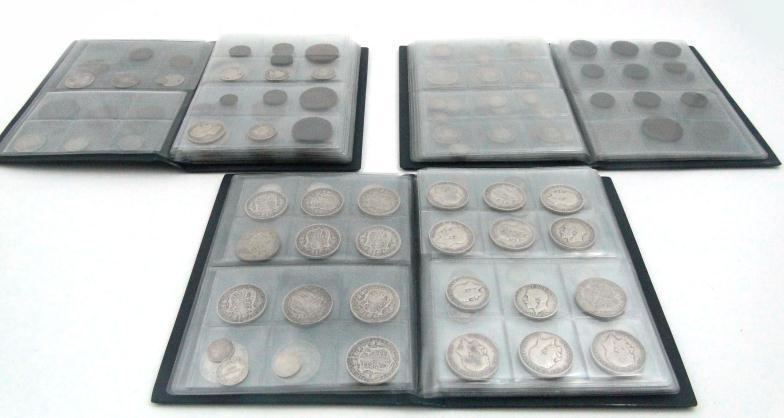 Three folders of predominantly Victorian and later British coinage including many silver examples