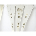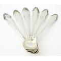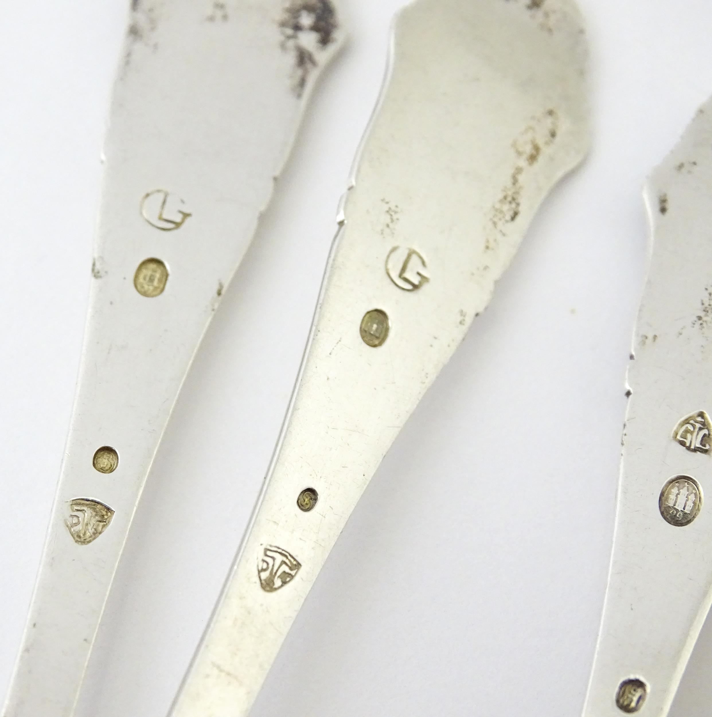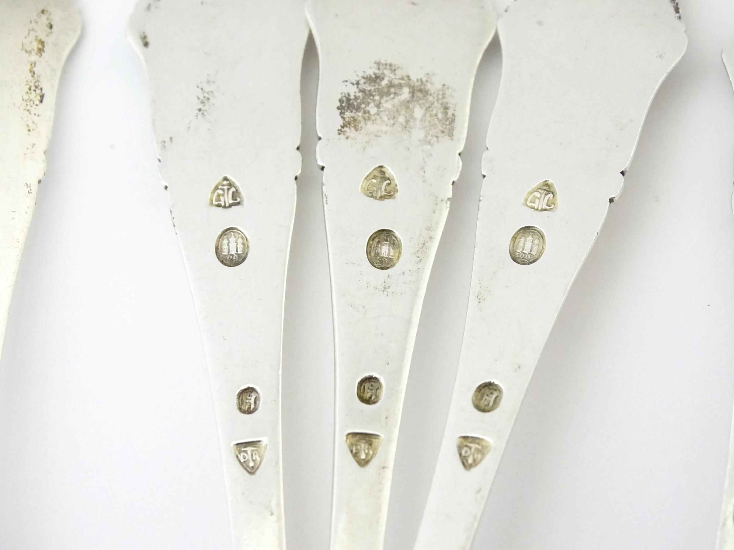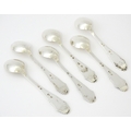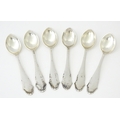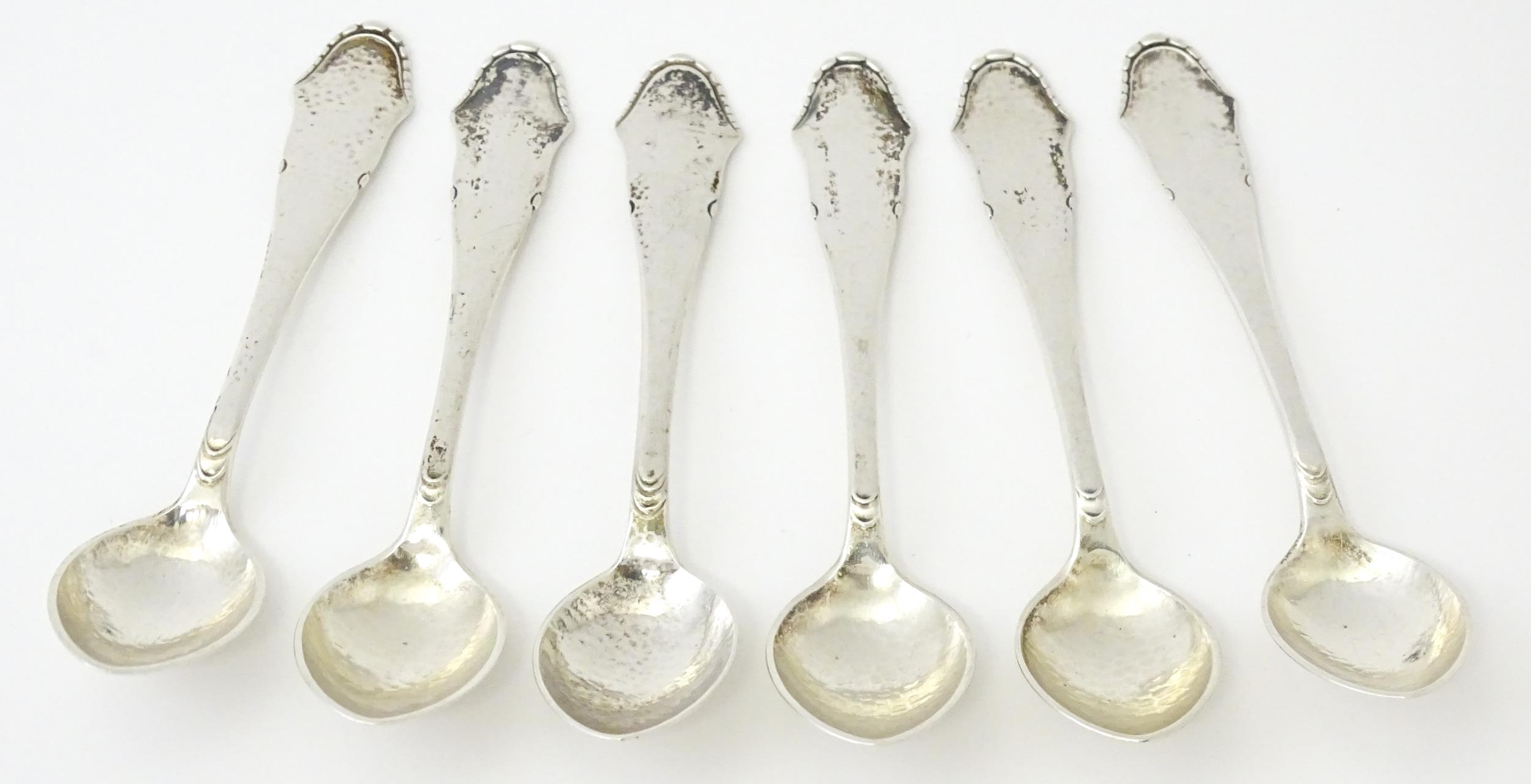 Scandinavian silver: A matched set of six Danish silver teaspoons with hammered decoration, bearing marks for Grann & Laglye. Approx. 4 1/2" long (6)