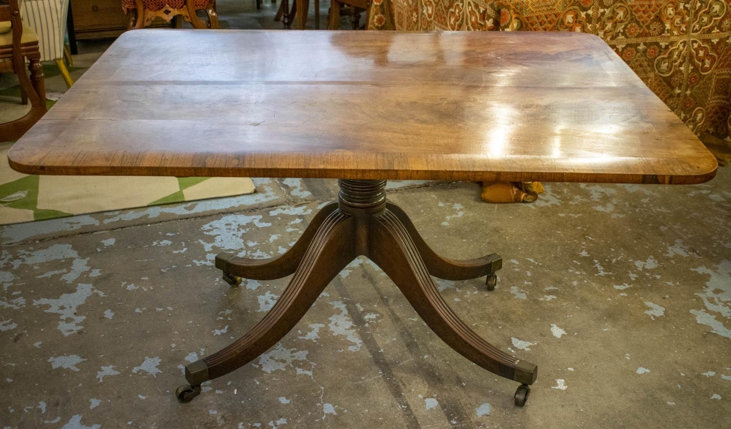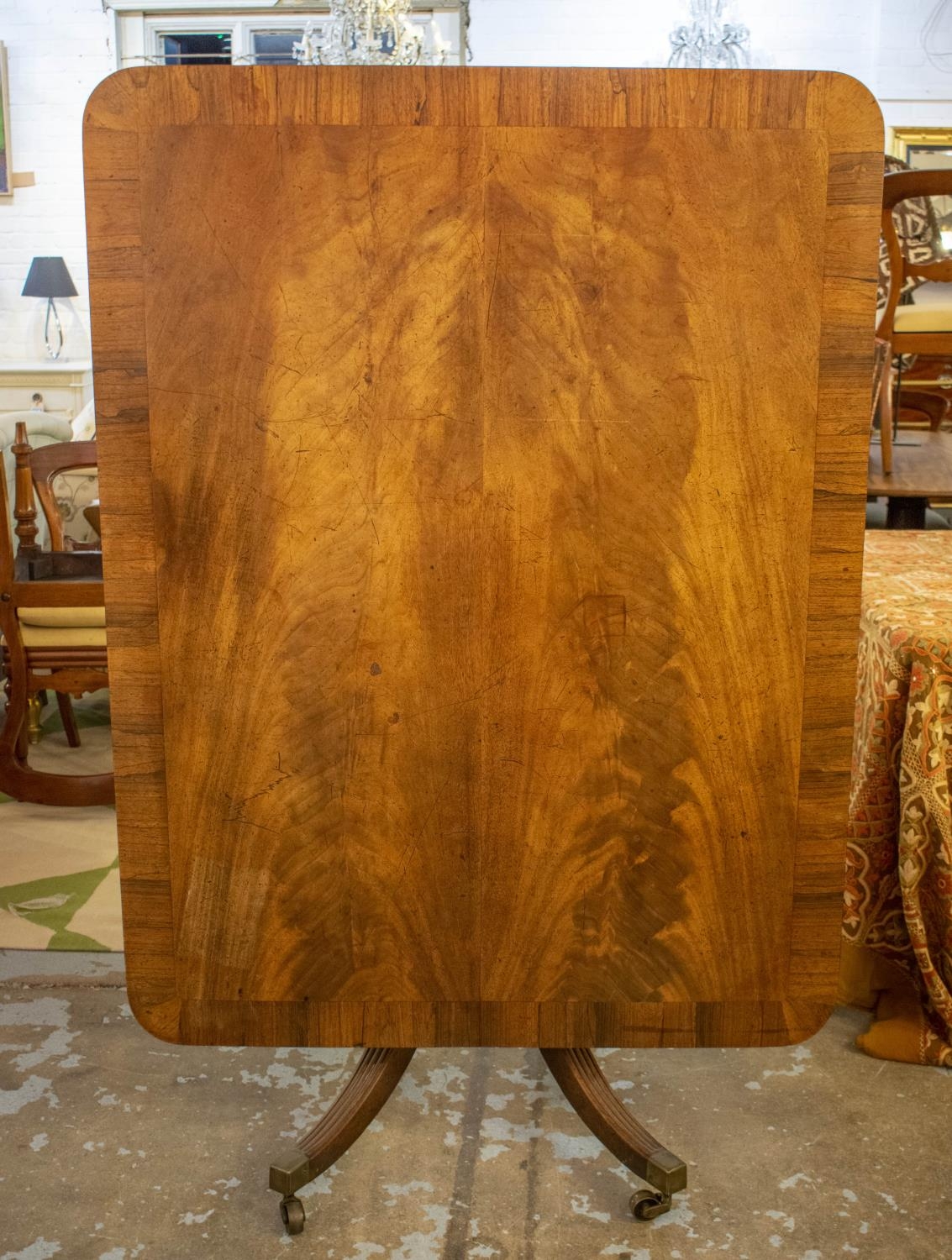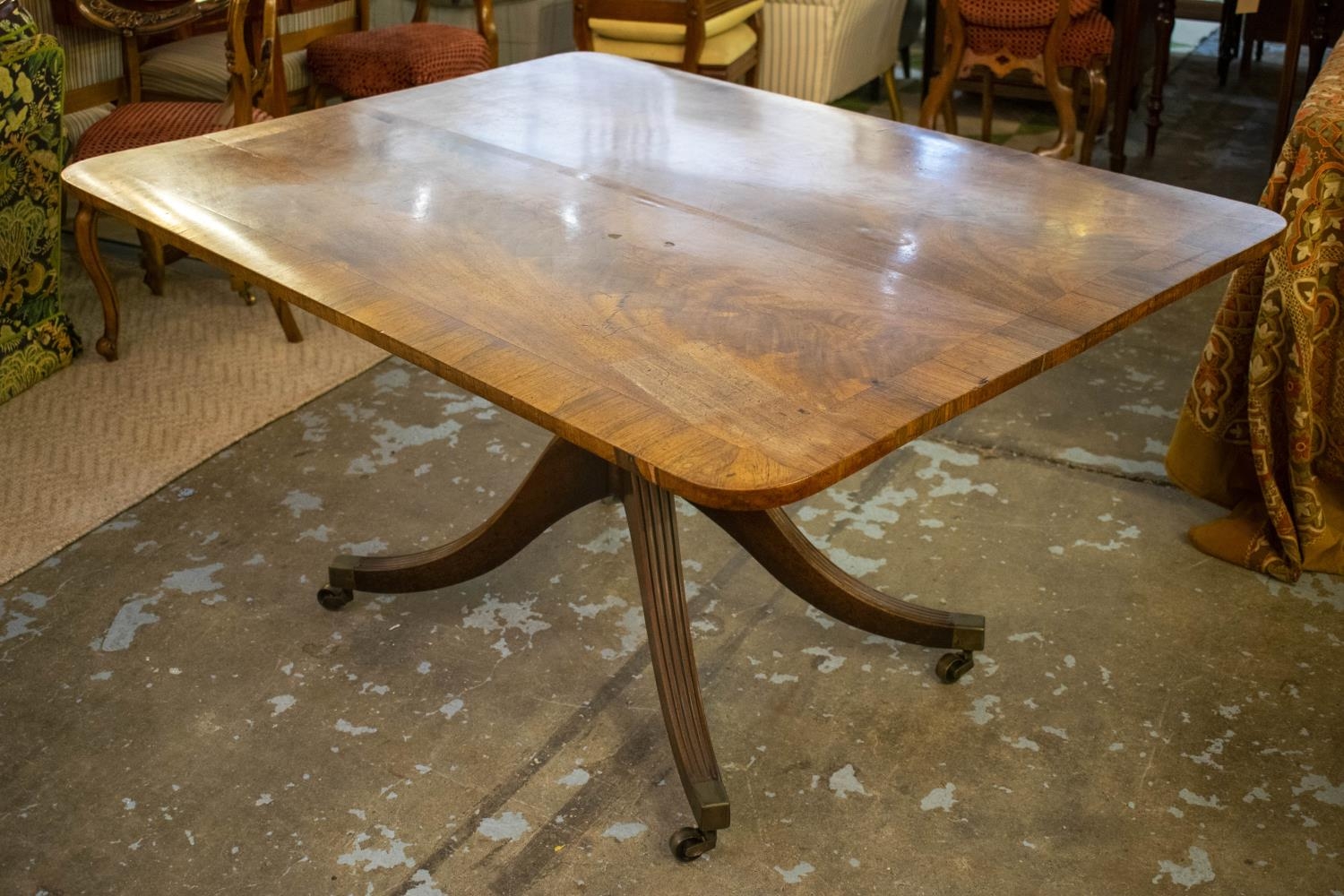 BREAKFAST TABLE, Regency mahogany with rosewood cross banding and quadraform supports, 137cm x 104cm x 72cm H.