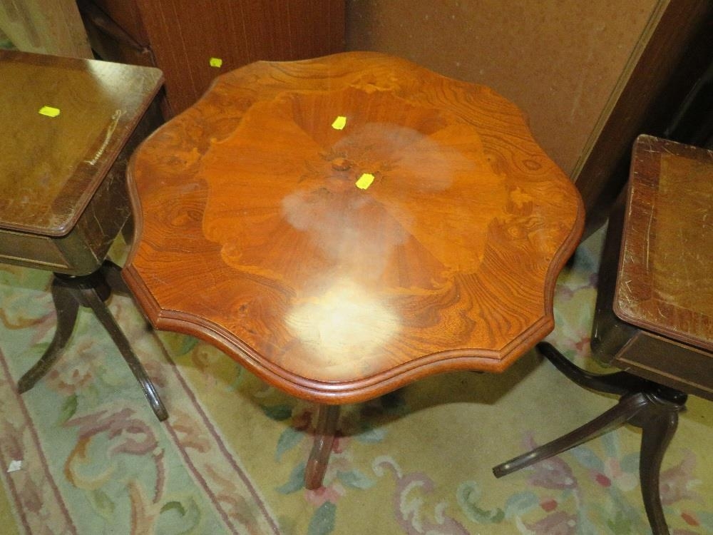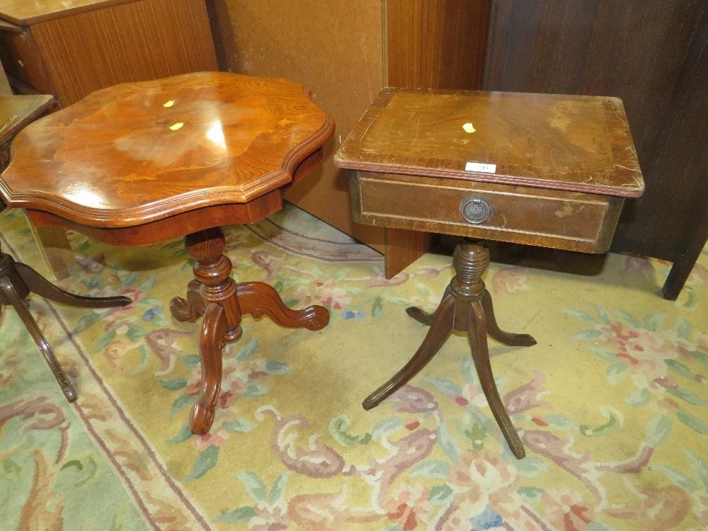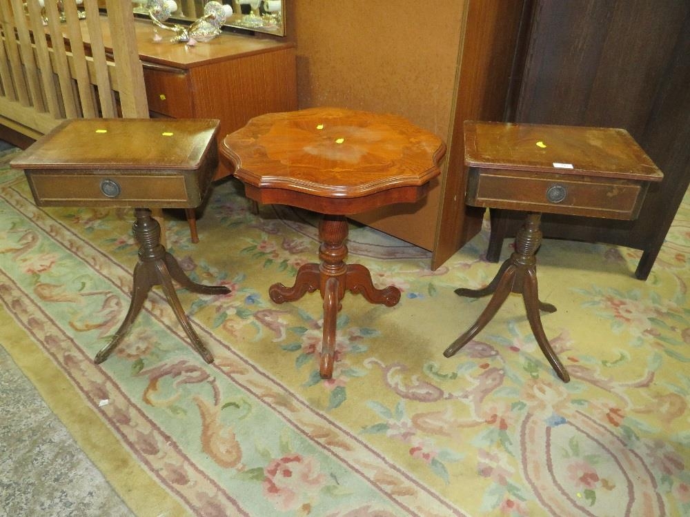 A PAIR OF REPRODUCTION MAHOGANY SIDE TABLES AND AN ITALIAN OCCASIONAL TABLE (3)