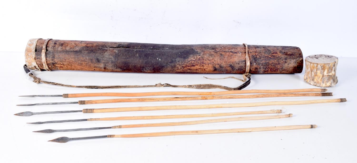 An early African tribal wooden arrow quiver. 73cm.