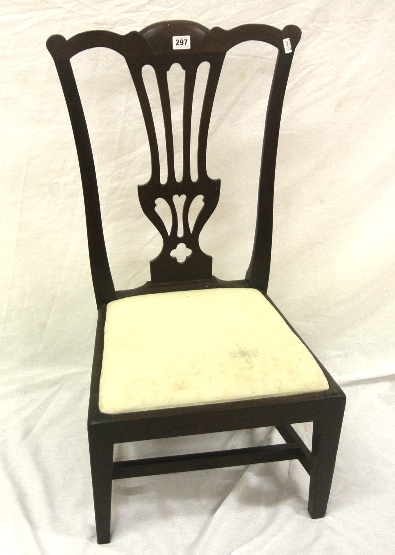 Georgian style low bedroom or occasional chair with pierced splat and square legs with stretchers