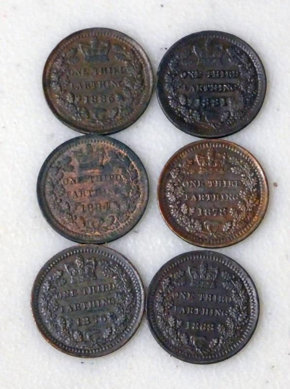 1868, 1876, 1878, 1881, 1884 & 1885 VICTORIA ONE THIRD FARTHINGS