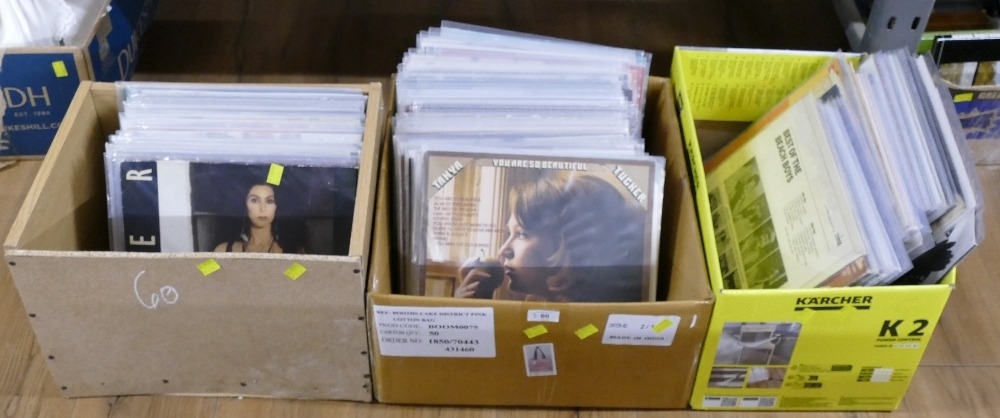 Three boxes of vinyl LPs, Cher, Linda Ronstaat, Kenny Rogers, Lacey Dolton etc