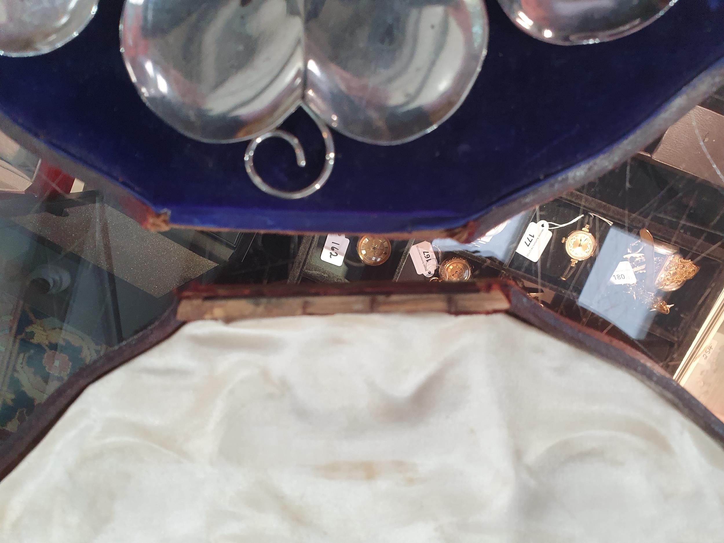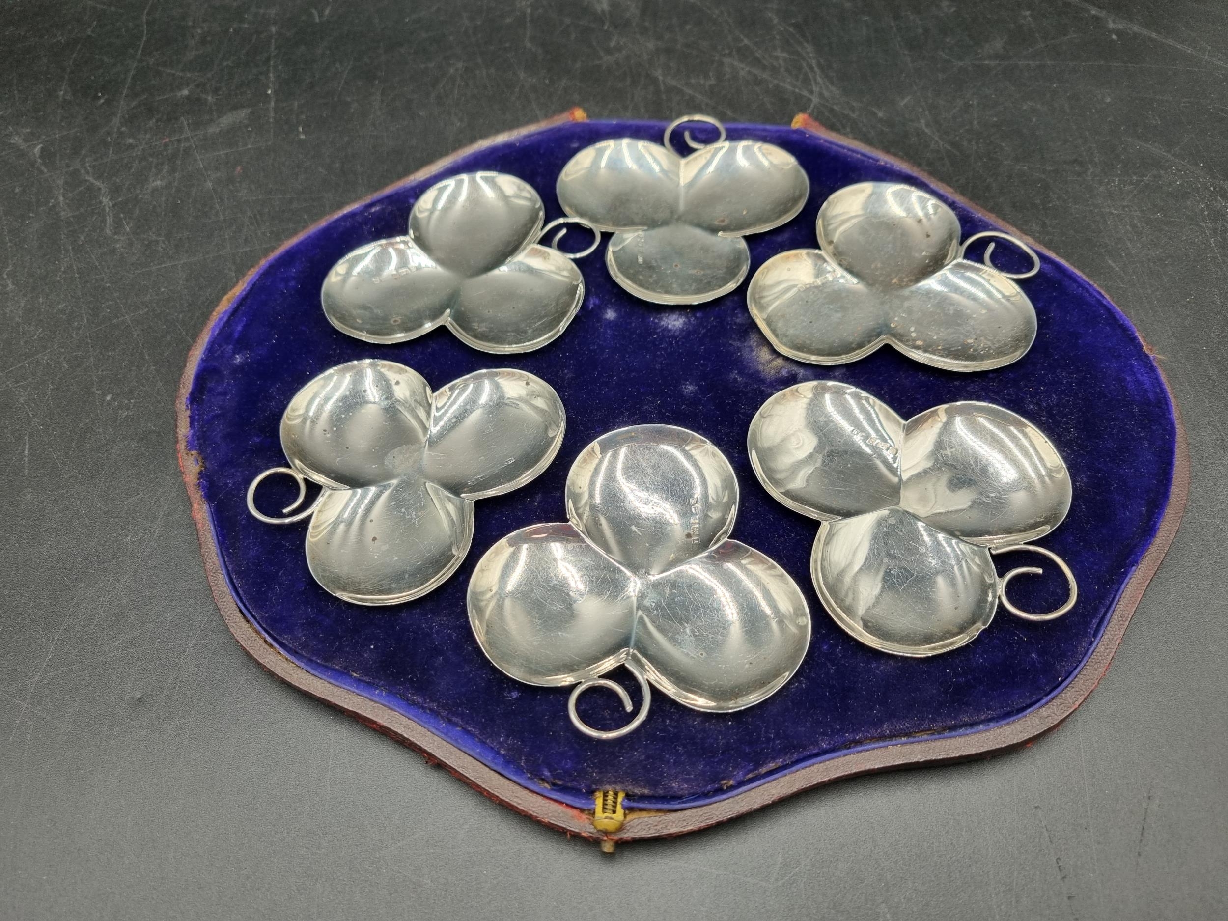 A set of six Edward VII silver clover leaf Dishes with loop handles, Birmingham 1903, in case