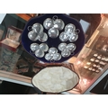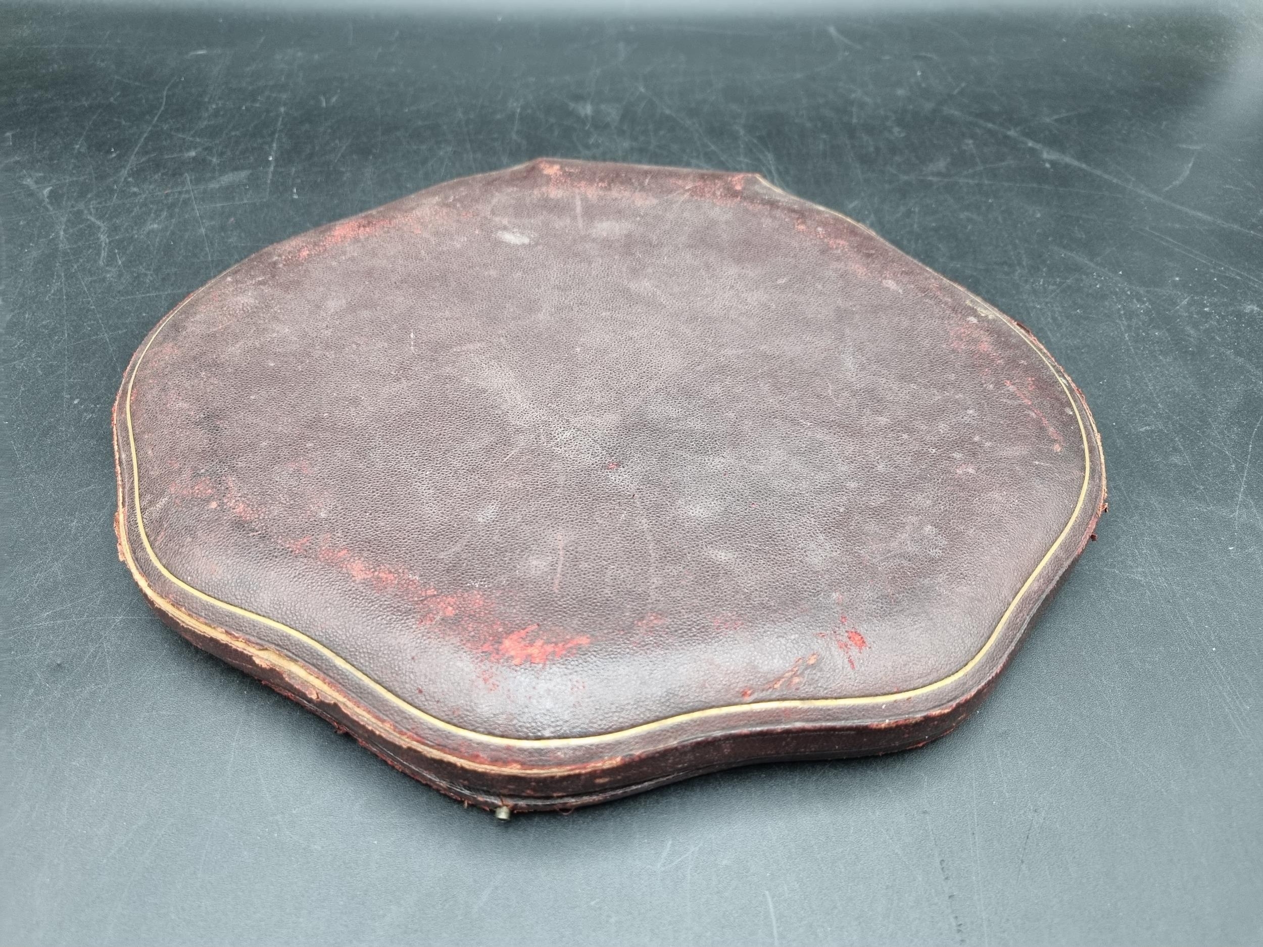 Hinge of case is broken. The dishes are in reasonable condition, not very heavy gauge. Small dent to one dish