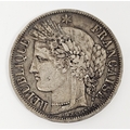 1851 five Franc Ceres silver coin