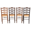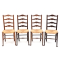 A matched set of four early 20th century oak ladder back cha...