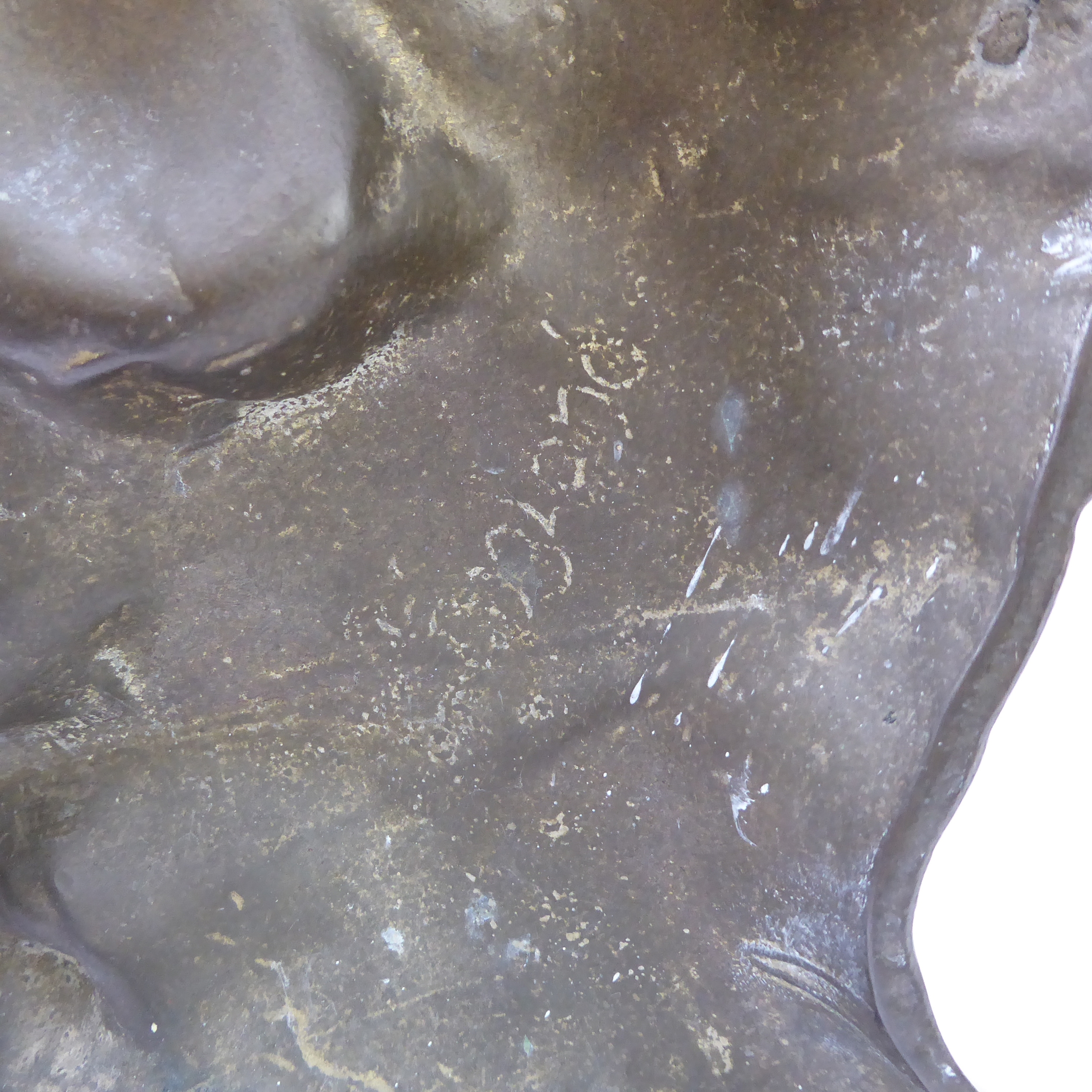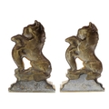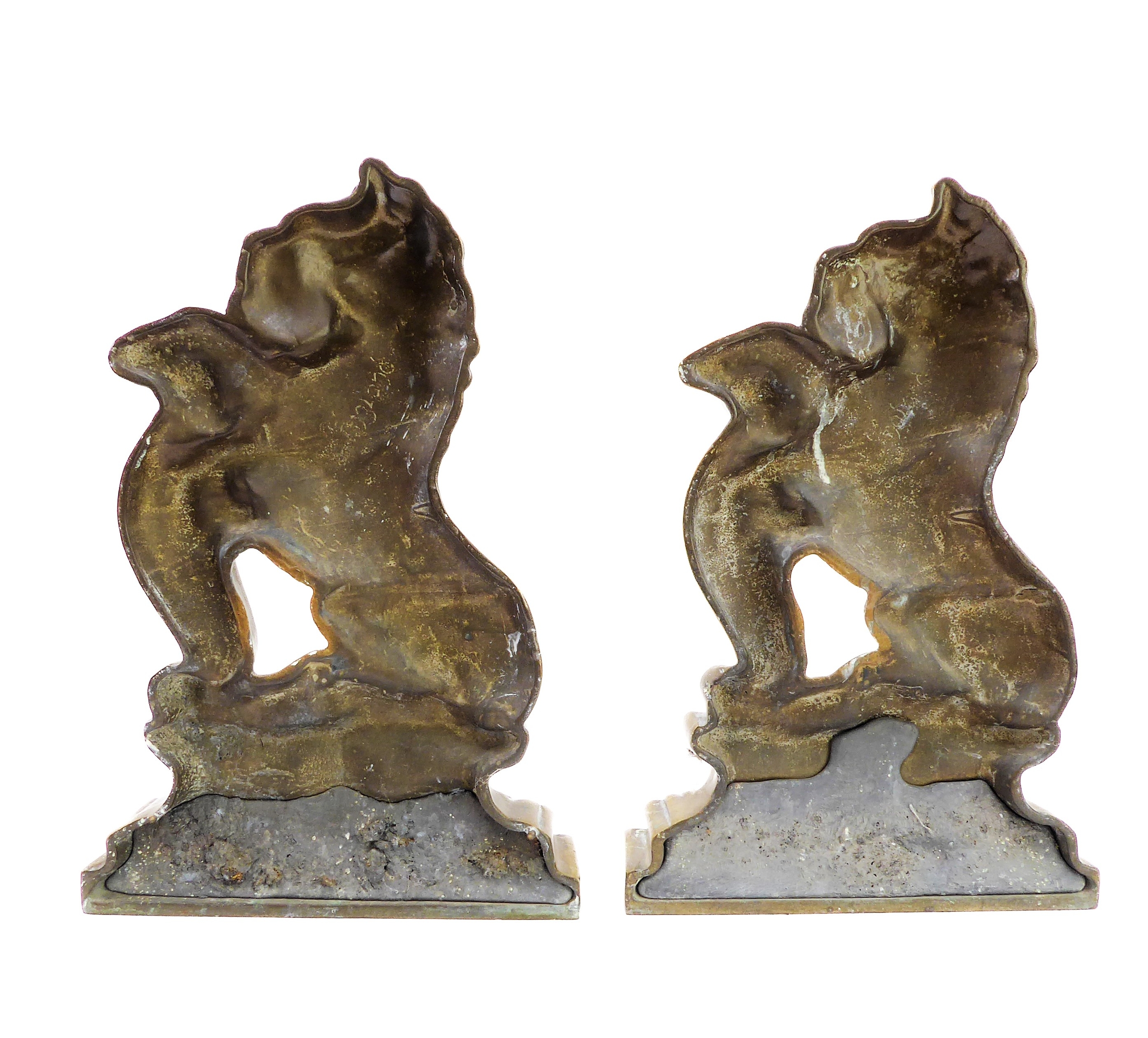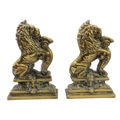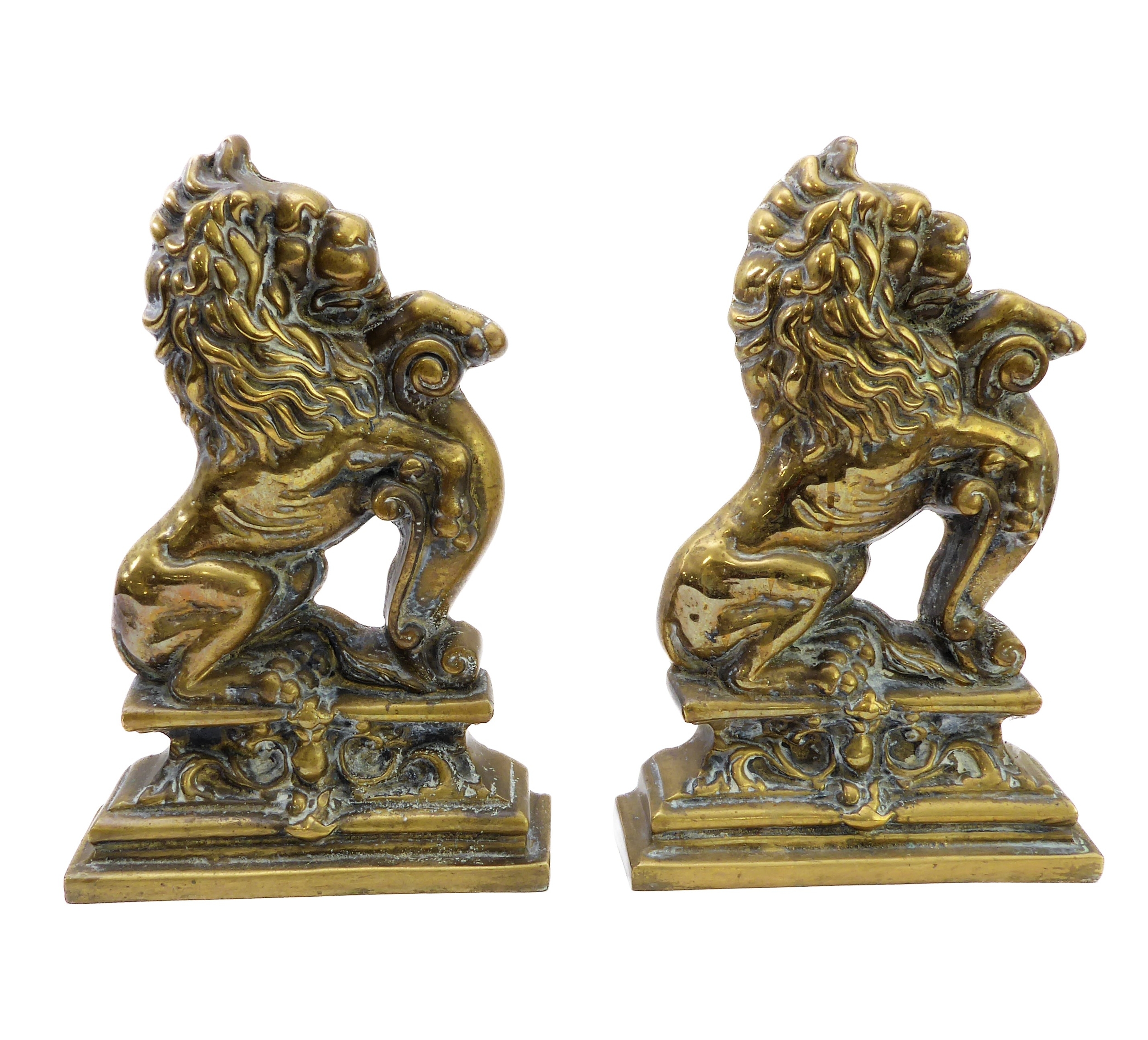 A good and unusual pair of brass and lead-weighted doorstops modelled as lions coward (34 cm high)