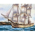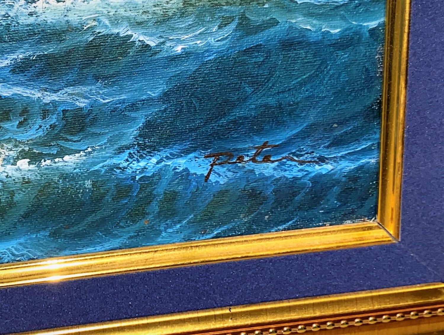 An oil on canvas of a three masted ship on choppy seas, signed 'Peters' to bottom right, 45 x 60cm, in a gilt frame.