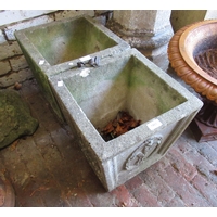 Weathered cast concrete garden bird bath and a cast iron wat...