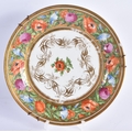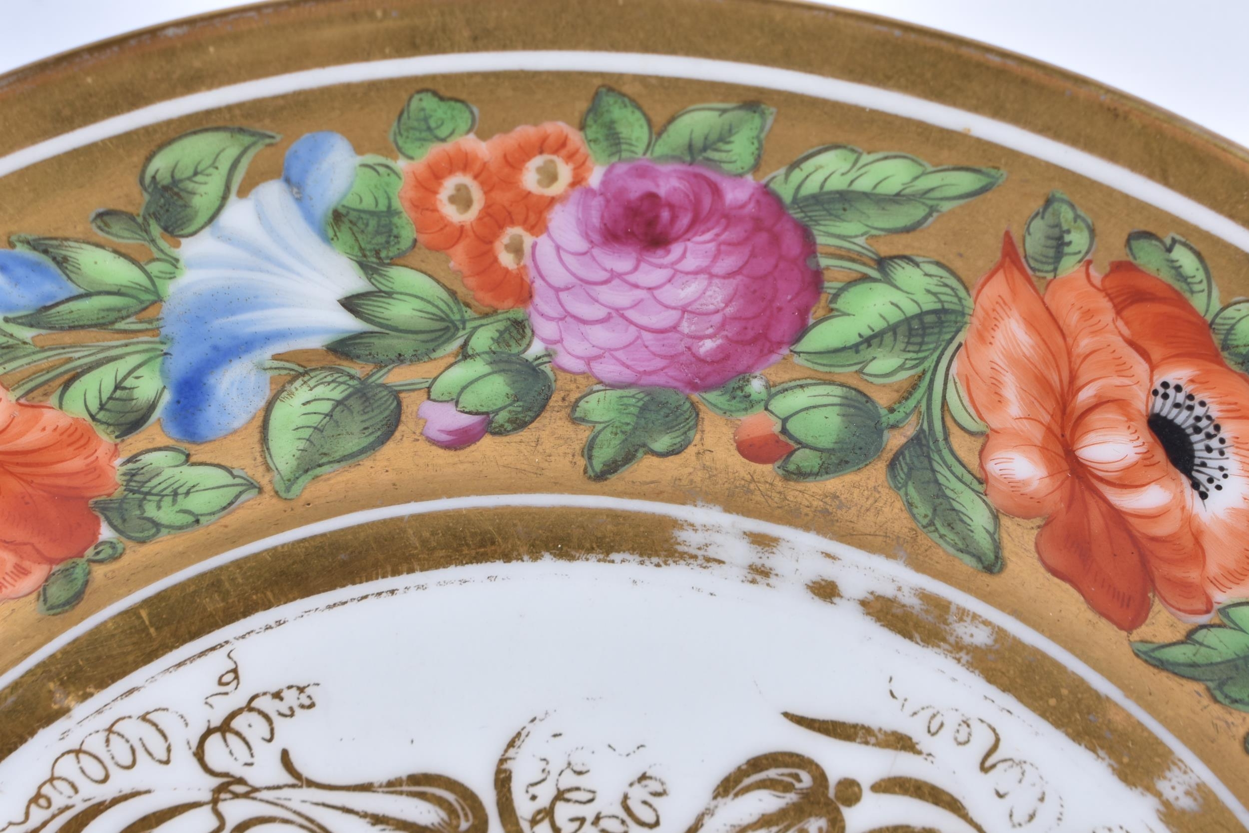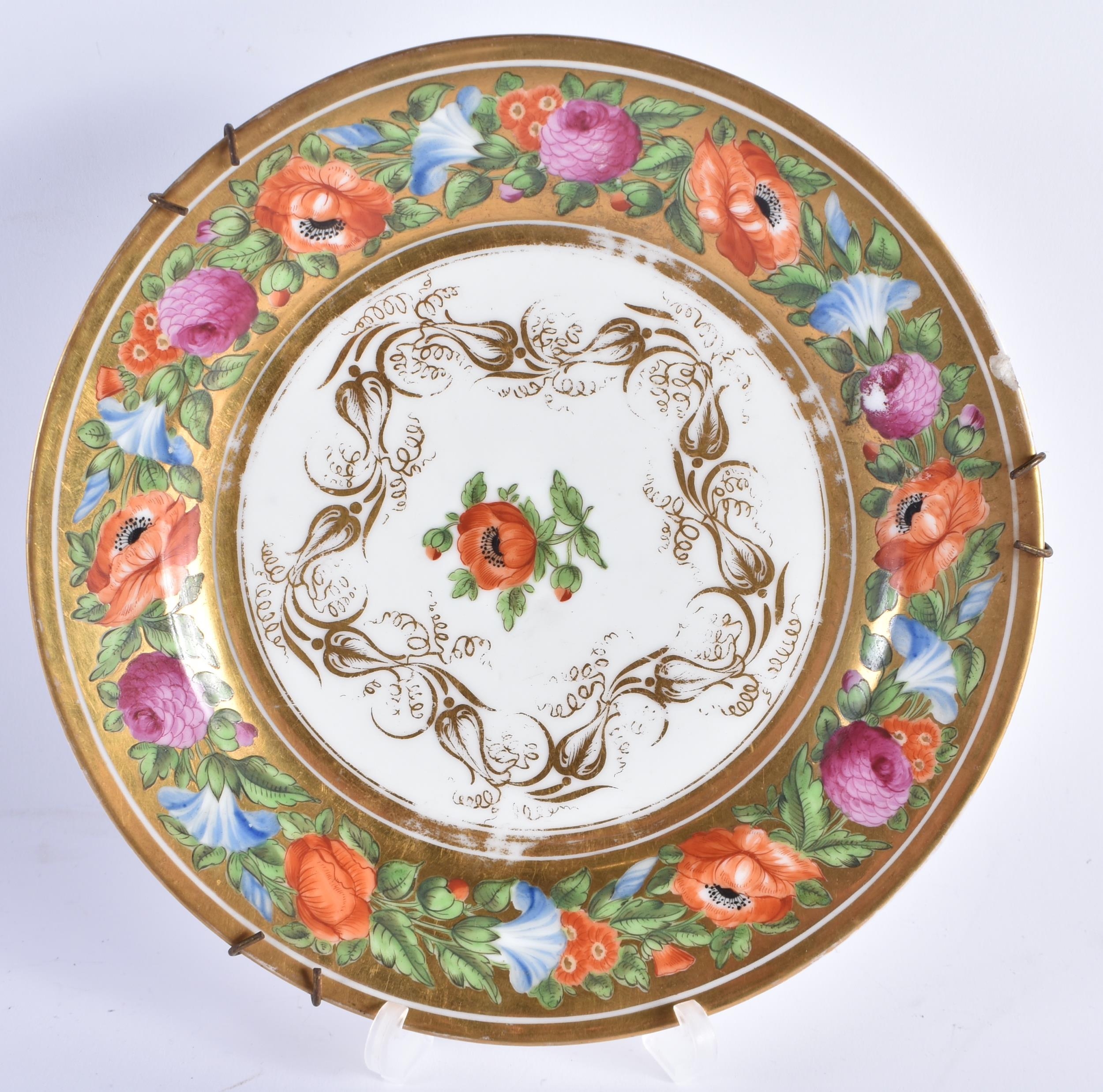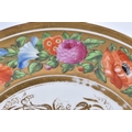 A LATE 18TH/19TH CENTURY CONTINENTAL PORCEAIN PLATE painted with a rich banding of fruit, on a gilt ground. 22 cm diameter.