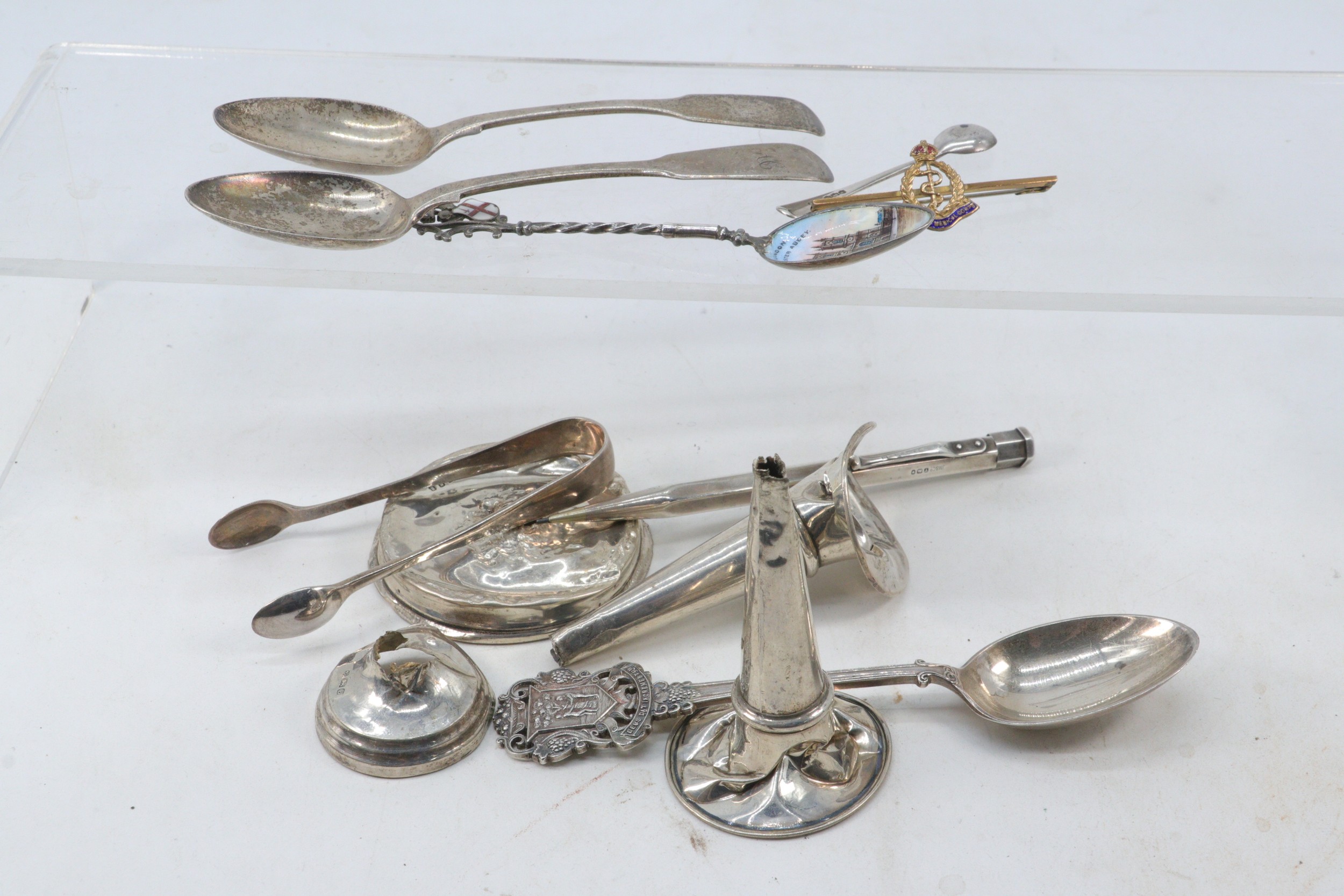 A quantity of silver spoons, broken silver etc (approx. weight 170g)