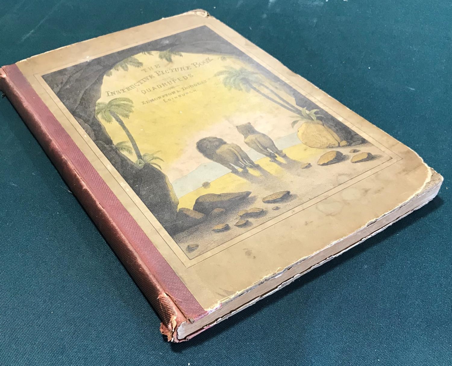 [White, Adam] The Instructive Picture Book, 60 hand-coloured lithographed plates, 2 leaves of text torn without loss, occasional spotting, original publisher's cloth-backed pictorial boards, soiled, fore-edge corners rounded with loss, 4to, Edinburgh: Edmonston and Douglas, 1860