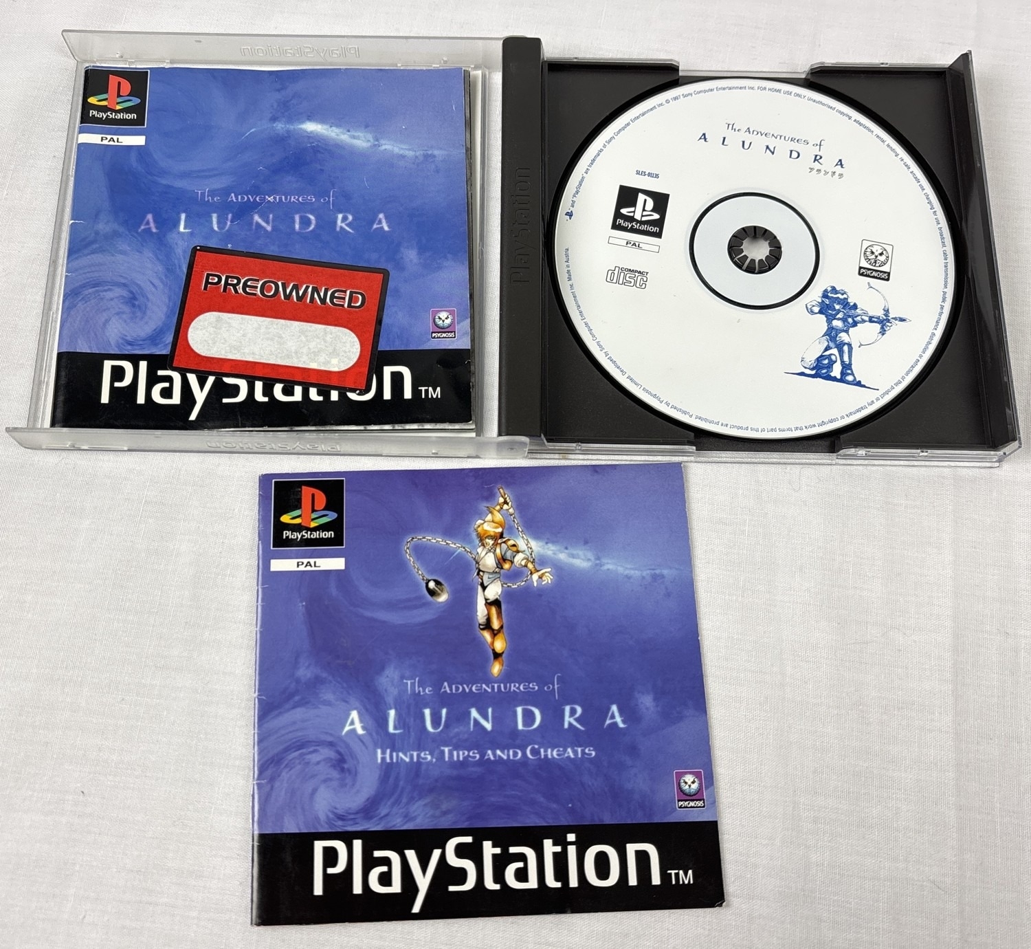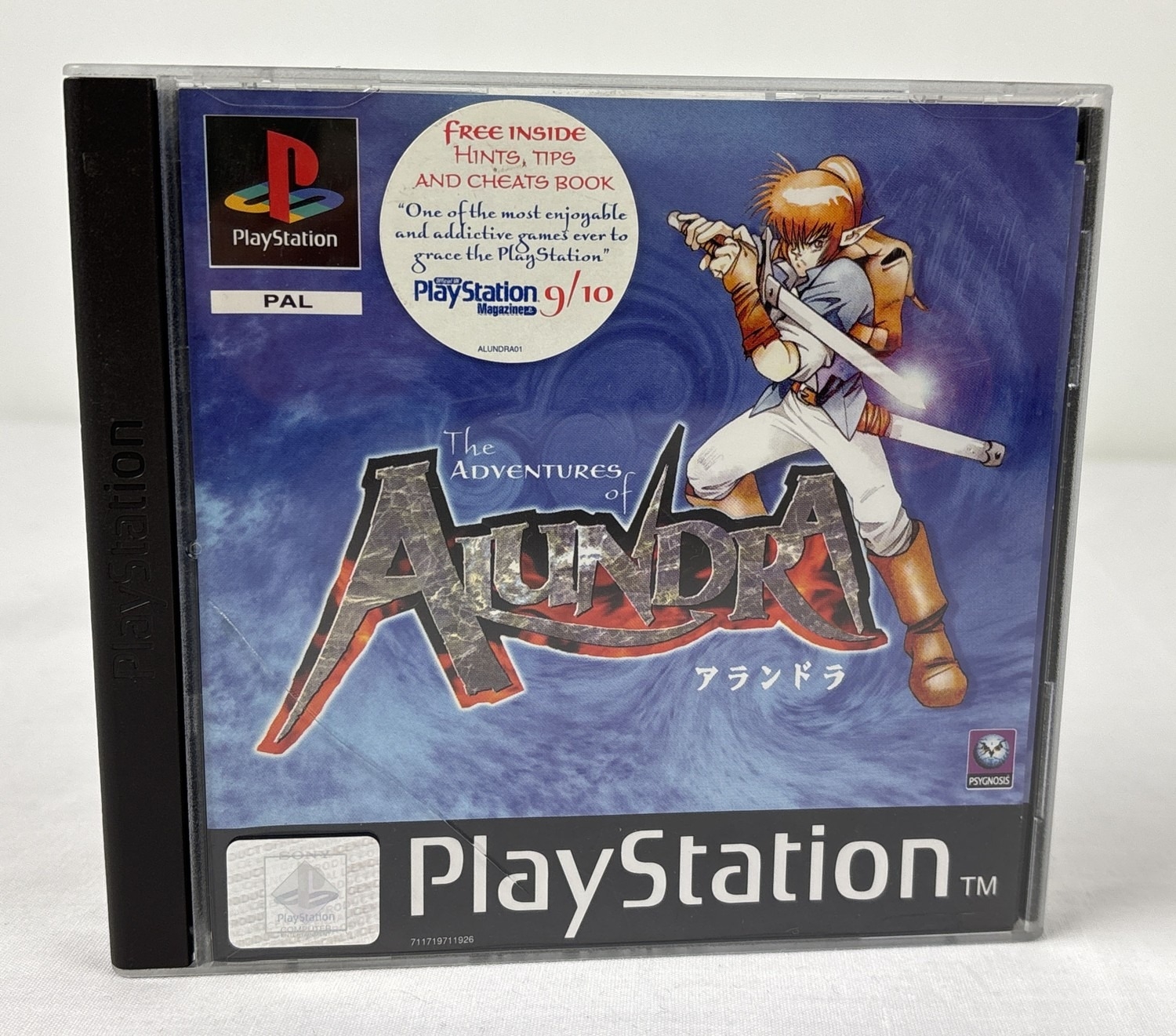 The Adventures of Alundra - cased Playstation 1 PS1 game, complete with manual & Hints, tips & cheats booklet. Case has crack to front.