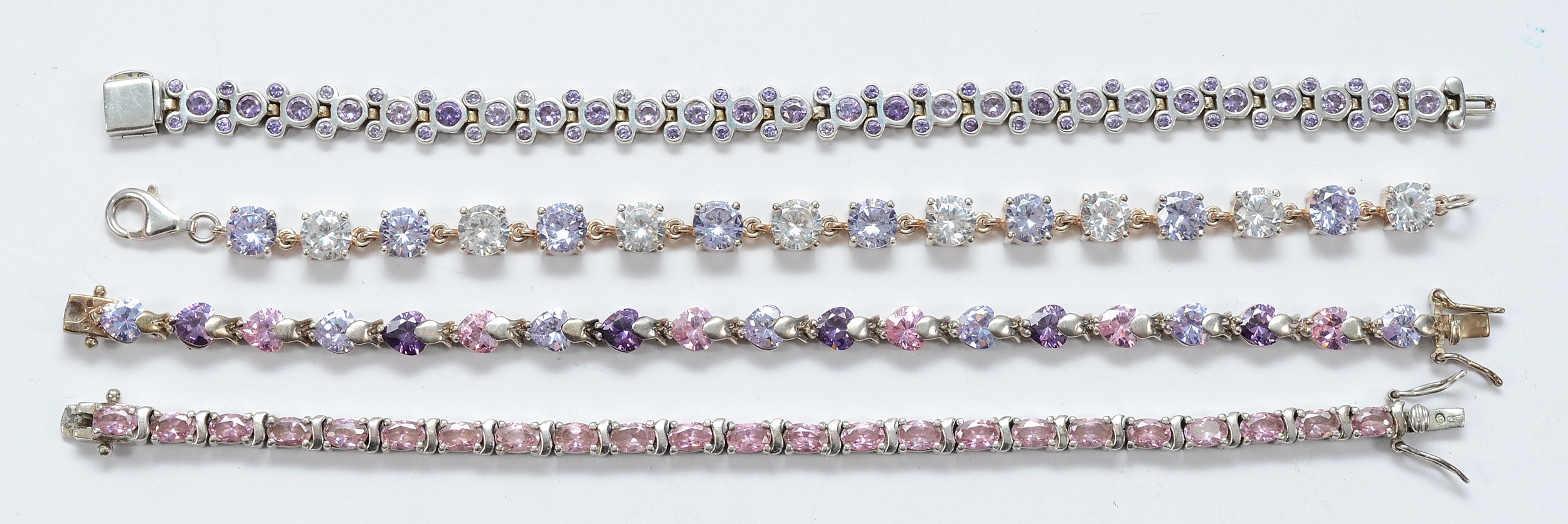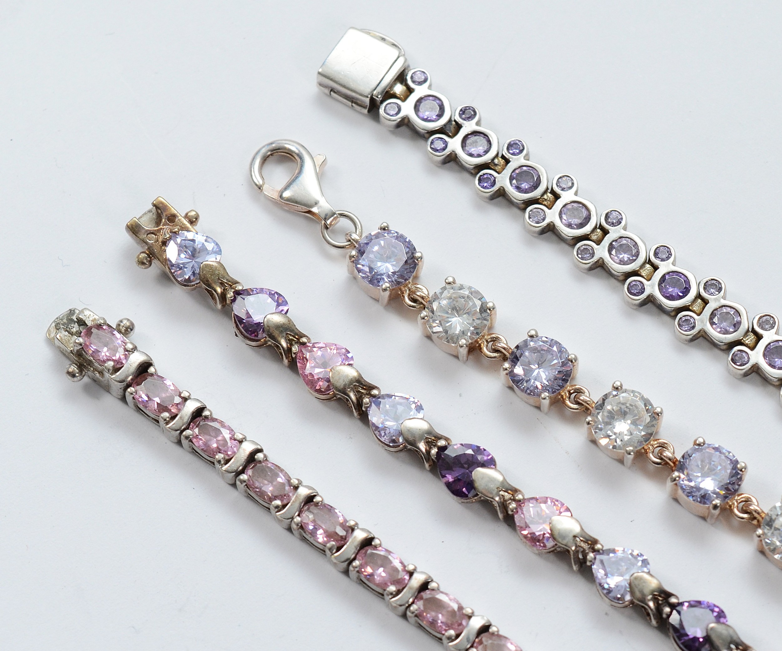 Disney, a 925 silver and cubic zirconia Mickey Mouse bracelet, with three 925 silver and cubic zirconia bracelets, 18-19cm, 78g